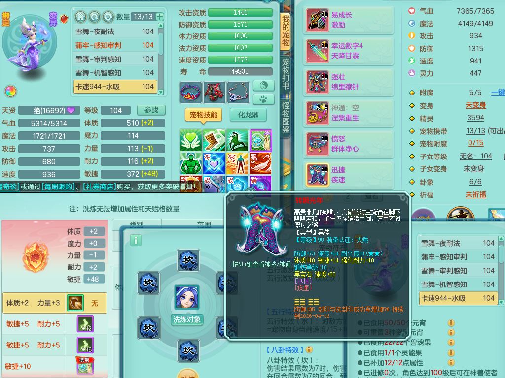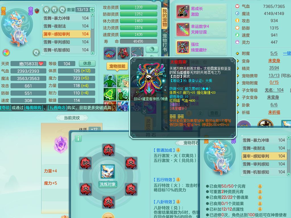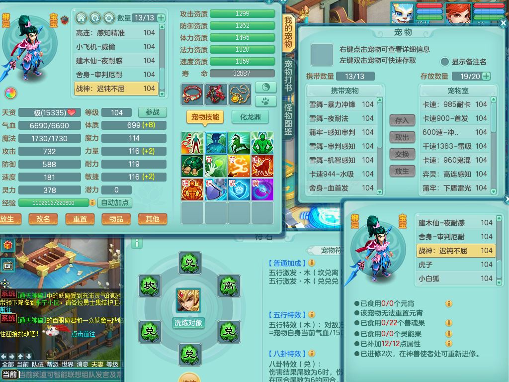 tx10023天下无双99男方寸【潜龙号】体敏精灵,1内丹青蛇1皮,22只满果子13觉醒13个纯6字,11红愤怒6特,Y野兽头,幸运四海武器,强壮笑里衣服,愤怒晶清腰带,迅捷流云鞋,鼎2.5+42+168,3套符石,62天月卡,庭院170房屋174,永久头饰精灵皮肤,71仙兽灵,24内丹碎片,宠排在榜,双人坐骑