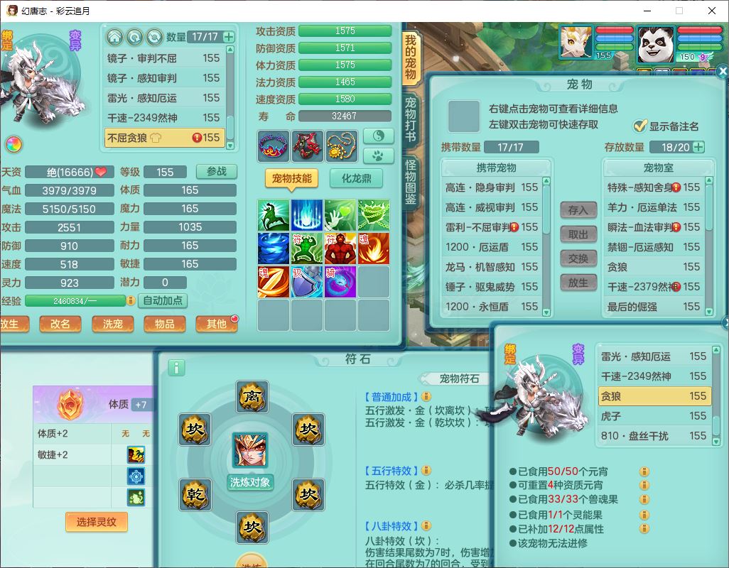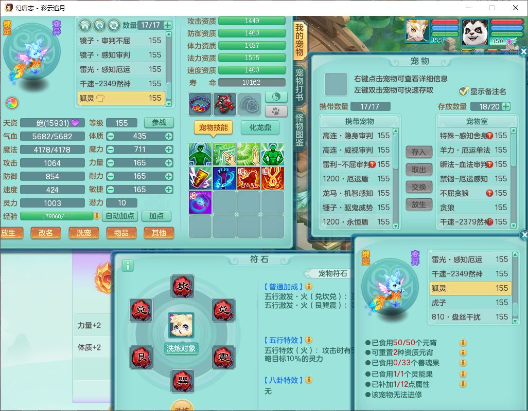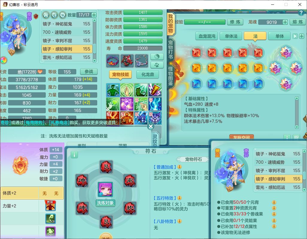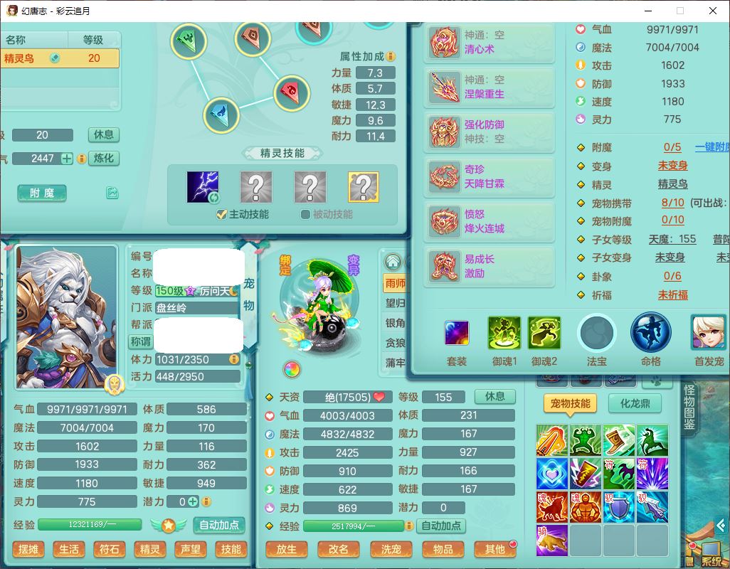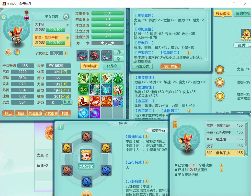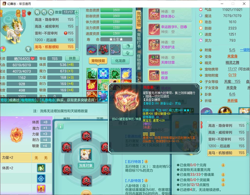 cy10035彩云追月159男灵月【潜龙+马到成功+暴龙逍客】精灵舞,8位靓号,4龙(换、1破境)2内(1龙马)1望归4镜花6特殊(夺命、雷光、舍身,堕天、以战、墨守兽决)1金炉,8觉醒3宠皮11六字1五字5四字21只满果子,9红装备,幸运回春武器,愤怒疾速腰带,Y激励鞋子,有物理装,狂暴四海武器,Y腰带,Y帽子,神佑项链,鼎5.5+70+280,2套符石,119天月卡,永久外观、精灵皮肤,15个内丹碎片,93个兽魂果,8坐骑(2双人飞行),带3个150奶粉