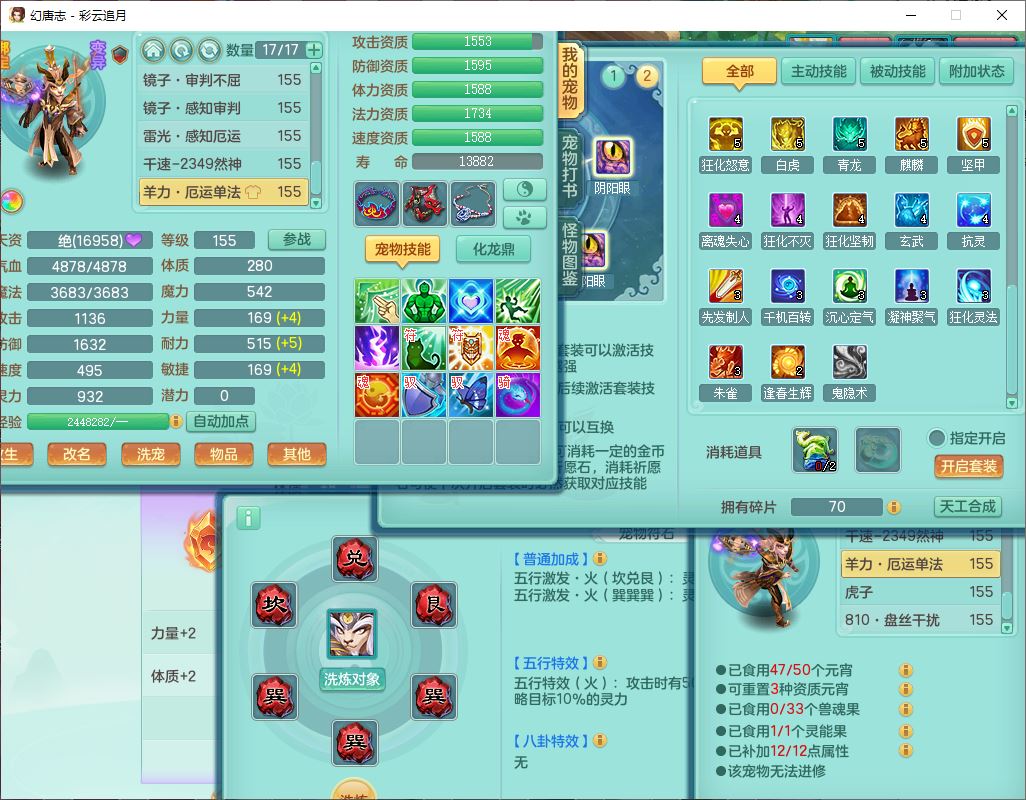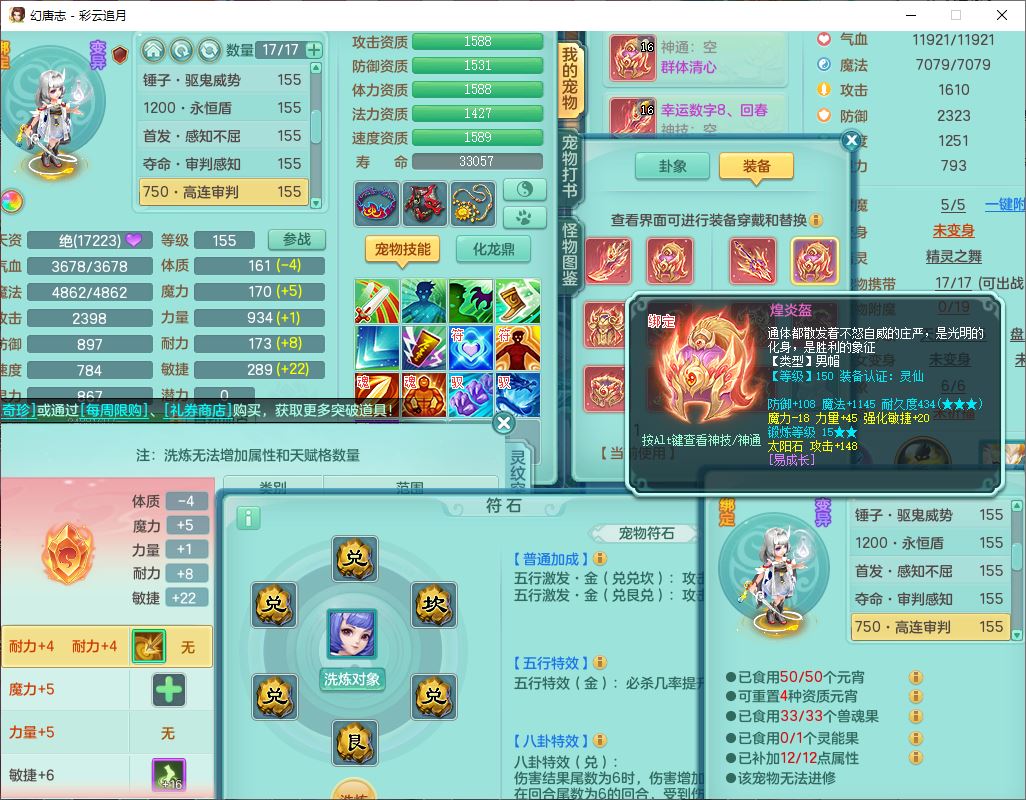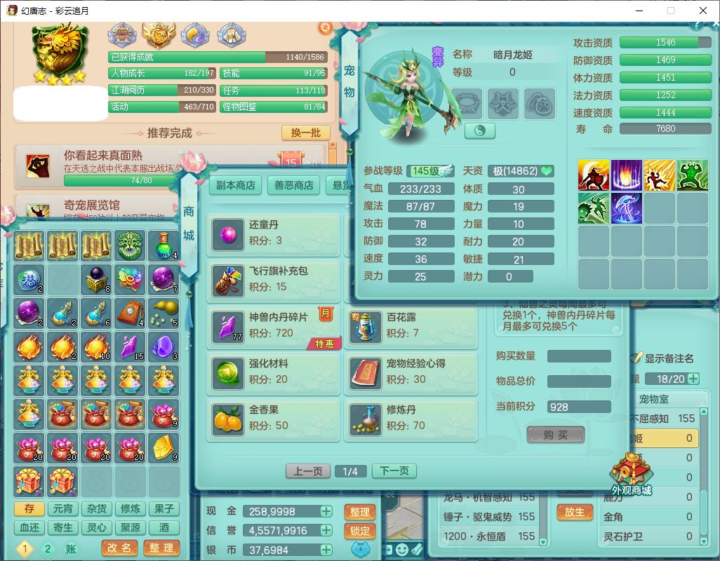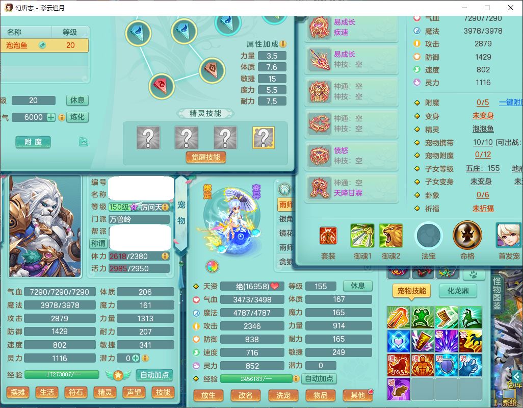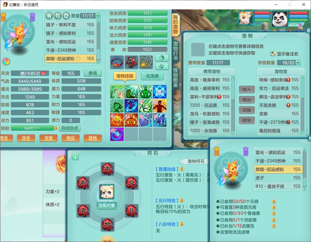 cy10035彩云追月159男灵月【潜龙+马到成功+暴龙逍客】精灵舞,8位靓号,4龙(换、1破境)2内(1龙马)1望归4镜花6特殊(夺命、雷光、舍身,堕天、以战、墨守兽决)1金炉,8觉醒3宠皮11六字1五字5四字21只满果子,9红装备,幸运回春武器,愤怒疾速腰带,Y激励鞋子,有物理装,狂暴四海武器,Y腰带,Y帽子,神佑项链,鼎5.5+70+280,2套符石,119天月卡,永久外观、精灵皮肤,15个内丹碎片,93个兽魂果,8坐骑(2双人飞行),带3个150奶粉