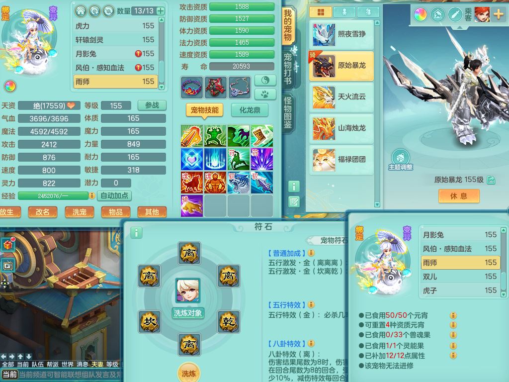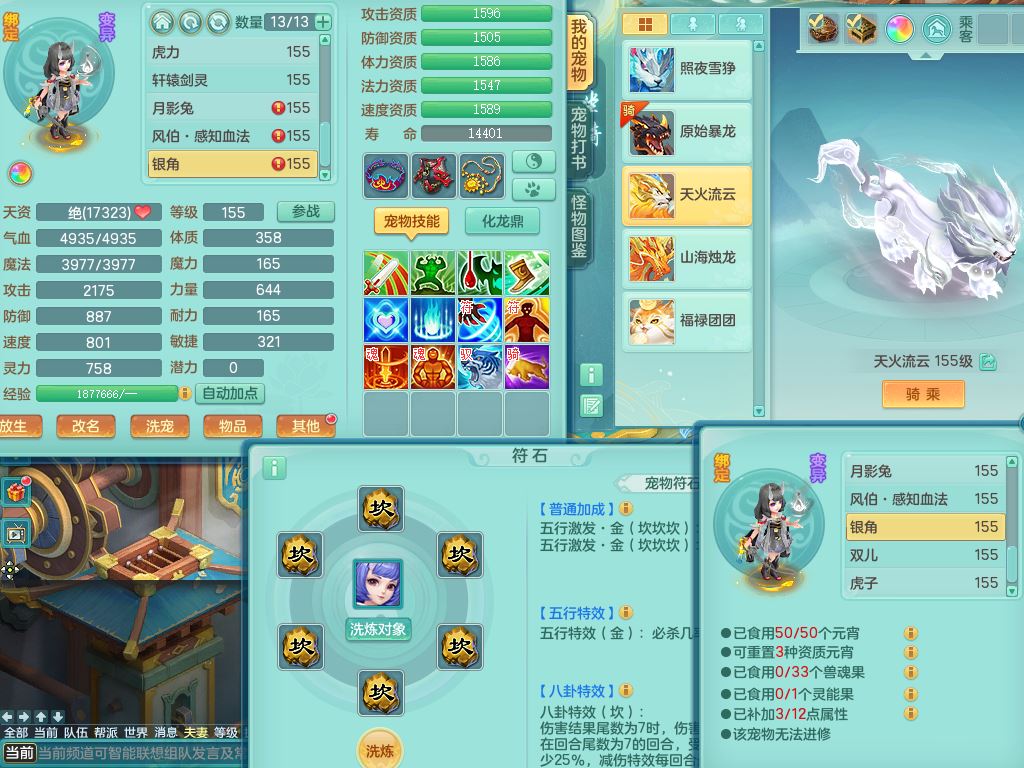 tx10042天下无双159男佛门【暴龙泰坦+火焰之力、西瓜冰】精灵歌,8字靓号(1.7WR拍的)1内丹青蛇1特殊(荒古兽决)4镜花灵,14只满果子8个纯6字,愤怒5特,鼎6.0+70+280,169天月卡,庭院160房屋151,永久头饰精灵皮肤,28内丹碎片,仓库备有潜龙宠物装备,5坐骑(3只双人)带3个159奶粉,都有双人坐骑