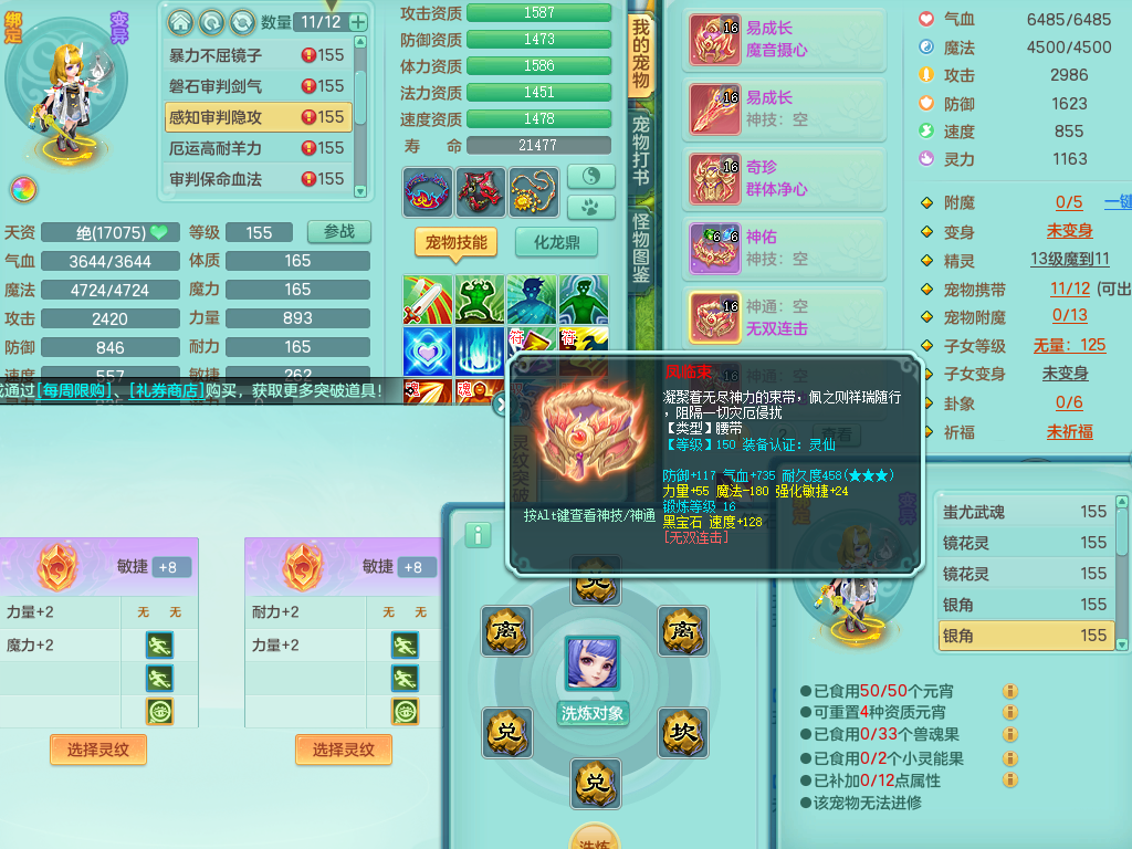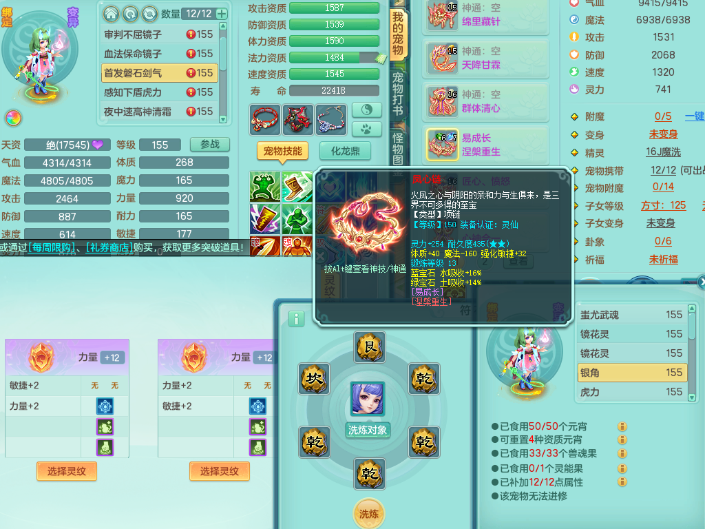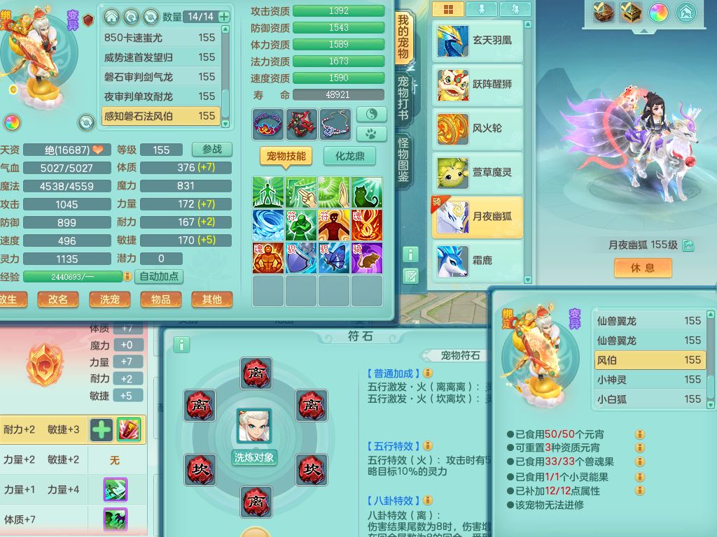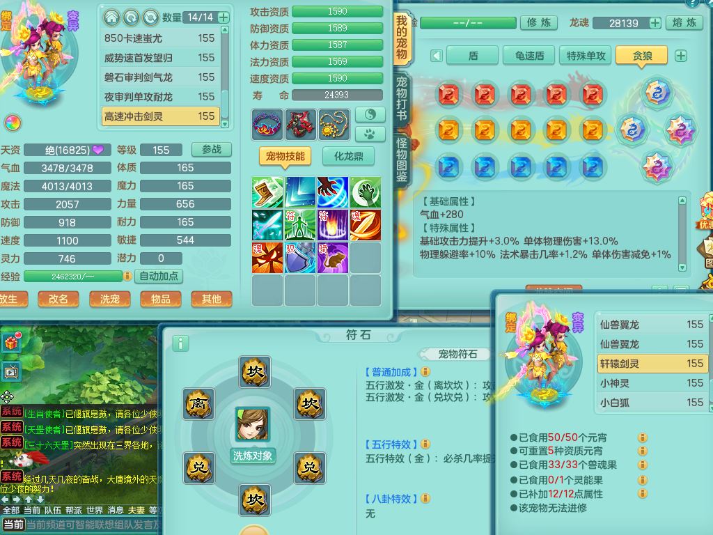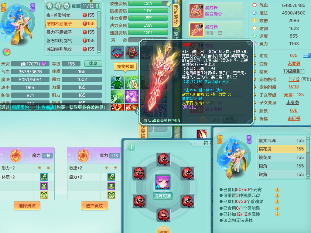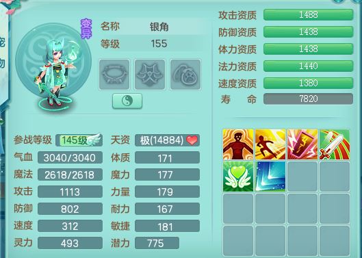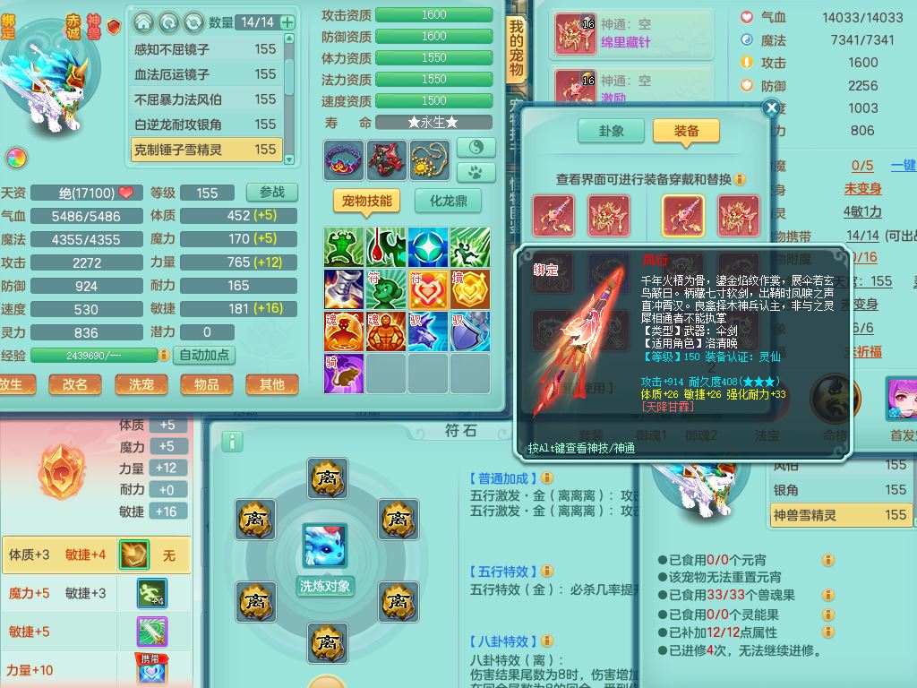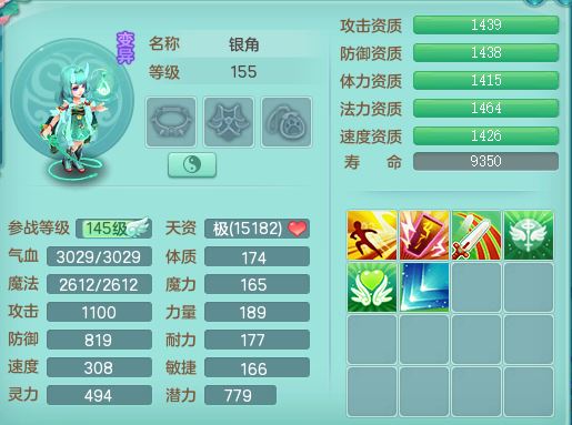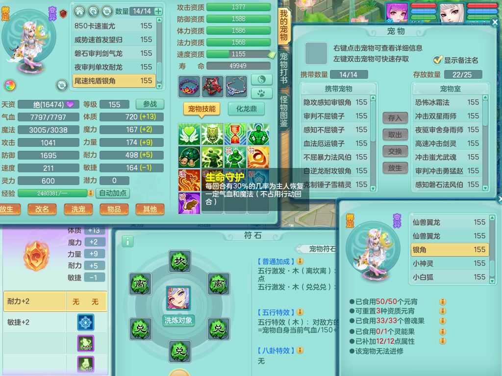 rj10041任剑逍遥159女灵月【潜龙号】精灵歌,4字靓号,2龙(换)2内15皮(4幻灵果)1神兽内丹,9特殊(逆龙/双星/舍身/守护/兽决虎虎/怒破/战争/羽袭/登云)4镜花灵(1胚子)1龙姬,25只满果子15觉醒13个纯6字,愤怒5特,鼎5.5+70+280,庭院162房屋162,永久外观精灵皮肤,5337金币,1057W神武币,宠排在榜,2只双人坐骑,带4个159成品小号,带精灵4技能,装备宝宝都齐全,仓库多存货,都有一千多W神武币
