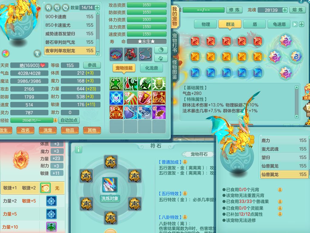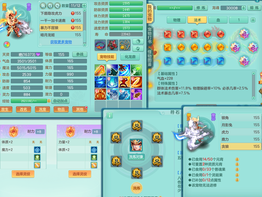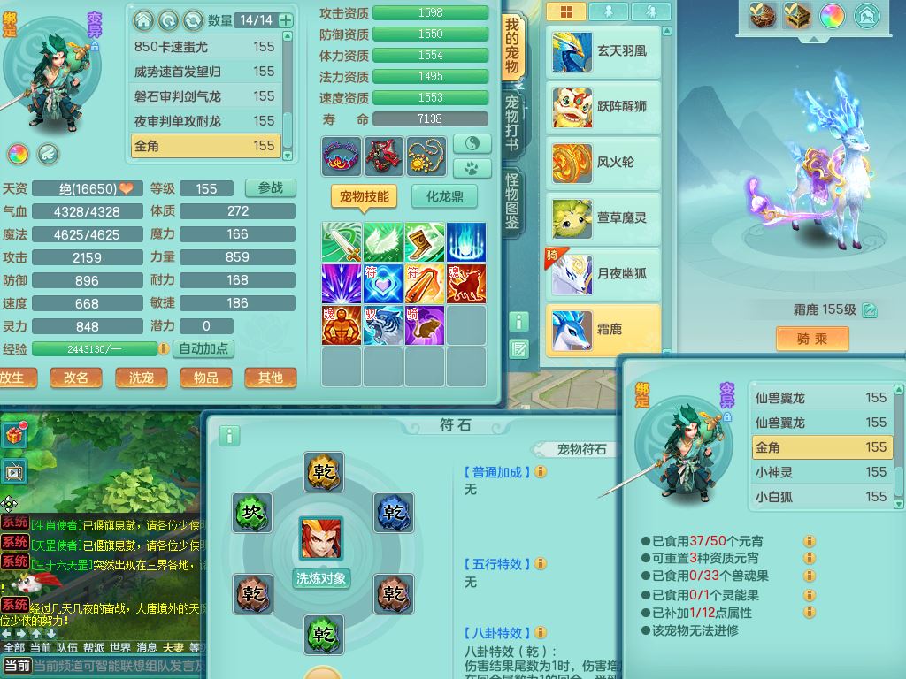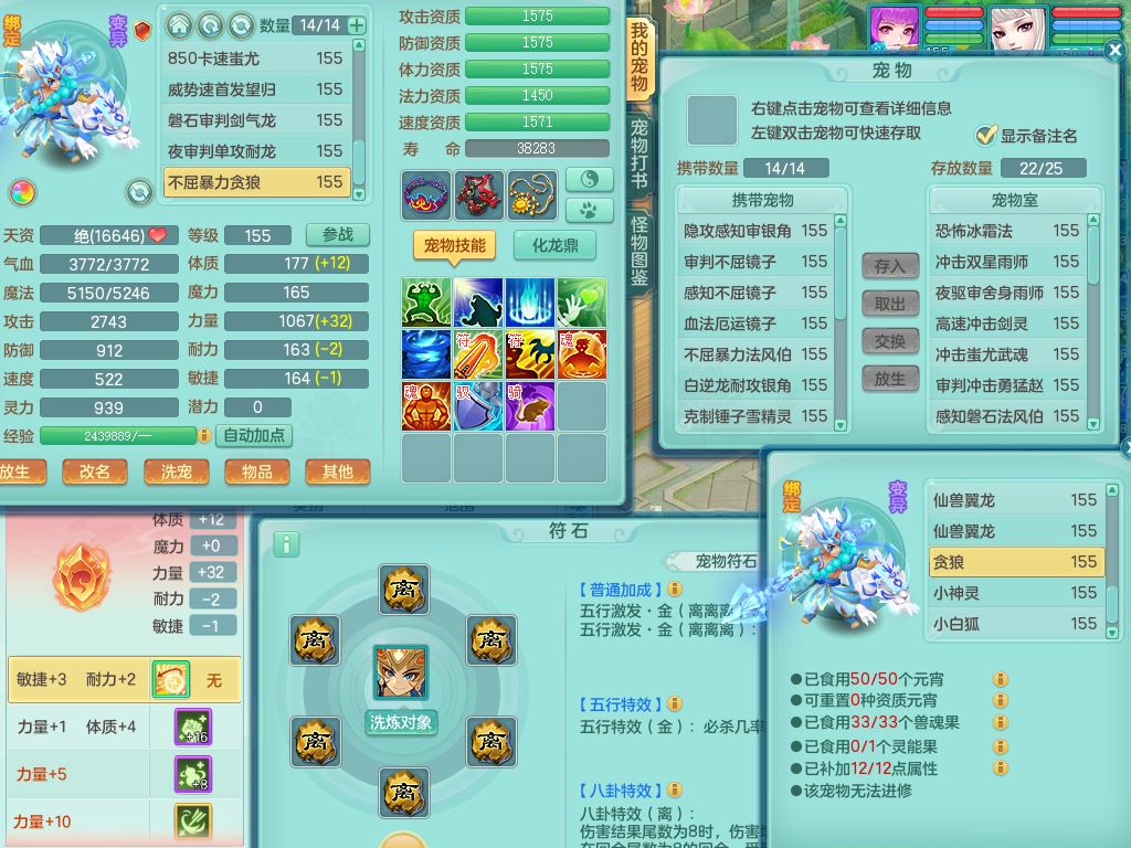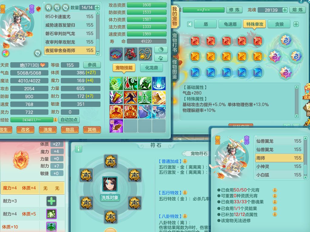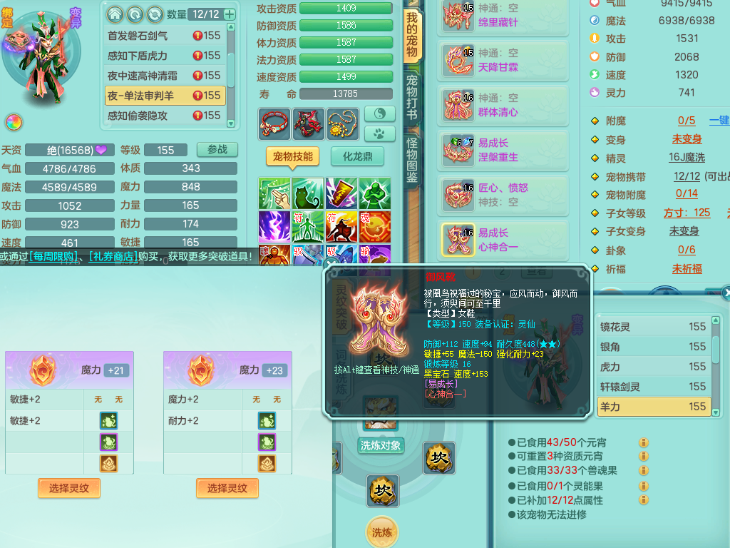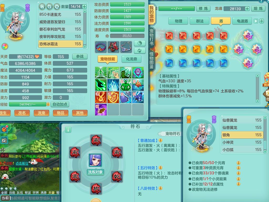 rj10041任剑逍遥159女灵月【潜龙号】精灵歌,4字靓号,2龙(换)2内15皮(4幻灵果)1神兽内丹,9特殊(逆龙/双星/舍身/守护/兽决虎虎/怒破/战争/羽袭/登云)4镜花灵(1胚子)1龙姬,25只满果子15觉醒13个纯6字,愤怒5特,鼎5.5+70+280,庭院162房屋162,永久外观精灵皮肤,5337金币,1057W神武币,宠排在榜,2只双人坐骑,带4个159成品小号,带精灵4技能,装备宝宝都齐全,仓库多存货,都有一千多W神武币