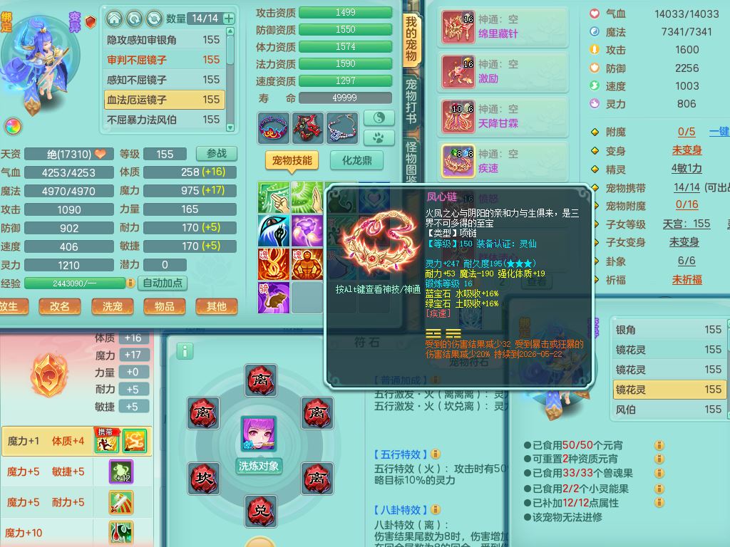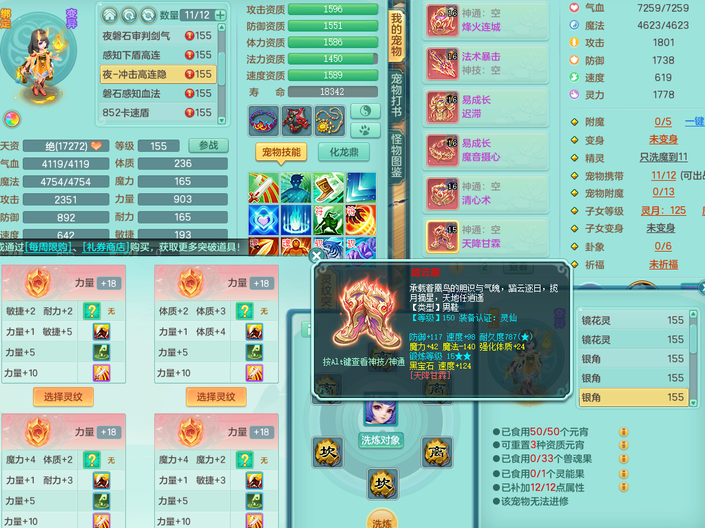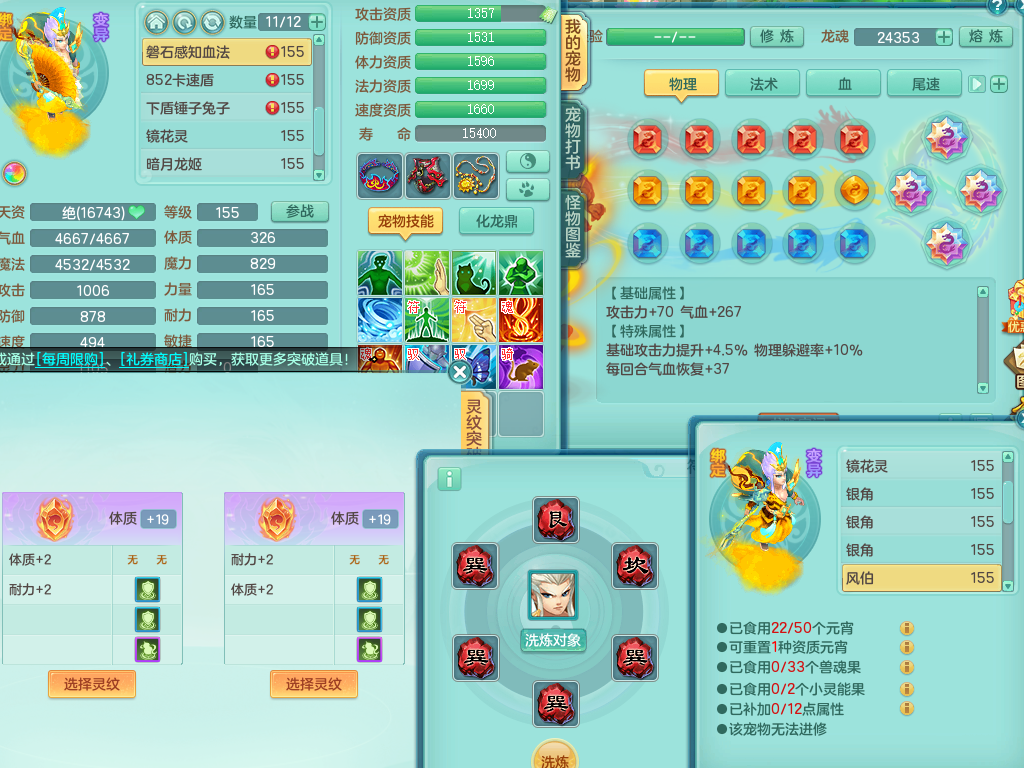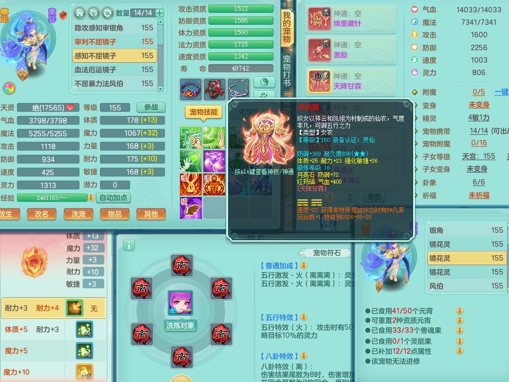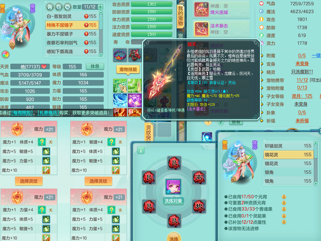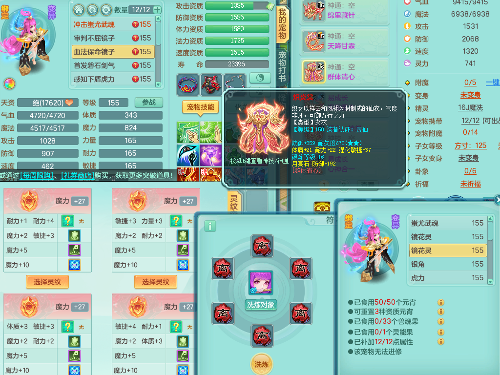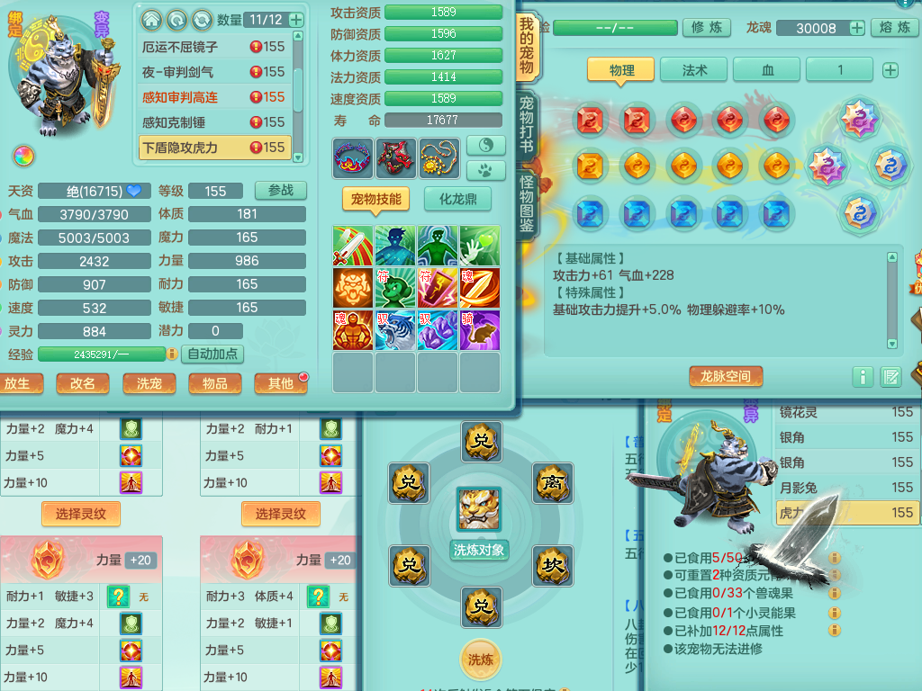 rj10041任剑逍遥159女灵月【潜龙号】精灵歌,4字靓号,2龙(换)2内15皮(4幻灵果)1神兽内丹,9特殊(逆龙/双星/舍身/守护/兽决虎虎/怒破/战争/羽袭/登云)4镜花灵(1胚子)1龙姬,25只满果子15觉醒13个纯6字,愤怒5特,鼎5.5+70+280,庭院162房屋162,永久外观精灵皮肤,5337金币,1057W神武币,宠排在榜,2只双人坐骑,带4个159成品小号,带精灵4技能,装备宝宝都齐全,仓库多存货,都有一千多W神武币