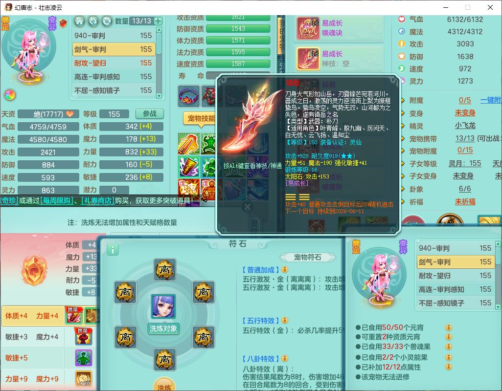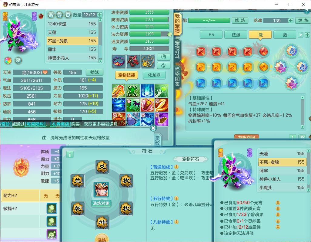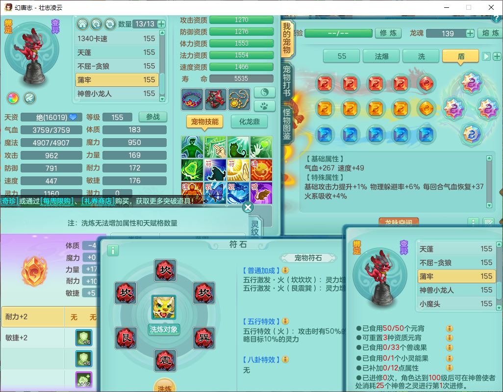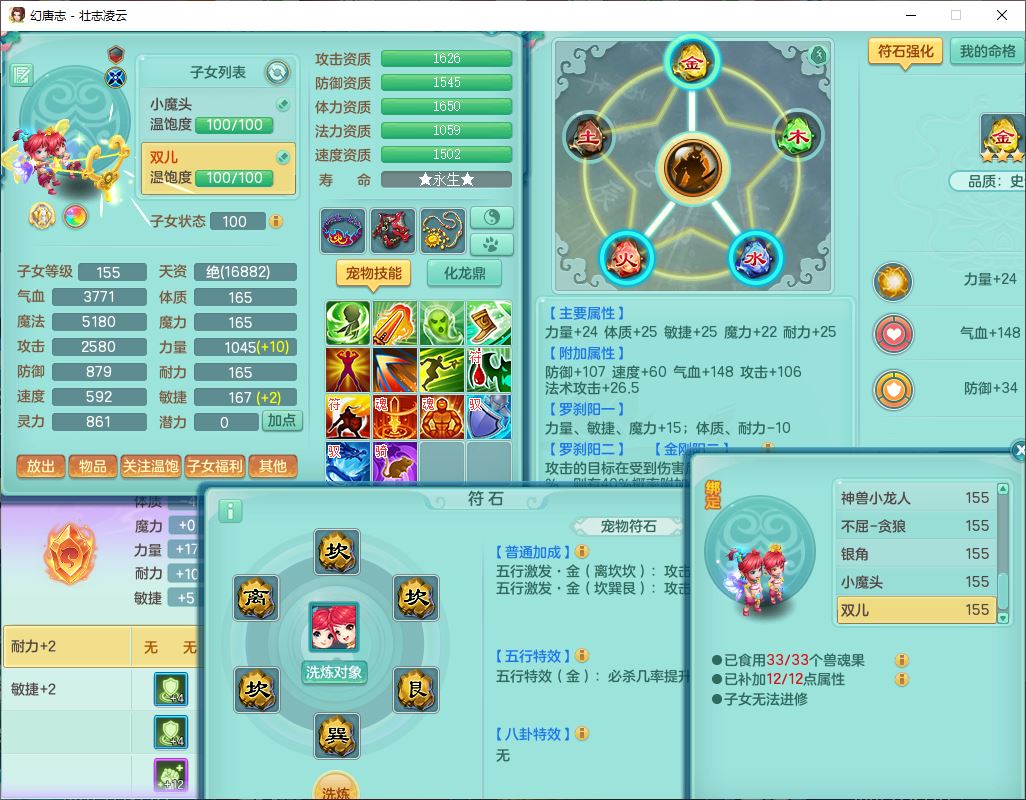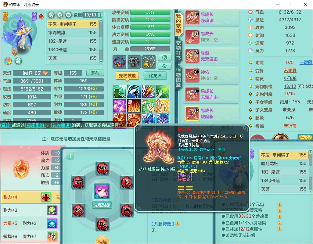zz10053壮志凌云159男万兽【西瓜冰】精灵舞,1神兽(无内)1望归2镜花1龙姬1金炉,4觉醒2六字综合8只满果子,10红全单加装备,Y唤魂帽子,躲避破血衣服,Y破血腰带,Y破魔鞋子,鼎5.5,34天月卡,永久头饰、精灵皮肤,10个仙兽灵,19个内丹碎片,1双人飞行坐骑