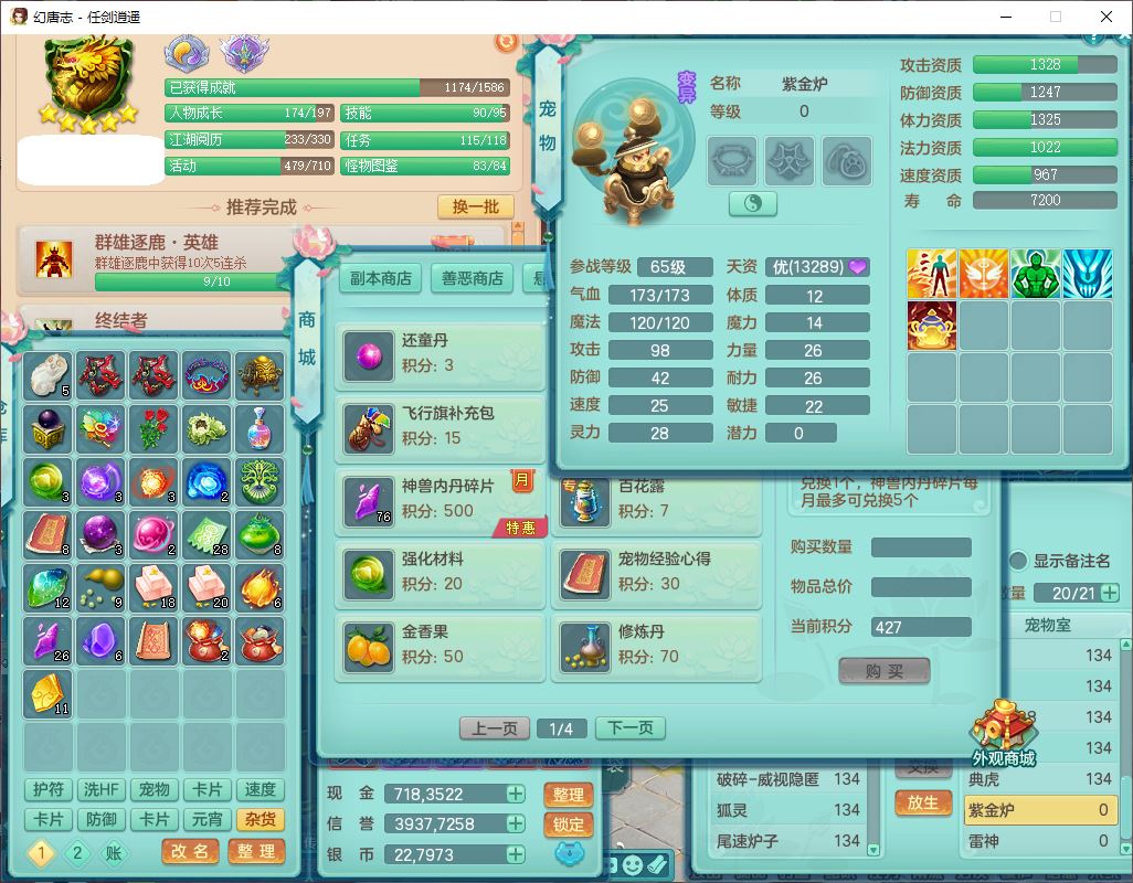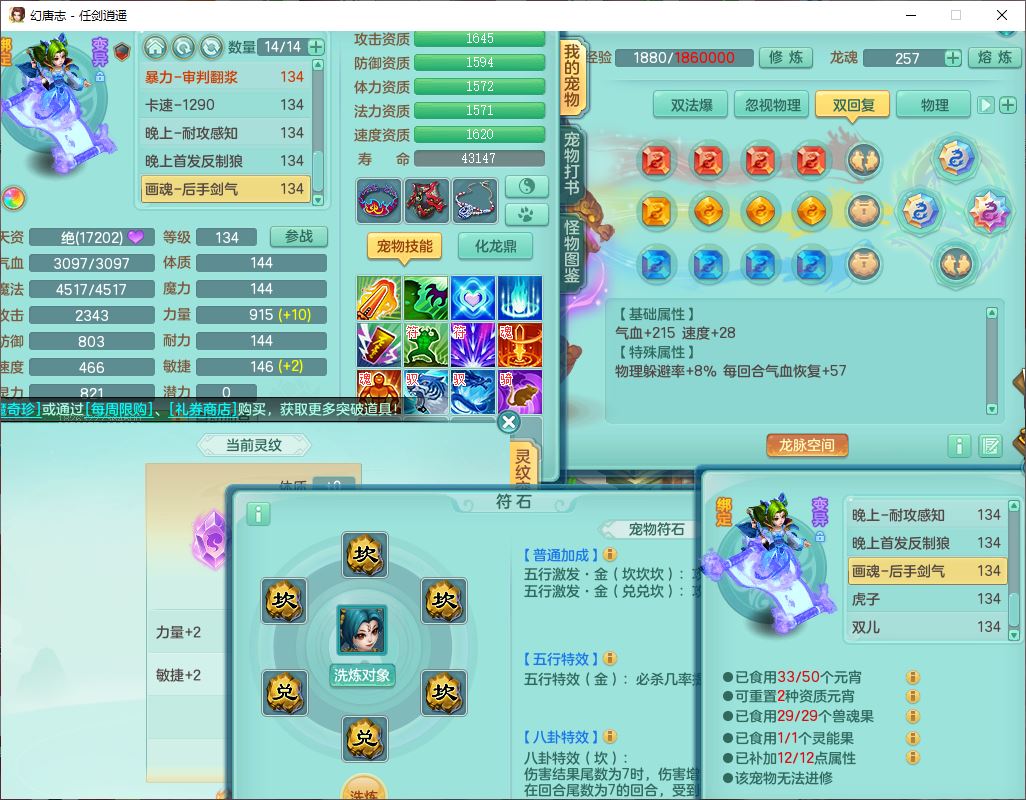 rj10049任剑逍遥129男普陀【准潜龙号,差3条主符石3颗厚土】精灵舞,1龙(换、无内)1内1神石1九幽2金炉,9觉醒8六字6四字(1洗练珠)14只满果子,12红装备,Y激励帽子,幸运玉清武器,强壮四海衣服,药王慈航项链,愤怒罗汉腰带,Y笑里鞋子,一套物理装备,729单加狂暴武器,坚毅项链,迅捷鞋子,鼎4.0+56,26个内丹碎片,1双人坐骑