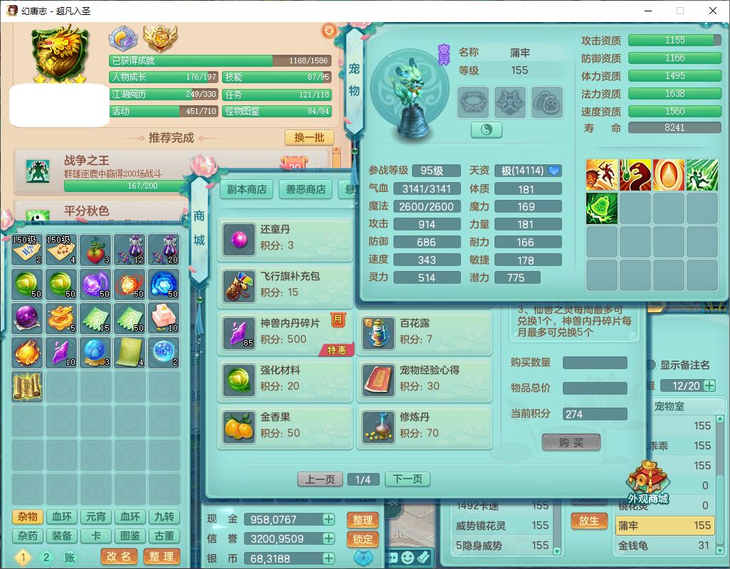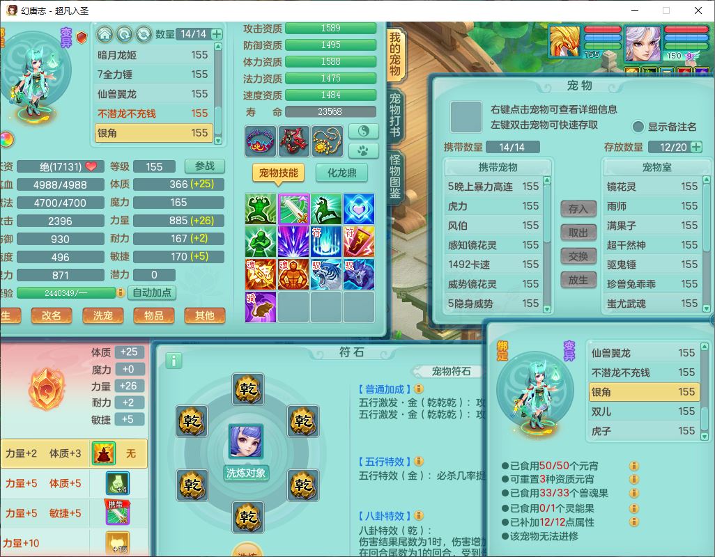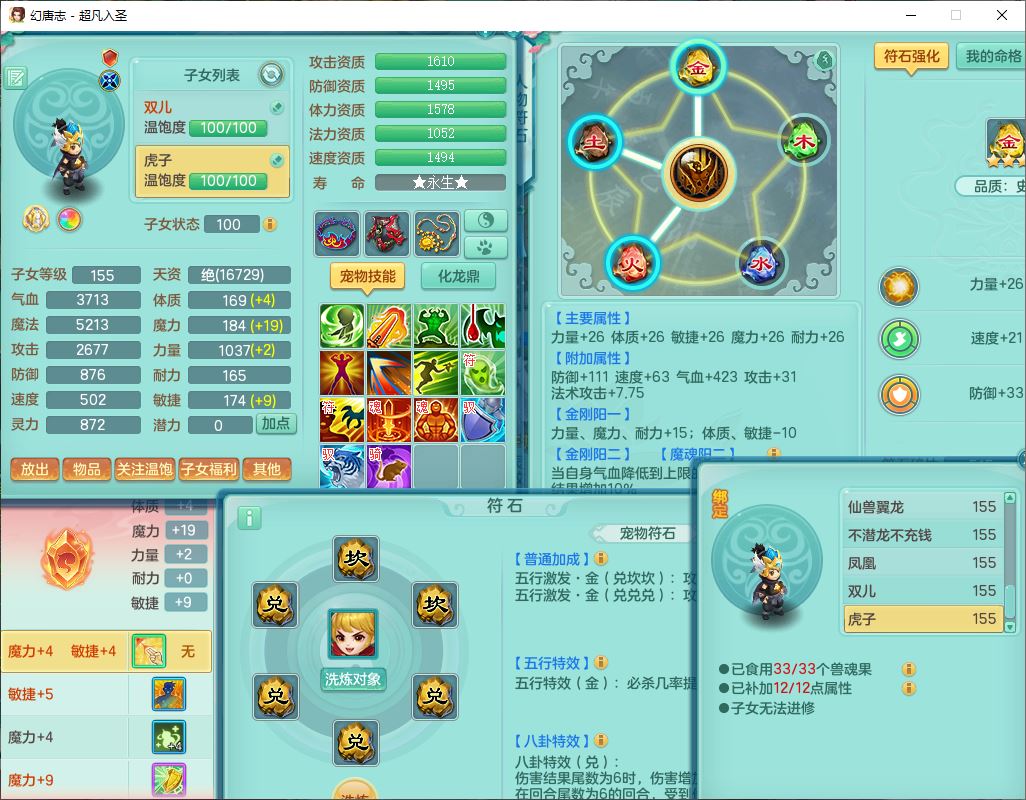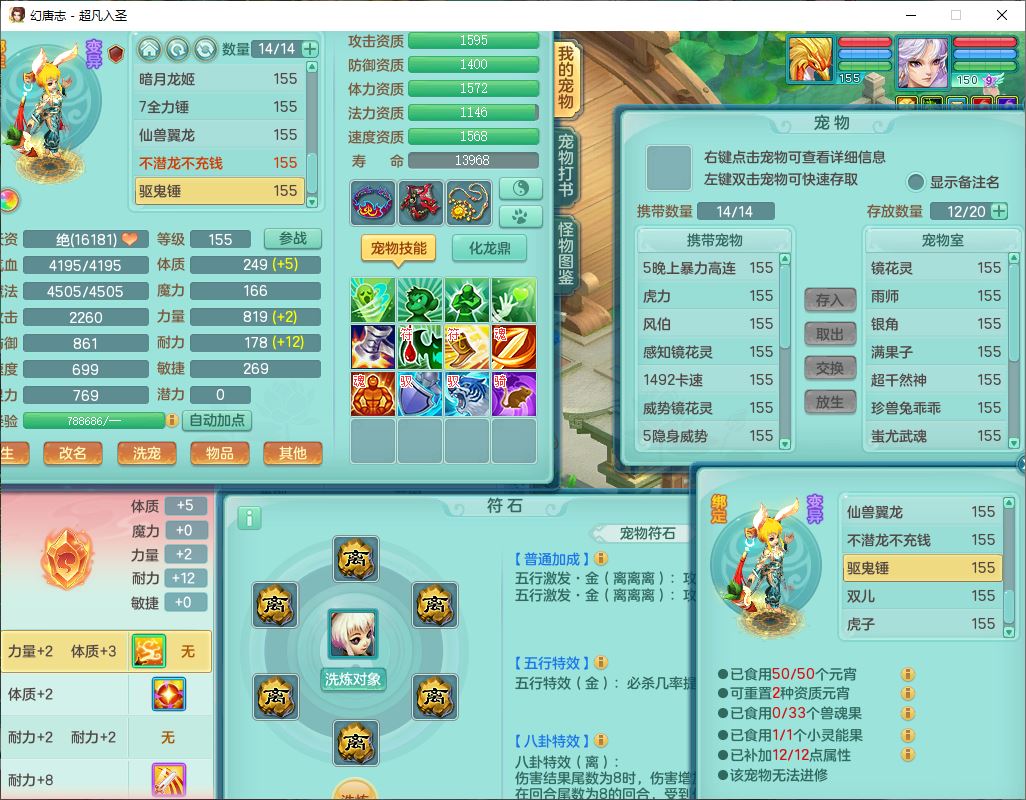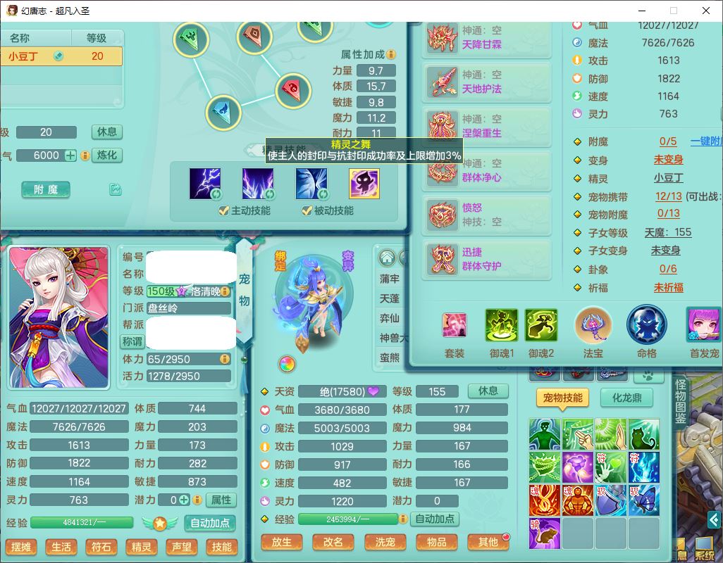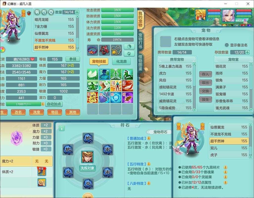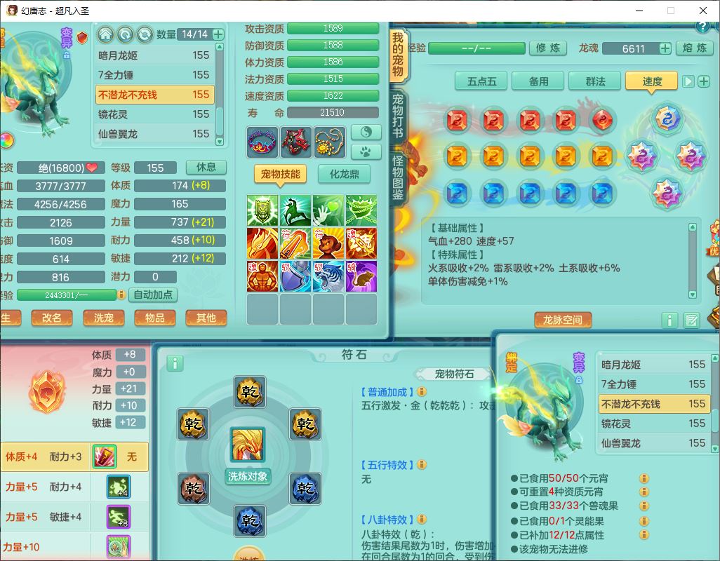 cf10063超凡入圣159男魔王【潜龙号】精灵歌,1龙(换、无内)1内(破境)1望归3镜花1龙姬1特殊兽决(剑胆),13觉醒11六字2五字2四字14只满果子,8红星辰之拥双法缭装备,急速冷却慈航帽子,法爆魔音武器,法缭疾速衣服,法缭鞋子,崩山衣服,鼎5.5+70+280,10个内丹碎片,1双人飞行坐骑,带159成品奶粉女盘丝