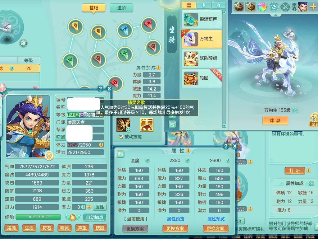 tx10062天下无双159男天宫精灵歌,2套星穹,1内2皮1神兽内丹2特殊(噬风/守护兽决),5镜花灵(1胚子),综合16只满果子11觉醒,单加烽火头,单加法爆罗汉武器,单加Y衣服,275Y项链,鼎5.0+70,2套符石,30天月卡,冰晶庭院178,永久外观精灵皮肤,3只双人坐骑