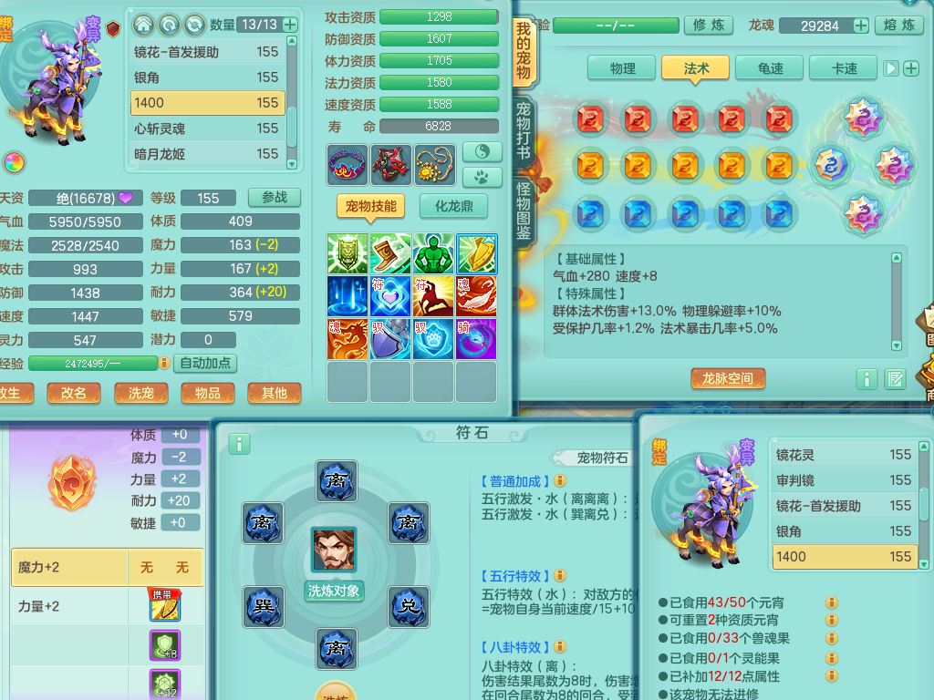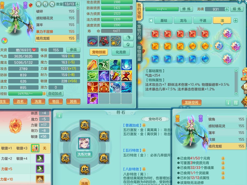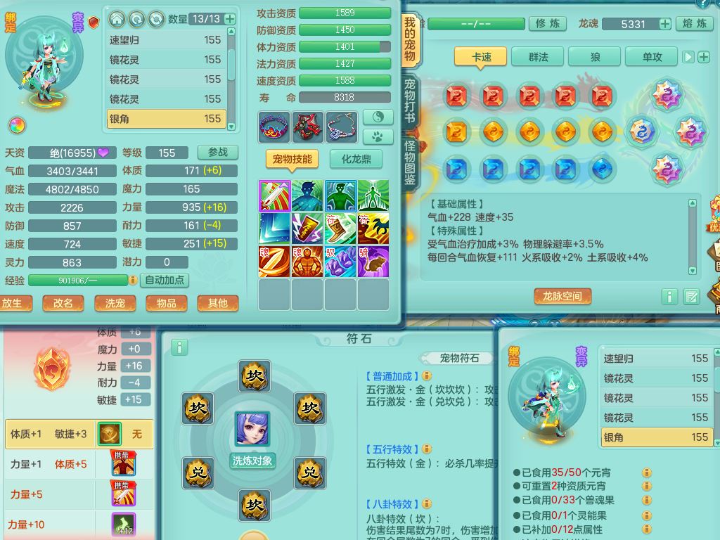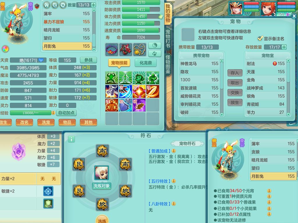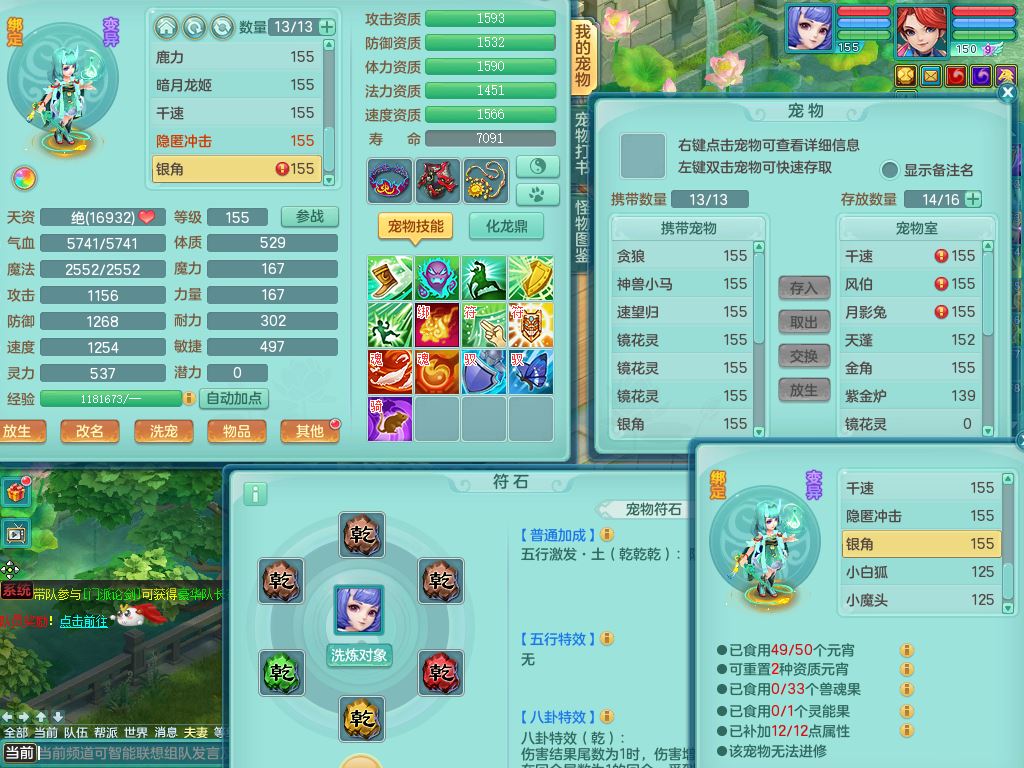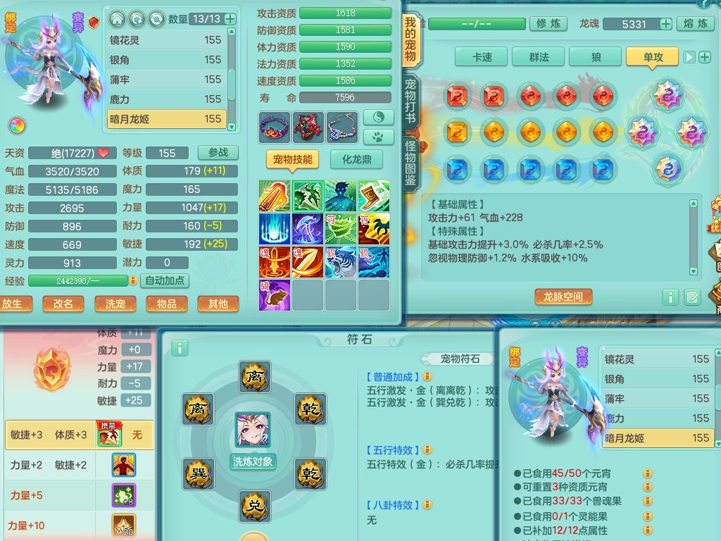 xa10064笑傲江湖159男万兽【潜龙号】精灵歌,2内1皮1特殊(月光兽决),4镜花灵1龙姬,10只满果子8觉醒7个纯6字,917单加Y武器,崩山衣服,鼎5.5+70+280,125天月卡,37内丹碎片,万兽精灵舞,1内丹青蛇(破境)3镜花灵1龙姬,满攻单加Y绝幻武器,崩山衣服,愤怒四海腰带,单加迅捷鞋,鼎5.0+280,159佛门精灵舞,1内丹龙马2特殊(破碎/雷光兽决)9觉醒,4镜花灵1龙姬,单加回春武器,迅捷Y鞋,鼎5.5,方寸精灵舞,1内(破境)特殊(双星)封印头,愤怒双红腰带,8觉醒,3镜花灵1龙姬