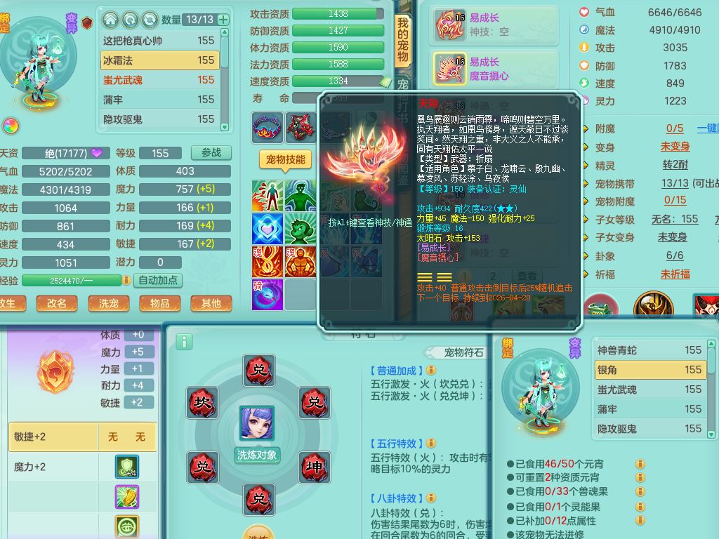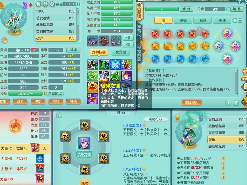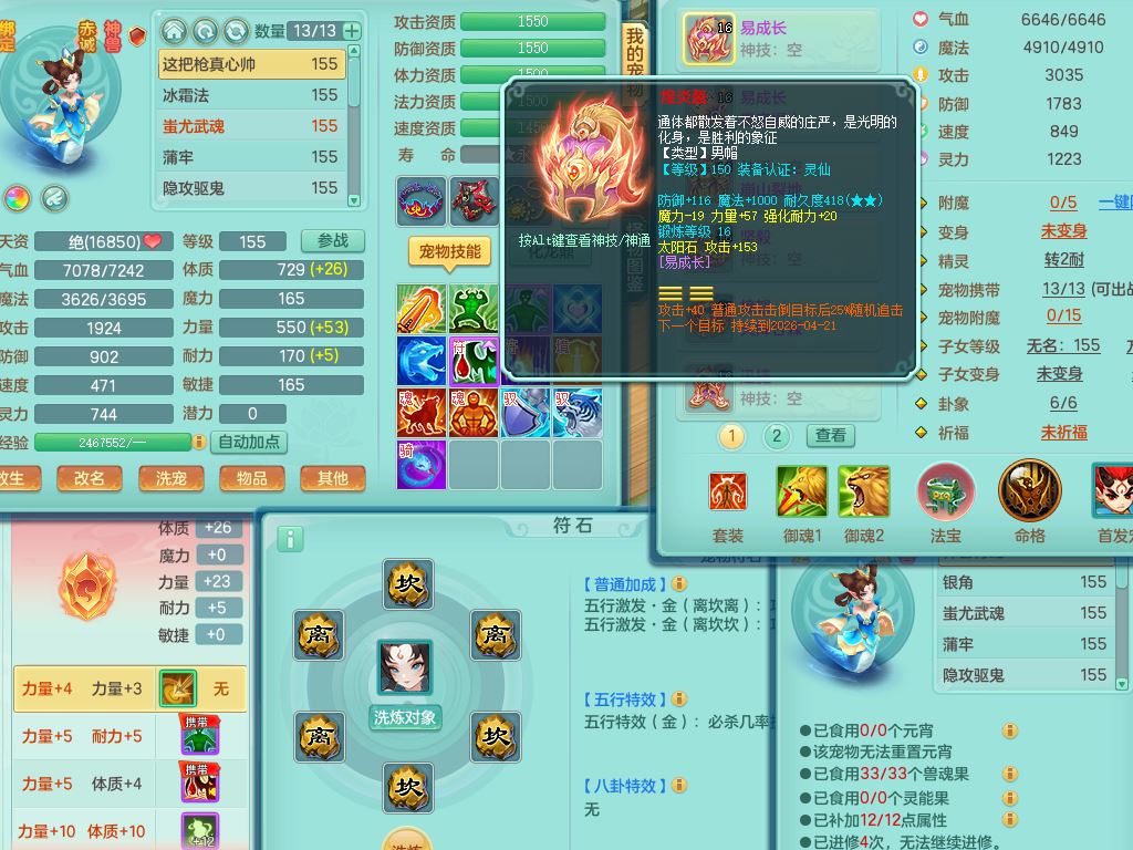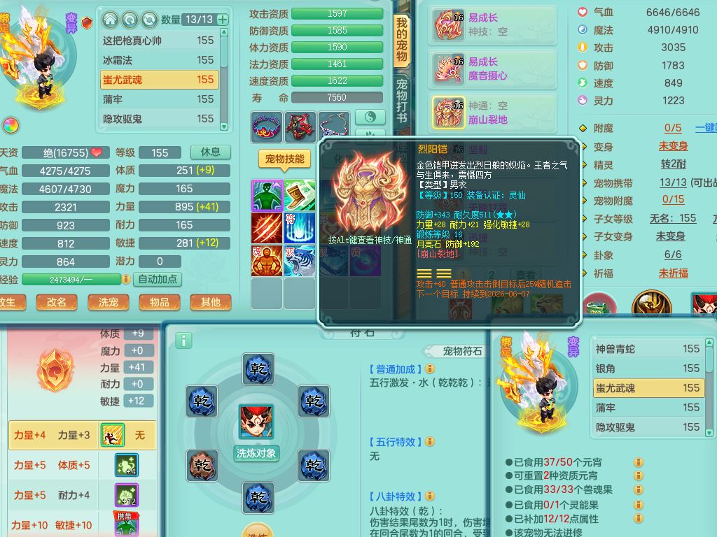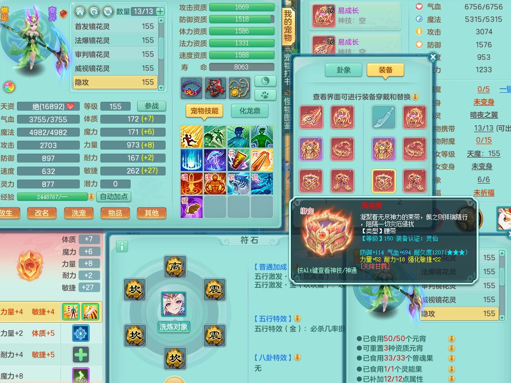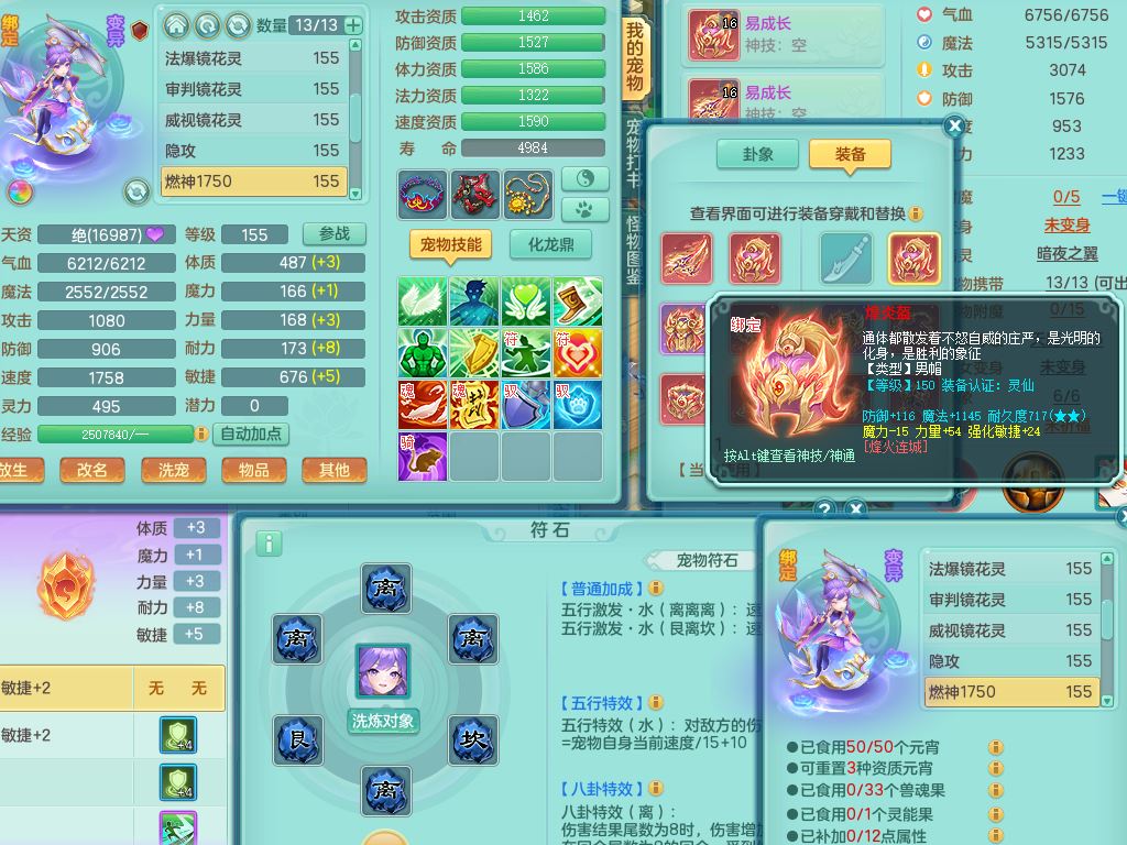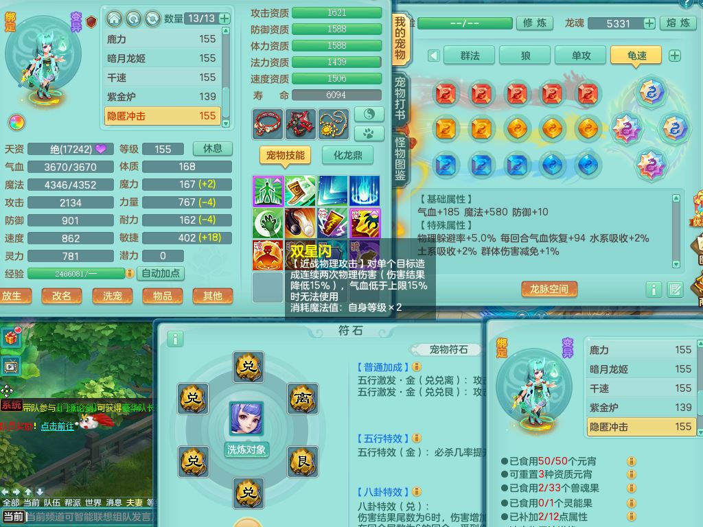 xa10064笑傲江湖159男万兽【潜龙号】精灵歌,2内1皮1特殊(月光兽决),4镜花灵1龙姬,10只满果子8觉醒7个纯6字,917单加Y武器,崩山衣服,鼎5.5+70+280,125天月卡,37内丹碎片,万兽精灵舞,1内丹青蛇(破境)3镜花灵1龙姬,满攻单加Y绝幻武器,崩山衣服,愤怒四海腰带,单加迅捷鞋,鼎5.0+280,159佛门精灵舞,1内丹龙马2特殊(破碎/雷光兽决)9觉醒,4镜花灵1龙姬,单加回春武器,迅捷Y鞋,鼎5.5,方寸精灵舞,1内(破境)特殊(双星)封印头,愤怒双红腰带,8觉醒,3镜花灵1龙姬