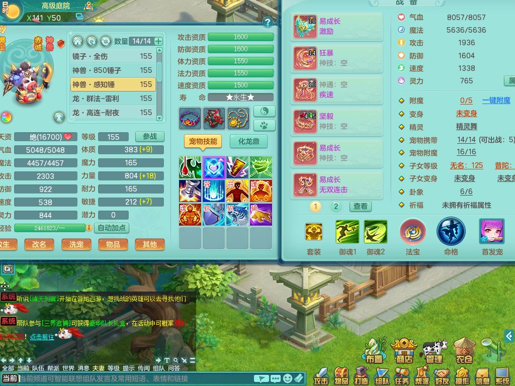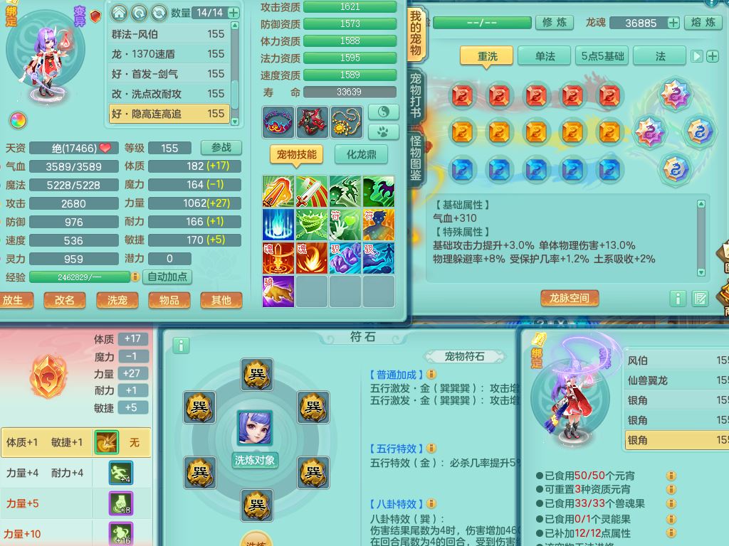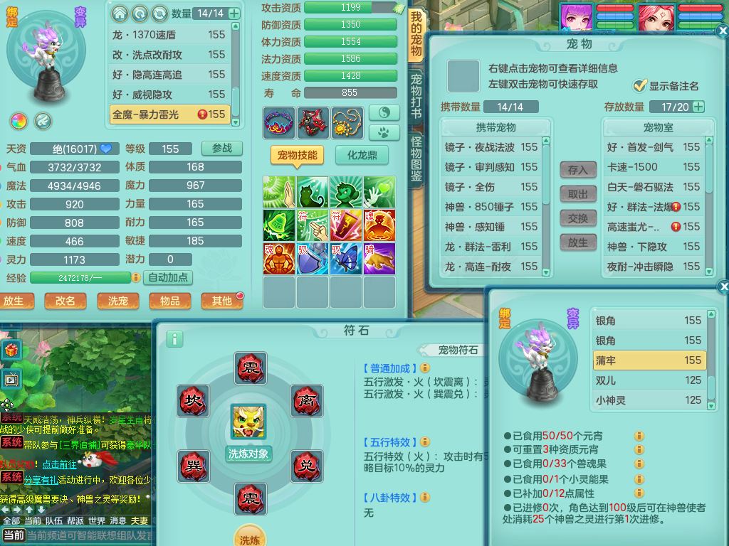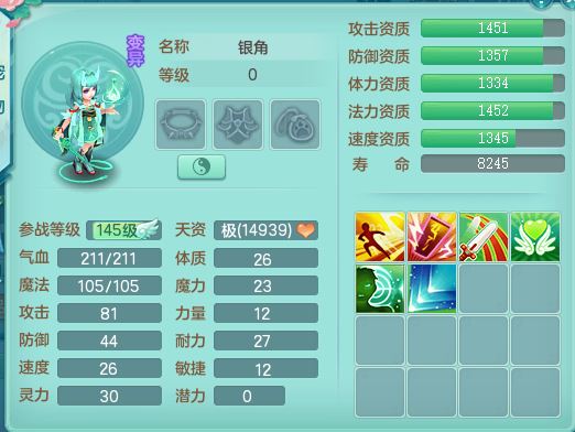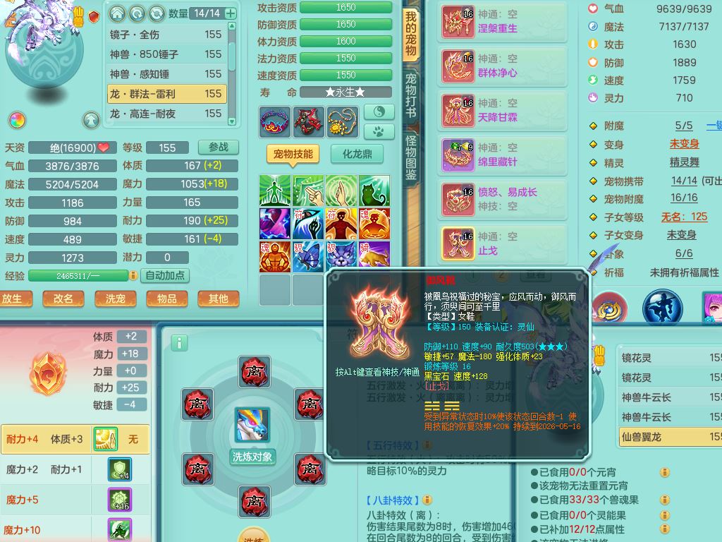 jn10079今年勇159女天魔【潜龙号】精灵舞,2内丹龙1龙(换,无内)3内(1青蛇)特殊(墨守)4镜花灵1龙姬,18只满果子9觉醒7个纯6字,愤怒5特,单加愤怒Y腰带,鼎5.5+70+280,永久外观精灵皮肤,823W神武币,宠排在榜,3坐骑(1只双人)