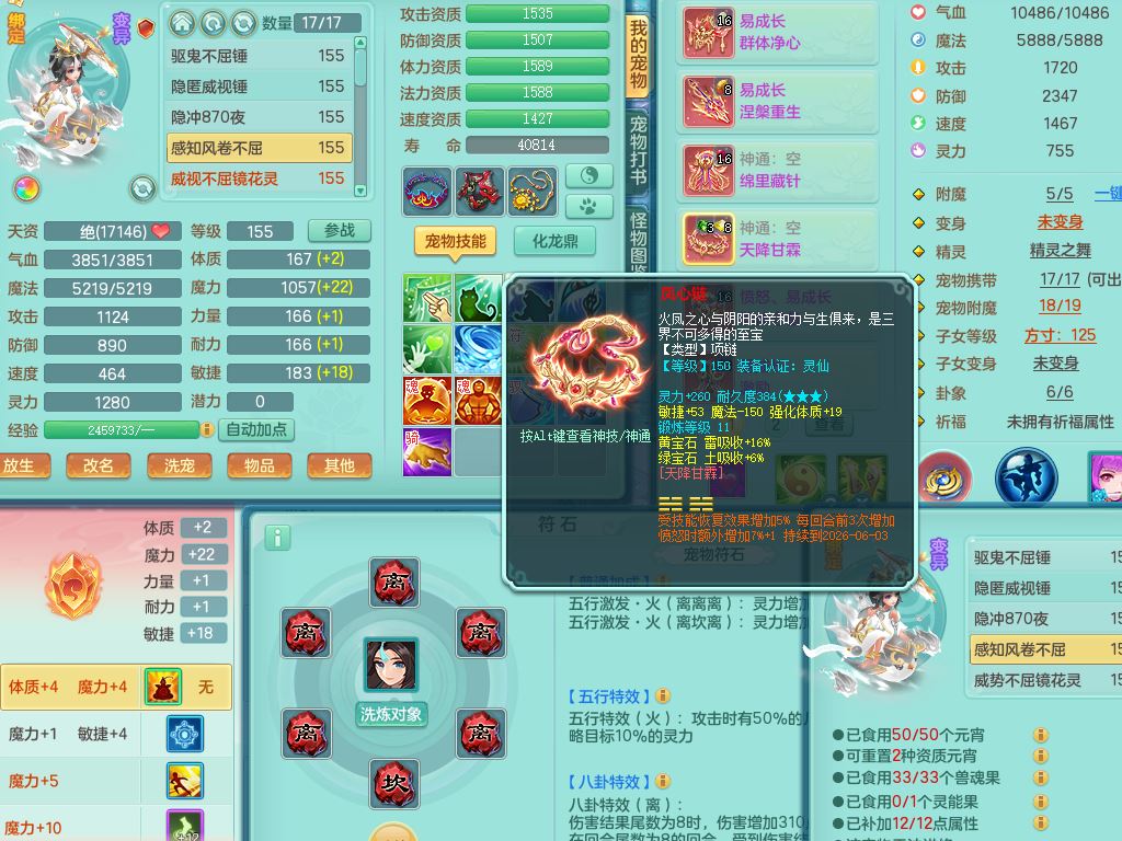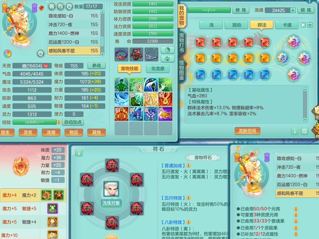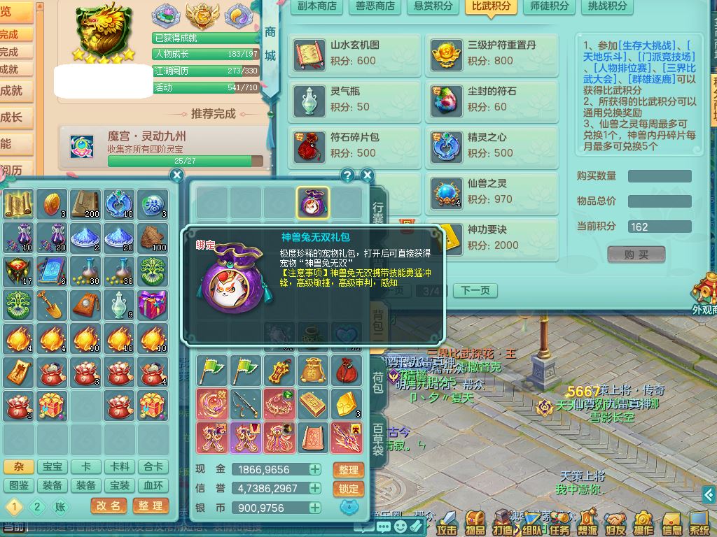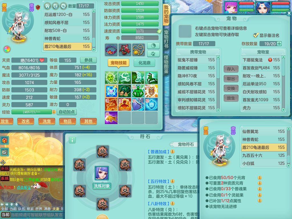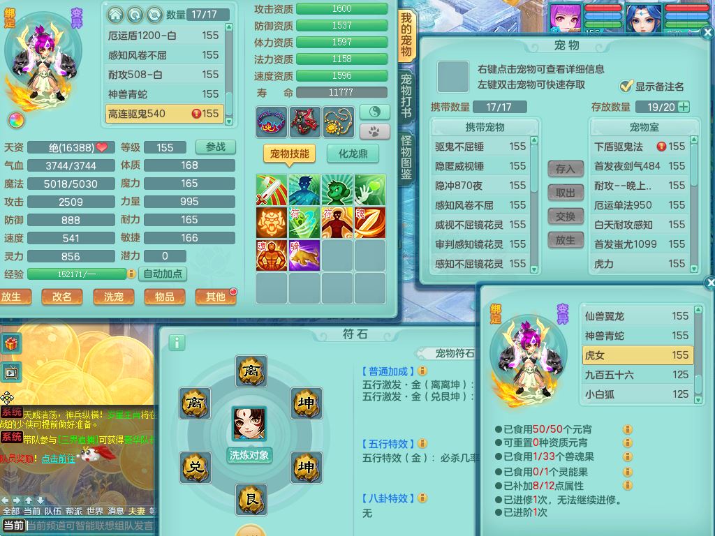 lt10080龙腾九州159女五庄【潜龙号+暴龙逍客+西瓜冰】精灵歌+舞+悟,2套星穹,3内丹龙(换)3内丹神9皮,4特殊(风卷/雷厉/烈焰/琴音兽决)6镜花灵1龙姬,17格子27只满果子17觉醒14个纯6字,11红,愤怒6特,Y晶清头,Y慈航武器,愤怒Y3红腰带,Y野兽鞋,法系星辰之拥,法爆慈航武器,法缭水清鞋,274单加Y项链,鼎6.0+70+280,冰晶庭院233房屋173,永久外观精灵皮肤,900W神武币,宠排在榜,7坐骑(5只双人)