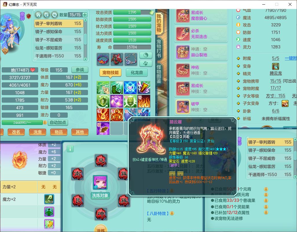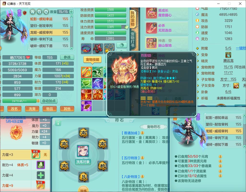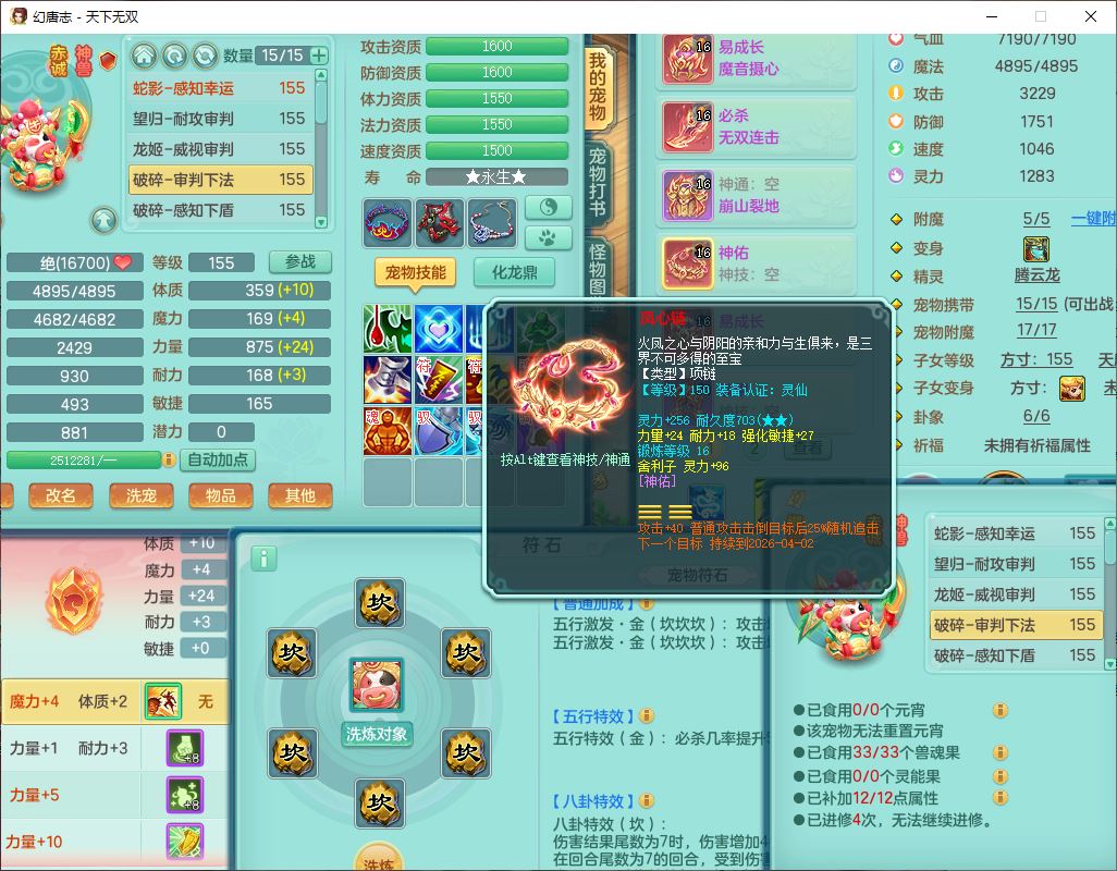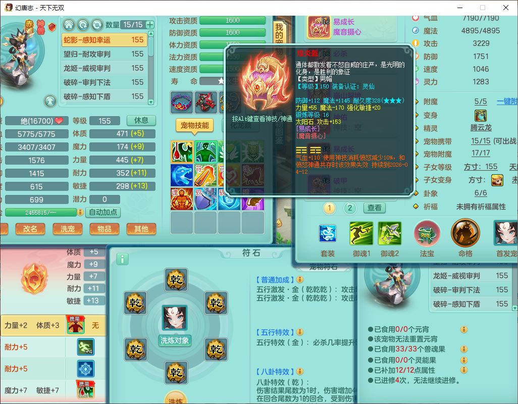 tx10097天下无双159男天魔【潜龙+心想事成+火焰之力+流光翎】精灵舞,2内丹龙4内(2青蛇)1望归2龙姬(1胚子)5镜花1金炉1特殊(逆龙),13觉醒1宠皮10六字1五字5四字16只满果子,8红装备,Y魔音帽子,928必杀破血武器,崩山衣服,破甲鞋子,有辅助装,鼎5.5+70+280,80天月卡,庭院154,永久外观、精灵皮肤,47个仙兽灵,1仙兽内丹,9个神兽内丹碎片,4.9W多金币,1双人飞行坐骑