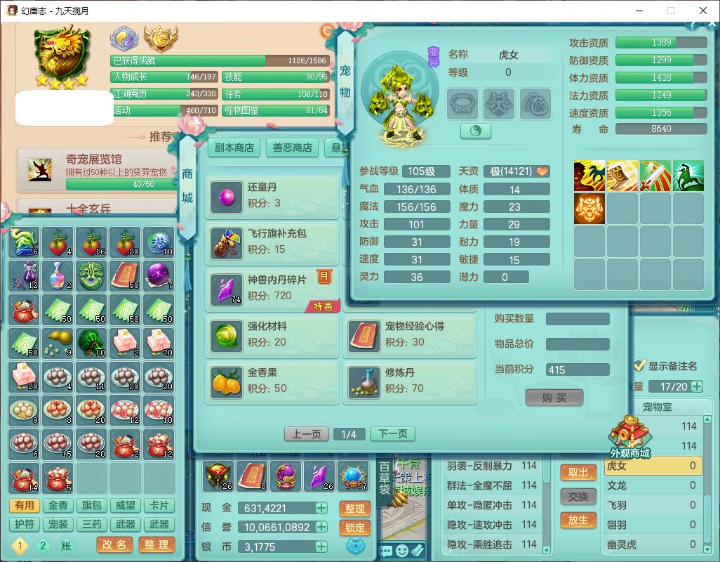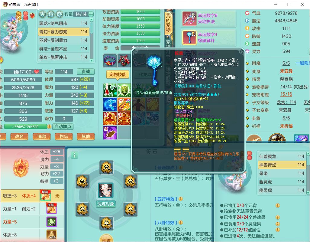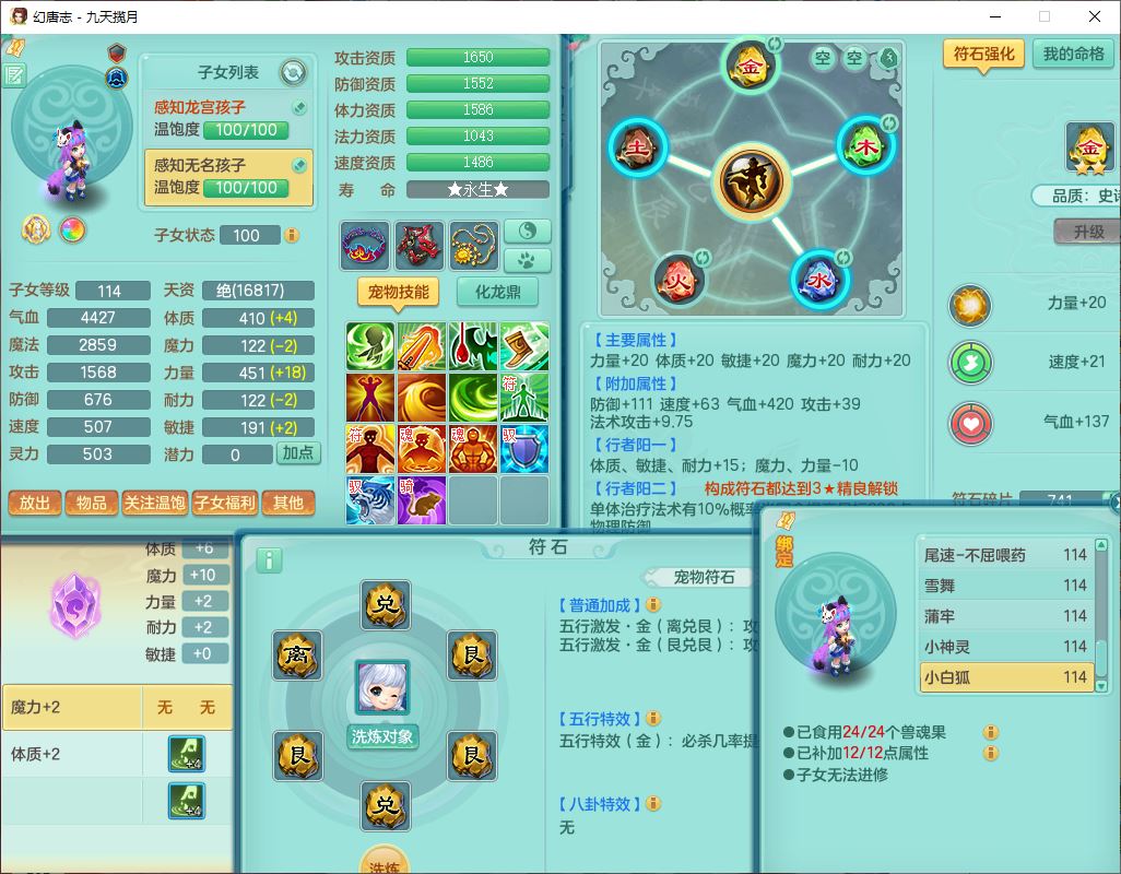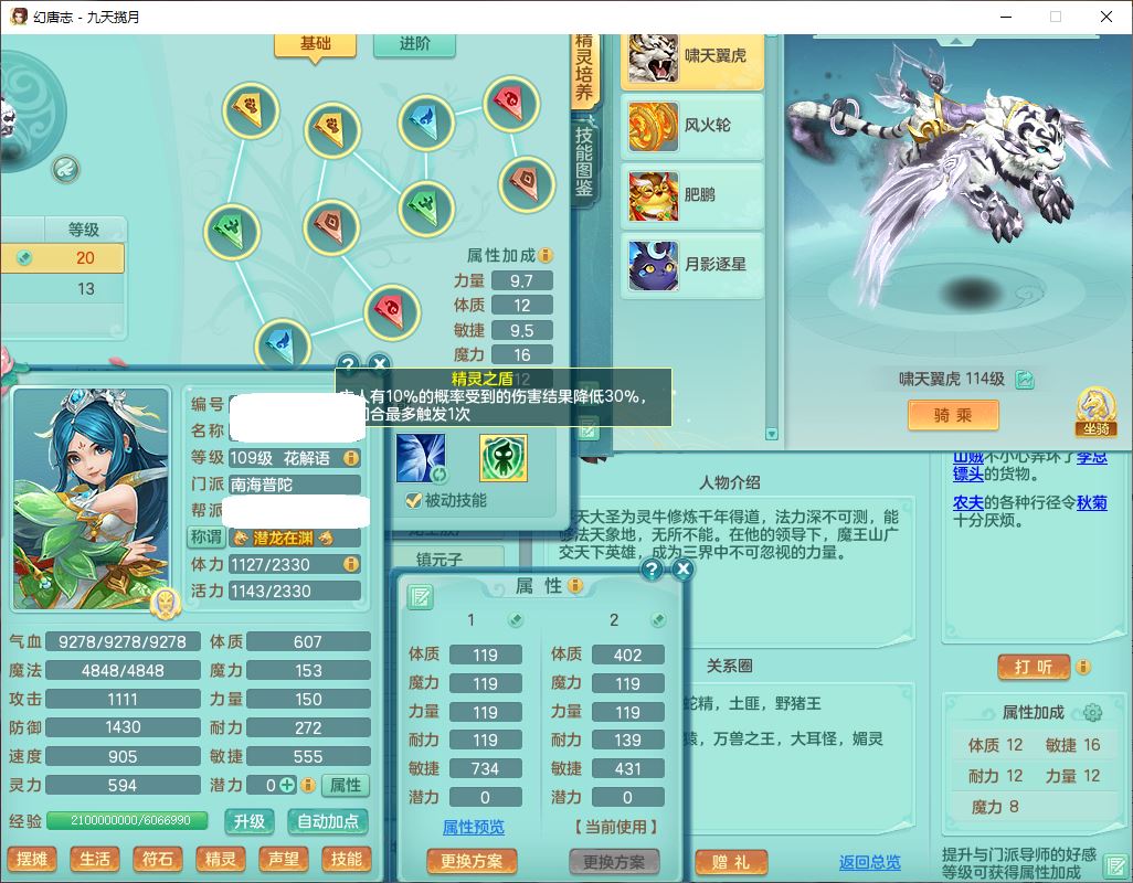 jt10110九天揽月109女普陀【潜龙号】精灵盾,1龙(无内)1内丹青蛇1金炉2羽袭多只幽灵虎,9觉醒9六字3五字6四字21只满果子,12红装备,幸运罗汉帽子,幸运笑里武器,幸运四海衣服,药师激励项链,愤怒迟滞腰带,Y晶清鞋子,Y止戈项链,鼎3.0+42+168,26个内丹碎片,1神兽内丹,3坐骑(1双人飞行);带159男魔王全魔精灵2镜花4觉醒3特殊(荒古、夺命、祈雨),宝宝装备齐全;带两个152奶粉