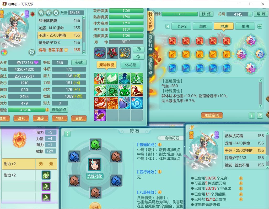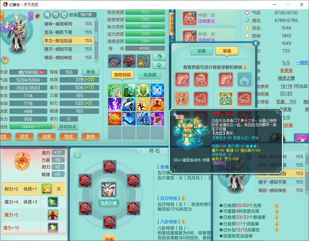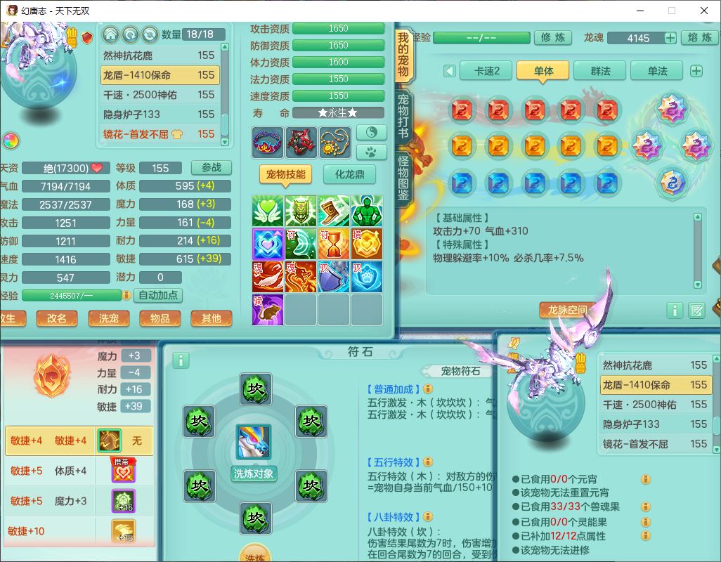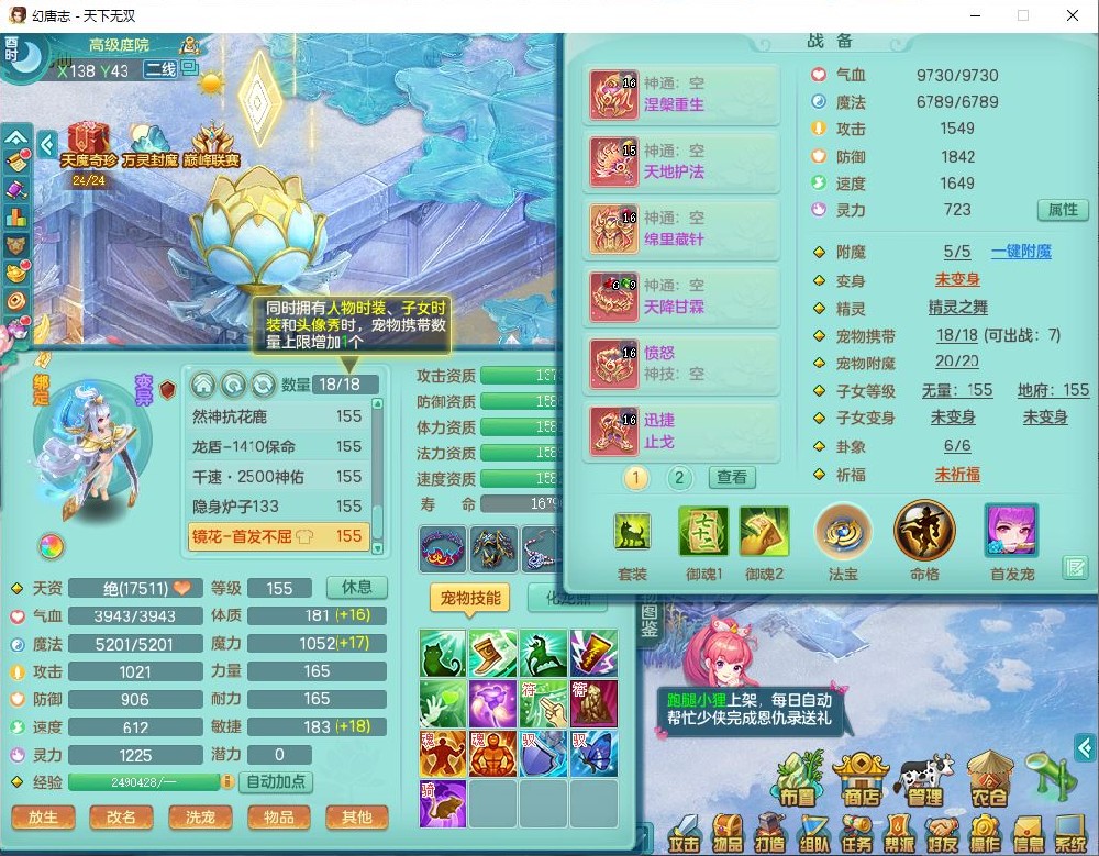 tx10125天下无双159男方寸【潜龙+心想事成+暴龙洪荒+火焰之力+西瓜冰+流光翎】精灵歌、舞,4位靓号,6内丹龙(2破境)3内(1青蛇1龙马)3镜花1龙姬胚子1望归2特殊(青霜,夺命兽决),14觉醒6宠皮18六字25只满果子,18格子,7红全单加装备,迅捷止戈鞋子,有法系装备,法爆武器,单加263Y心神项链,鼎5.5+70+280,177天月卡,冰晶庭院163房屋155,永久外观、精灵皮肤,7坐骑(2双人飞行)