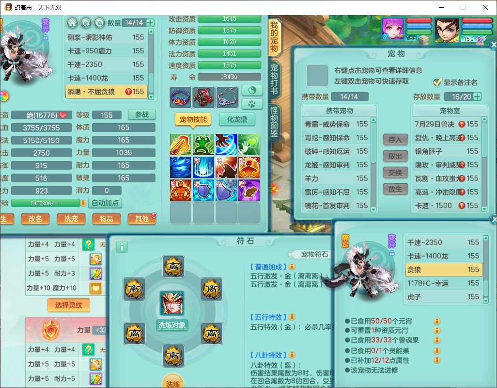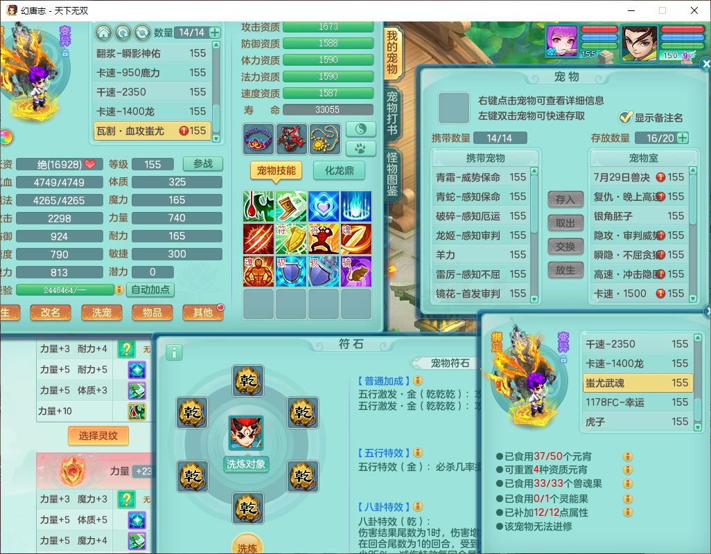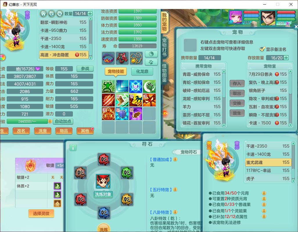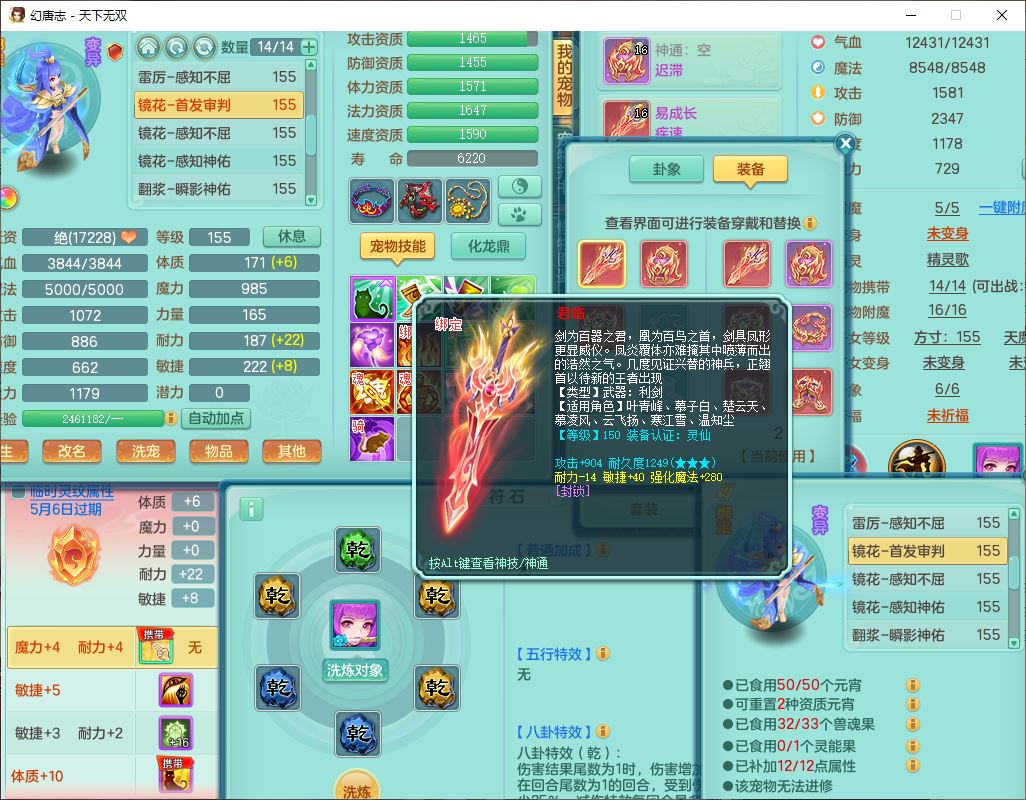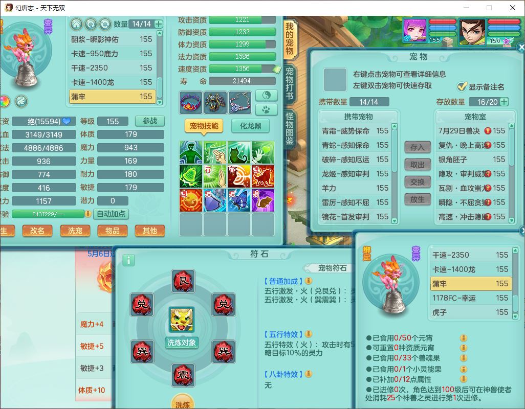 tx10124天下无双159男无量【潜龙+马上发财+暴龙猎手+火焰之力+西瓜冰】精灵歌,1龙无内1内丹青蛇3镜花1望归1龙姬1金炉5特殊(青霜、雷利、翻江,羽袭、破碎兽决),17觉醒1宠皮11六字2五字3四字综合22只满果子,7红装备,Y疾速武器,仓库多装备,回春法术反制武器,封锁武器,封印精通帽子,鼎6.0+70+280,164天月卡,庭院157,永久外观、精灵皮肤,5坐骑(1双人飞行)