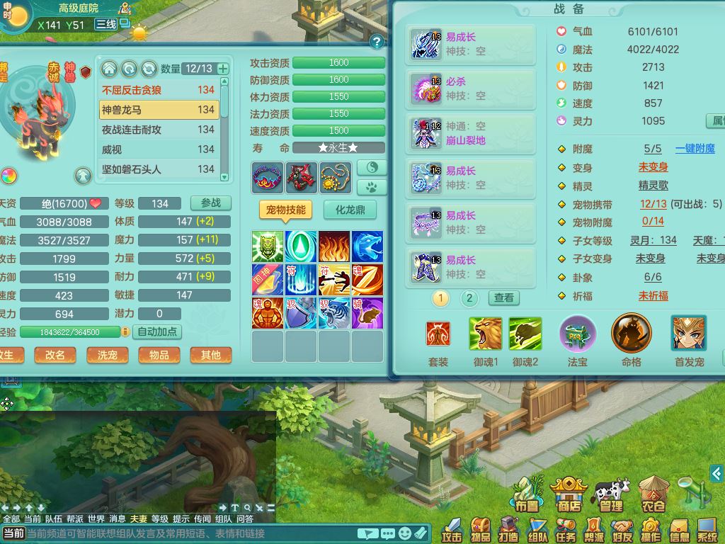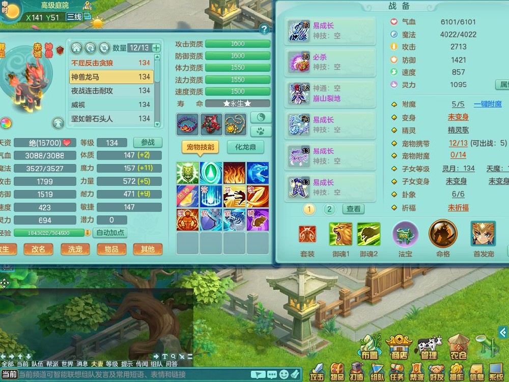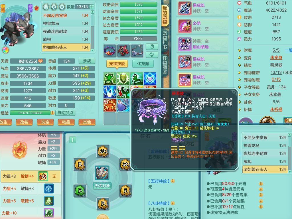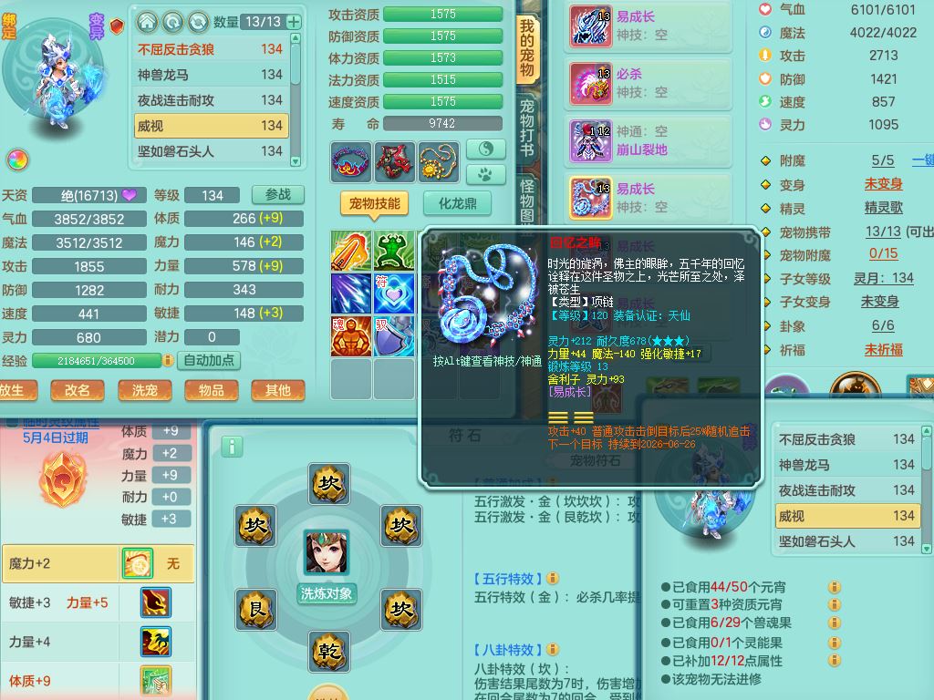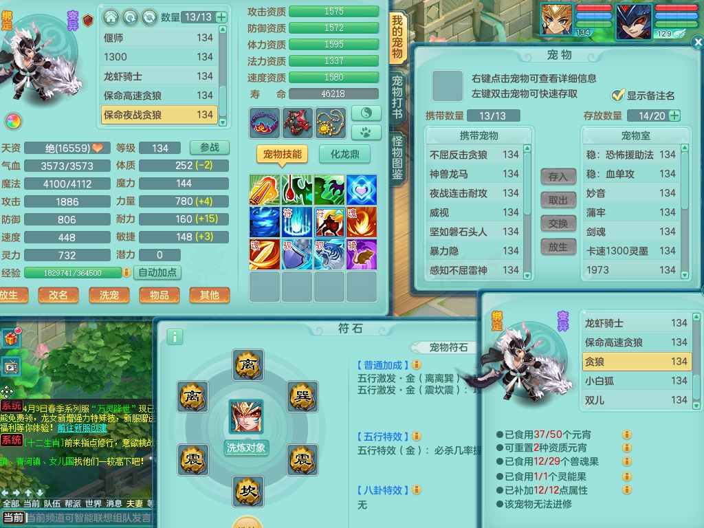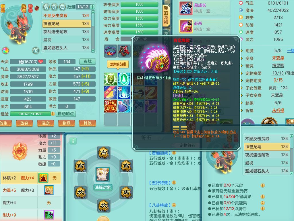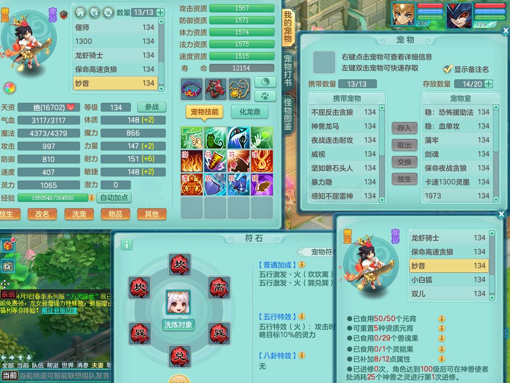 tx10116天下无双129男万兽精灵歌,满级共鸣,1内丹龙马1贪狼皮,炼妖9技能雷光,综合6只满果子5觉醒,6个4字(1洗练珠)2个5字1个6字,满攻必杀武器,单加Y头,崩山衣服,鼎4.0,14天月卡,永久外观精灵皮肤,17仙兽灵,飞行烛龙坐骑