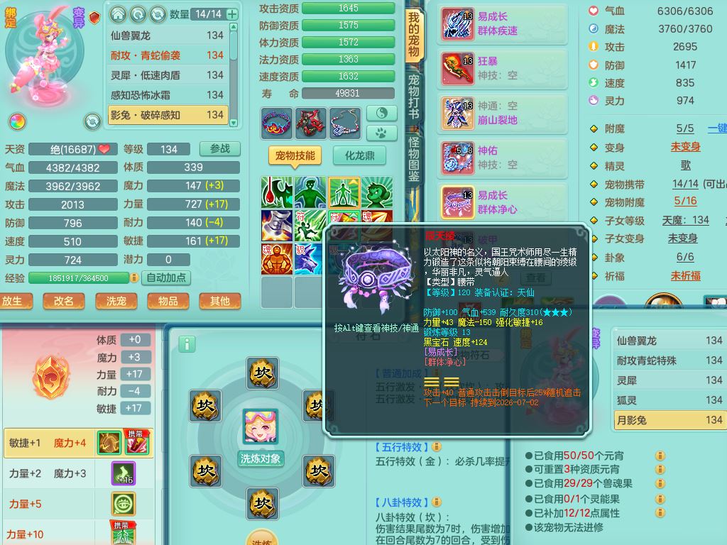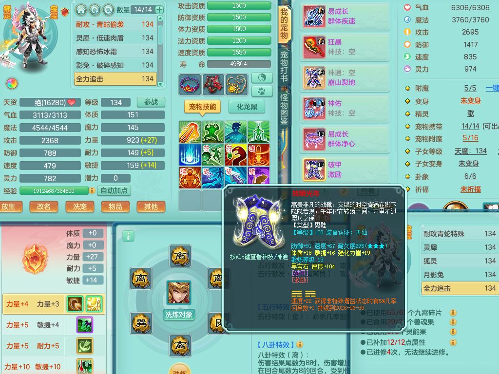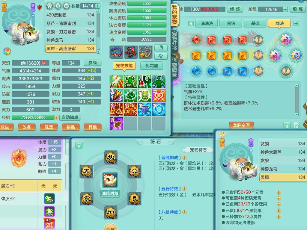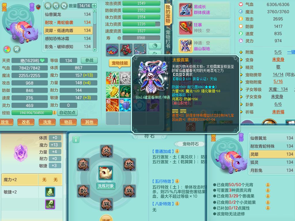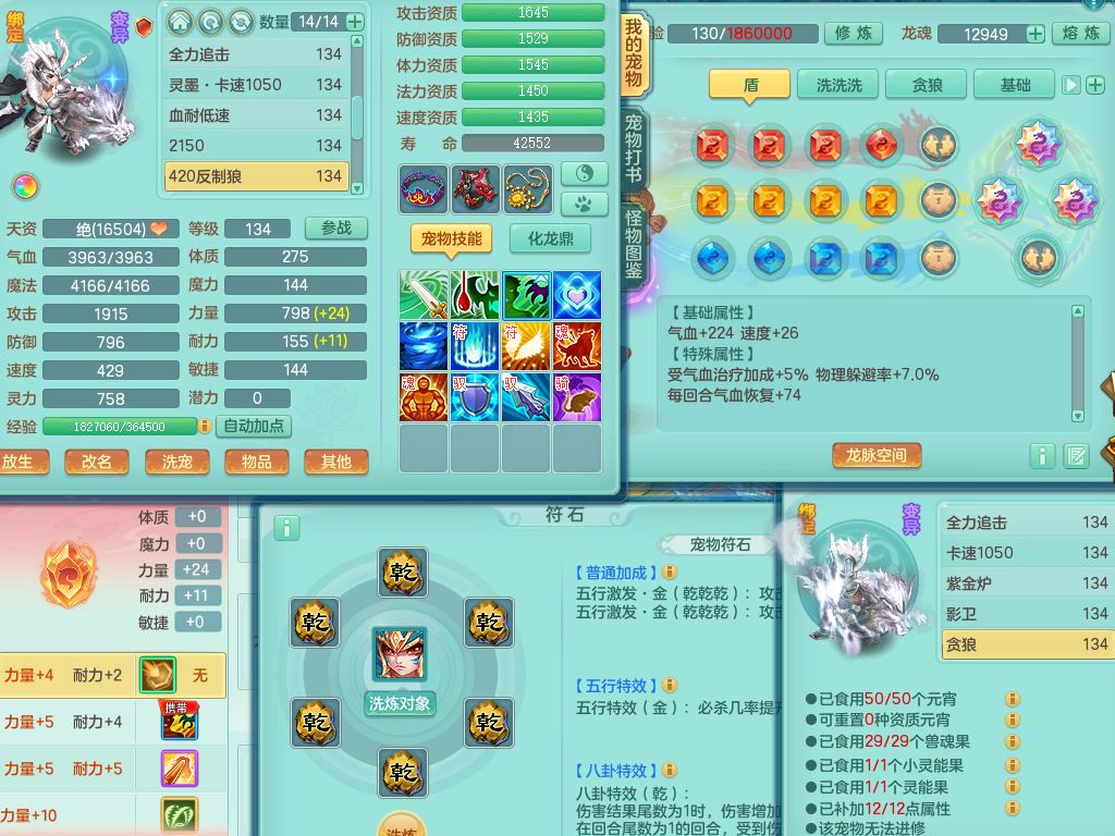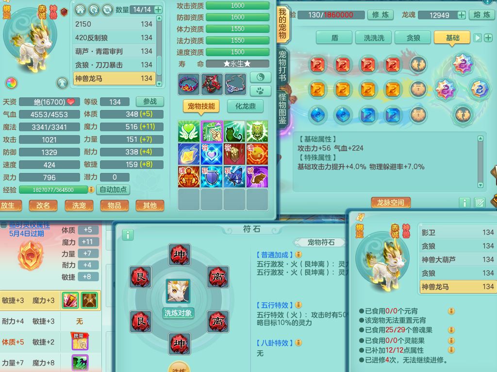 xa10128笑傲江湖129男万兽【潜龙号】精灵歌,1内丹龙4内丹神(1青蛇1龙马)2皮,18只满果子8觉醒7个纯6字,9红,单加Y双红头,706单加狂暴武器,崩山衣服,Y晶清腰带,破甲野兽鞋,愤怒迟滞腰带,仓库回春心神武器,法爆烽火武器,鼎4.0+56+224,2套符石,房屋157,永久外观精灵皮肤,宠排在榜,飞行双人坐骑