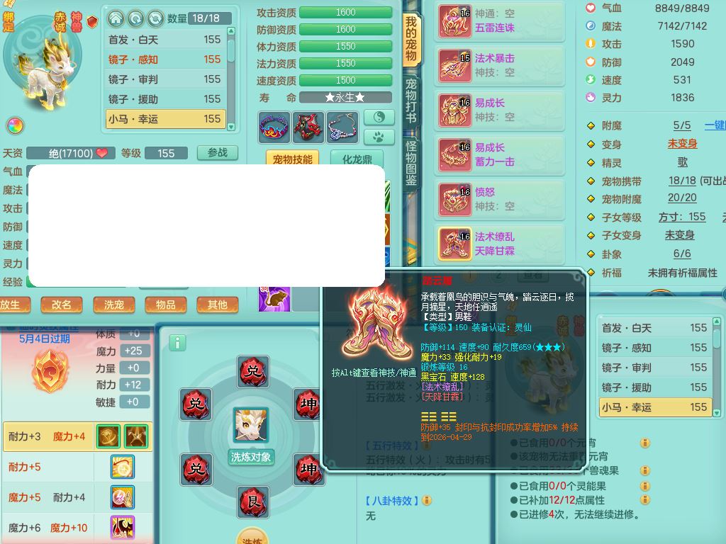jn10130今年勇159男魔王【潜龙号+龙皮+神驹马上发财+暴龙洪荒+火焰之力】精灵歌,4字靓号,7内丹龙1龙皮3内丹神(2龙马1青蛇)3破境3宠皮,3特殊(羽袭/兽决双星/风卷)4镜花灵2龙姬(1胚子)18格子30只满果子16觉醒9个纯6字,8红,单加法爆武器,五雷头,单加Y衣服,264单加Y双红项链,法缭四海鞋,鼎5.5+70+280,160天月卡,庭院166房屋150,永久外观精灵皮肤,宠排在榜,4坐骑(2只双人)