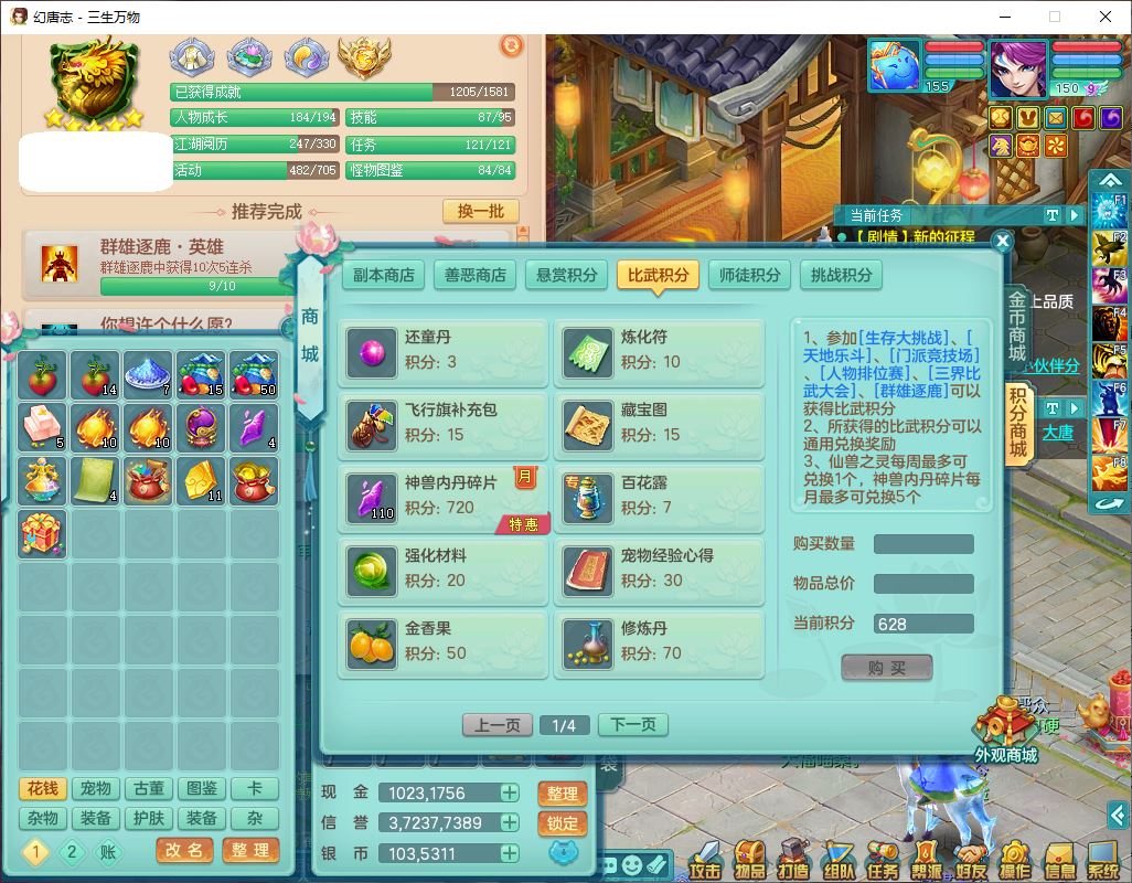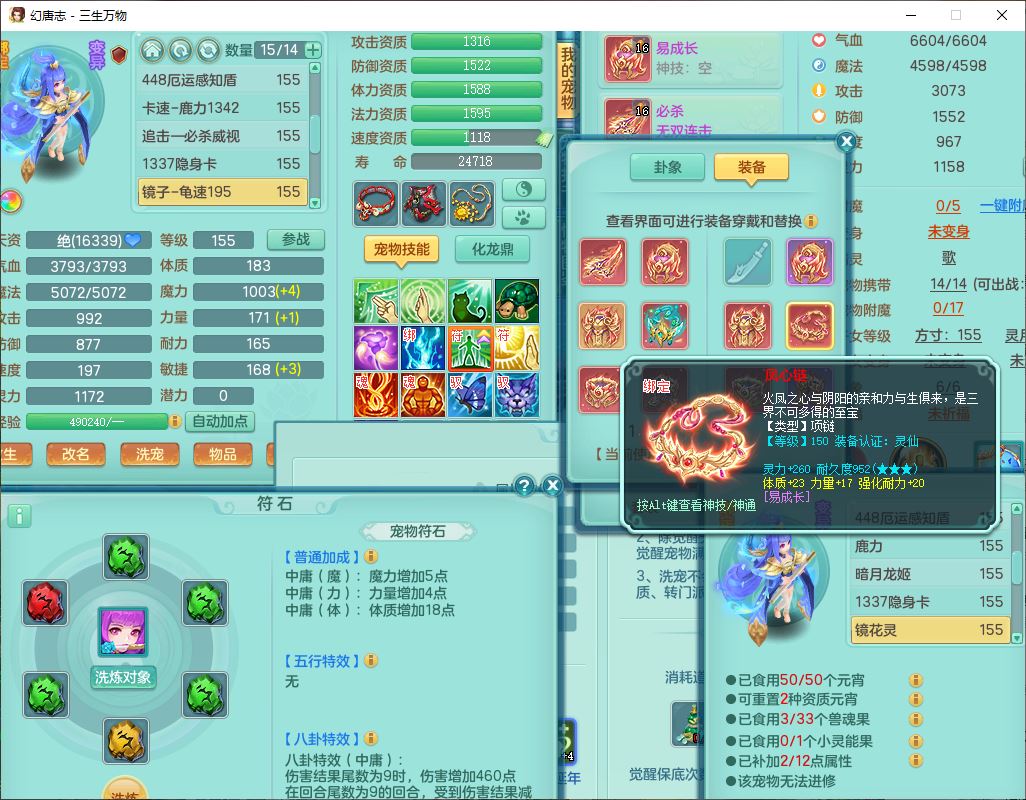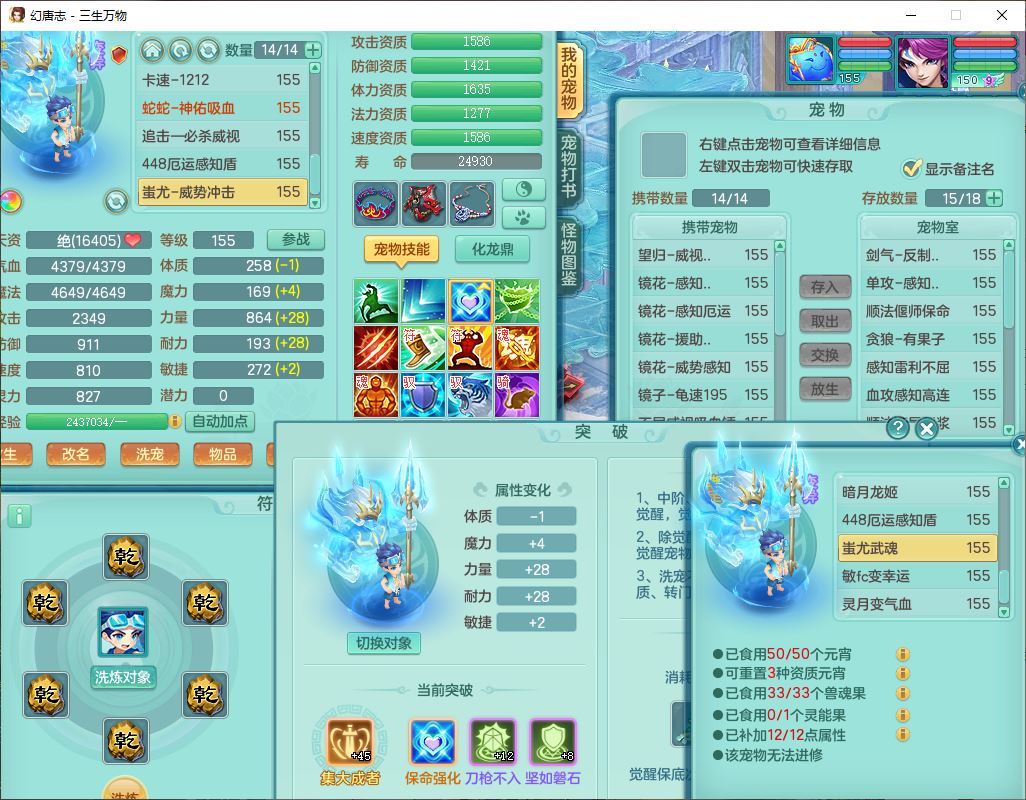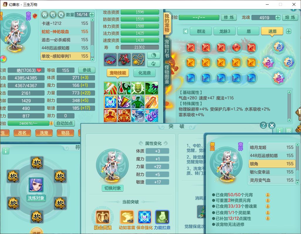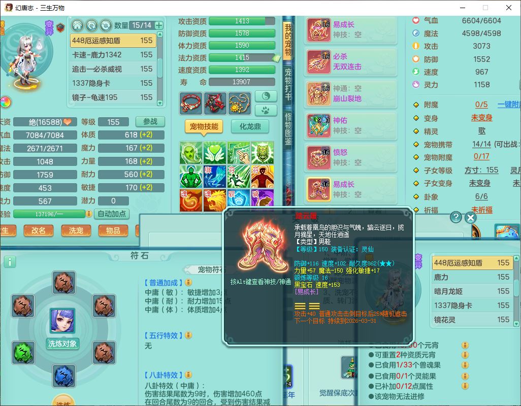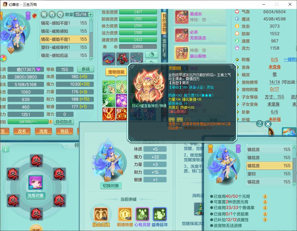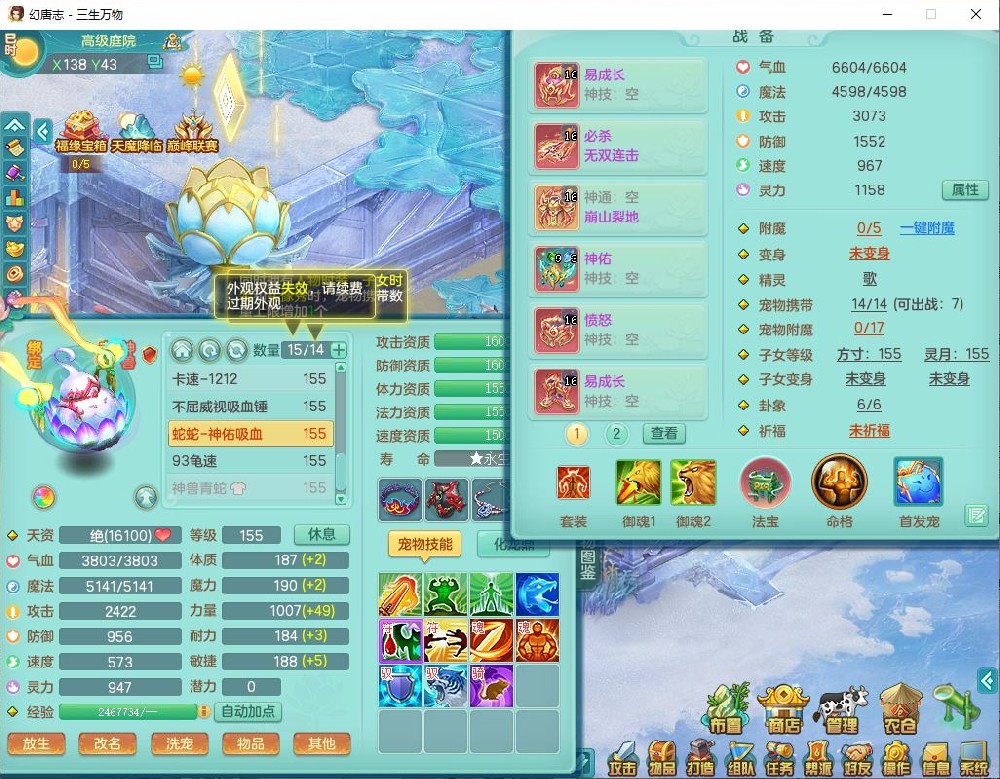 ss10148三生万物159男万兽【暴龙泰坦+马上发财+火焰之力+西瓜冰+潜龙号】精灵歌,1龙(换、无内)2神兽(1青蛇,1无内、带蛇影)1望归5镜花1龙姬,9觉醒3宠皮7六字4四字综合12只满果子,7红装备,必杀破血武器,崩山衣服,有法系装,五雷帽子,260Y项链,法缭鞋子,鼎5.5+70+280,冰晶庭院166房屋174,永久外观、精灵皮肤,103W神武币,1神兽内丹,4坐骑
