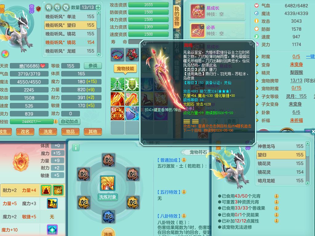 jt10151九天揽月159男万兽精灵歌,满级共鸣,1内丹龙马,2镜花灵1龙姬,4只满果子1觉醒,8红全单加,必杀武器,Y崩山衣服,Y神佑项链,破甲鞋,鼎4.5+70+280,23天月卡