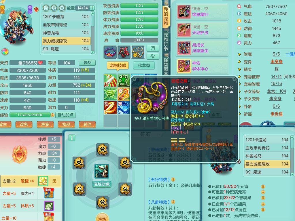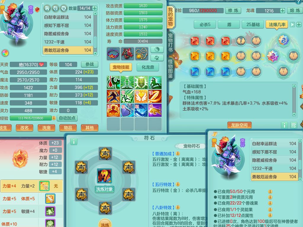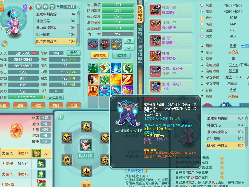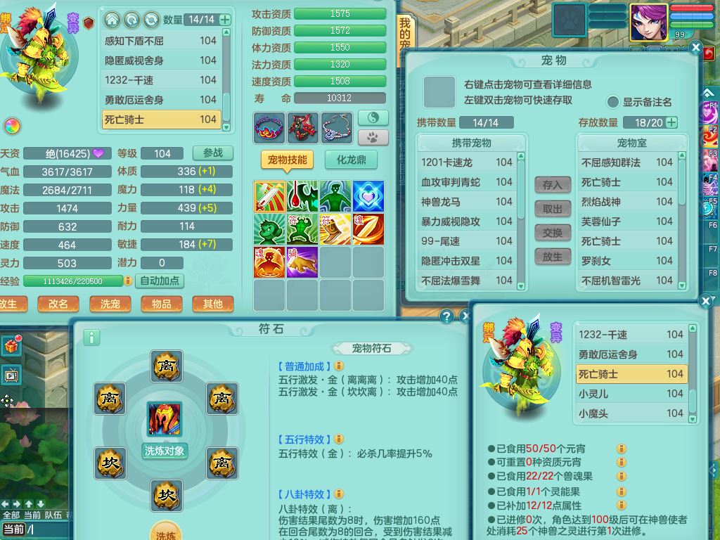 tx10156天下无双99男盘丝【潜龙号】3系精灵,1龙(无内)2神兽(青蛇/龙马,1只无内)2破境,综合23只满果子13觉醒12个纯6字,11红愤怒5特,Y慈航衣服,神佑晶清项链,愤怒Y腰带,Y止戈鞋,鼎2.5+42+168,3套符石,23天月卡,永久头饰精灵皮肤,73内丹碎片,宠排在榜,双人坐骑