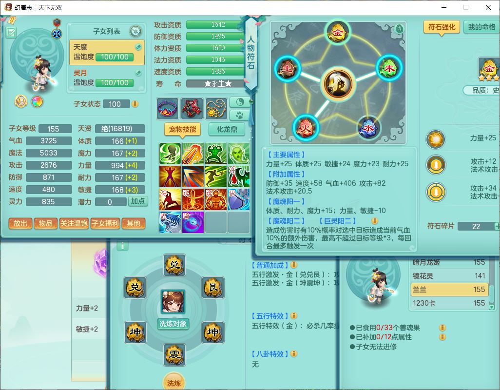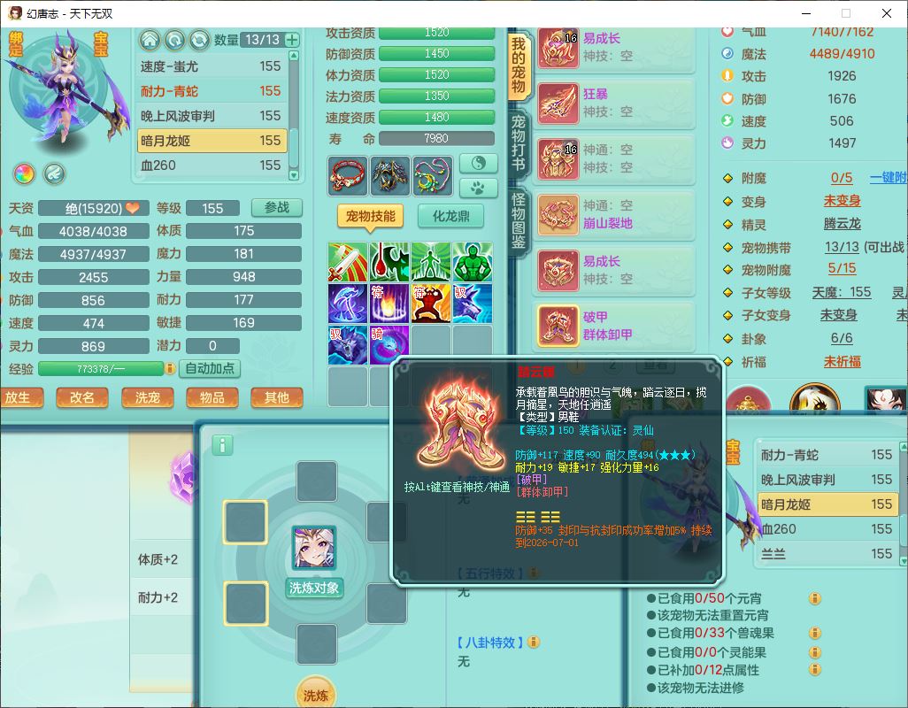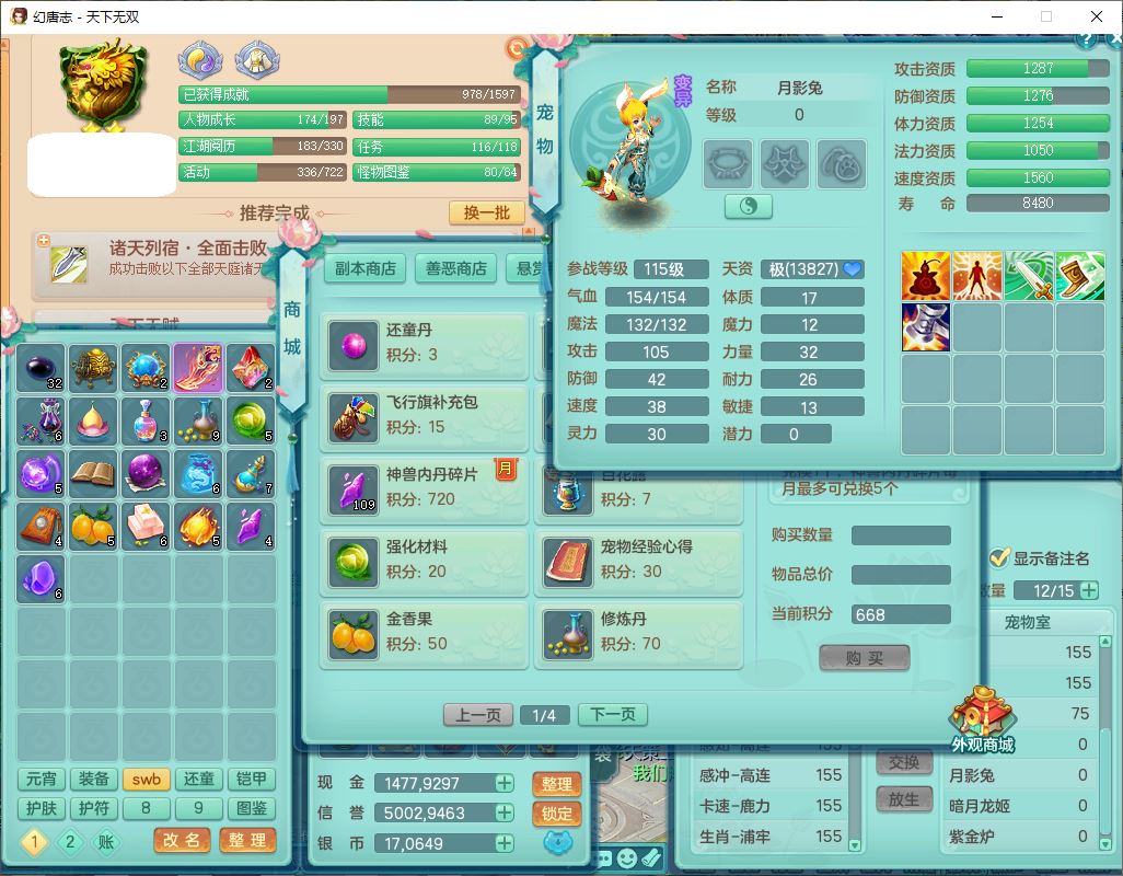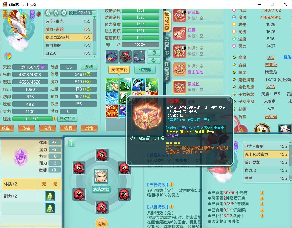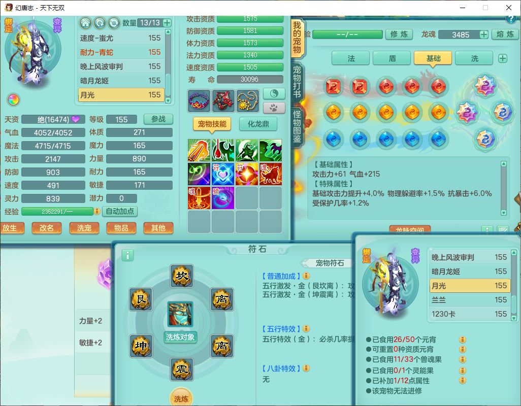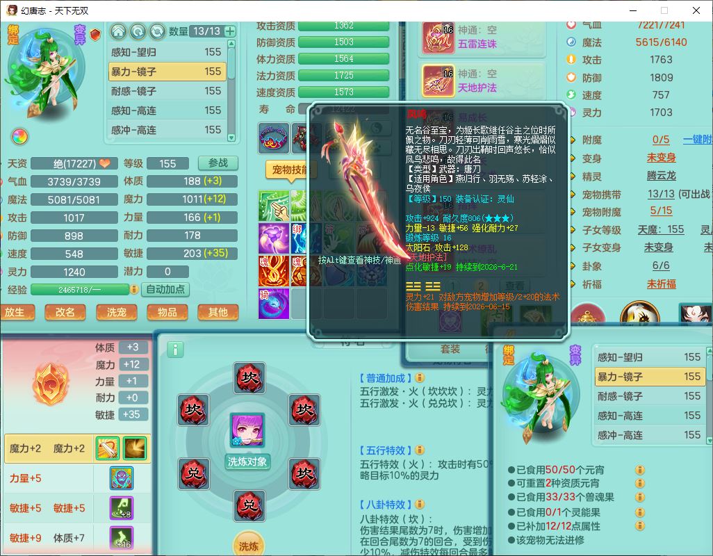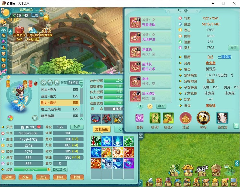 tx10167天下无双159男方寸精灵歌,8字靓号(ABBBBBBA),1内丹青蛇1望归3镜花1龙姬,2觉醒1六字1五字3四字,装备齐全,7红装备,五雷帽子,274Y回生项链,法缭鞋子,一套物理装备,狂暴武器,崩山项链,破甲群体卸甲鞋子,仓库多装备,Y封印精通帽子,幸运坚毅群体卸甲项链,48天月卡,永久头饰、精灵皮肤,2双人坐骑