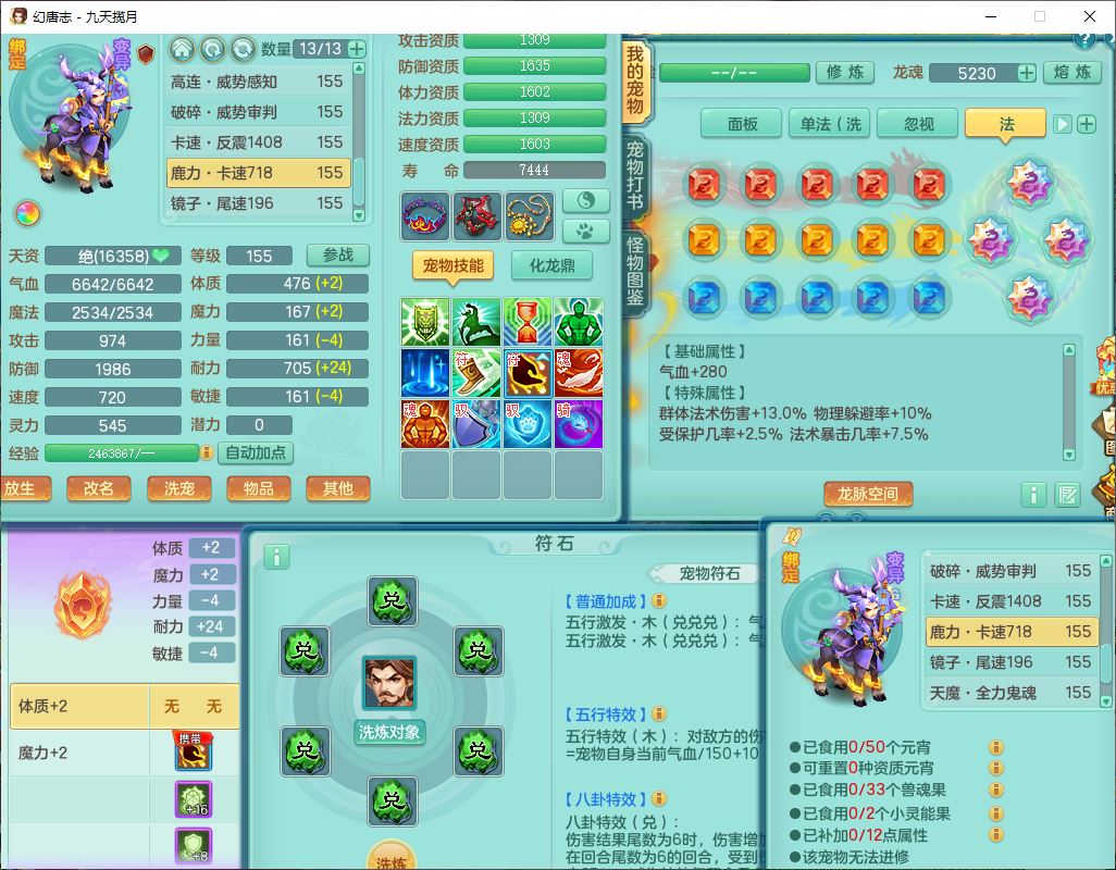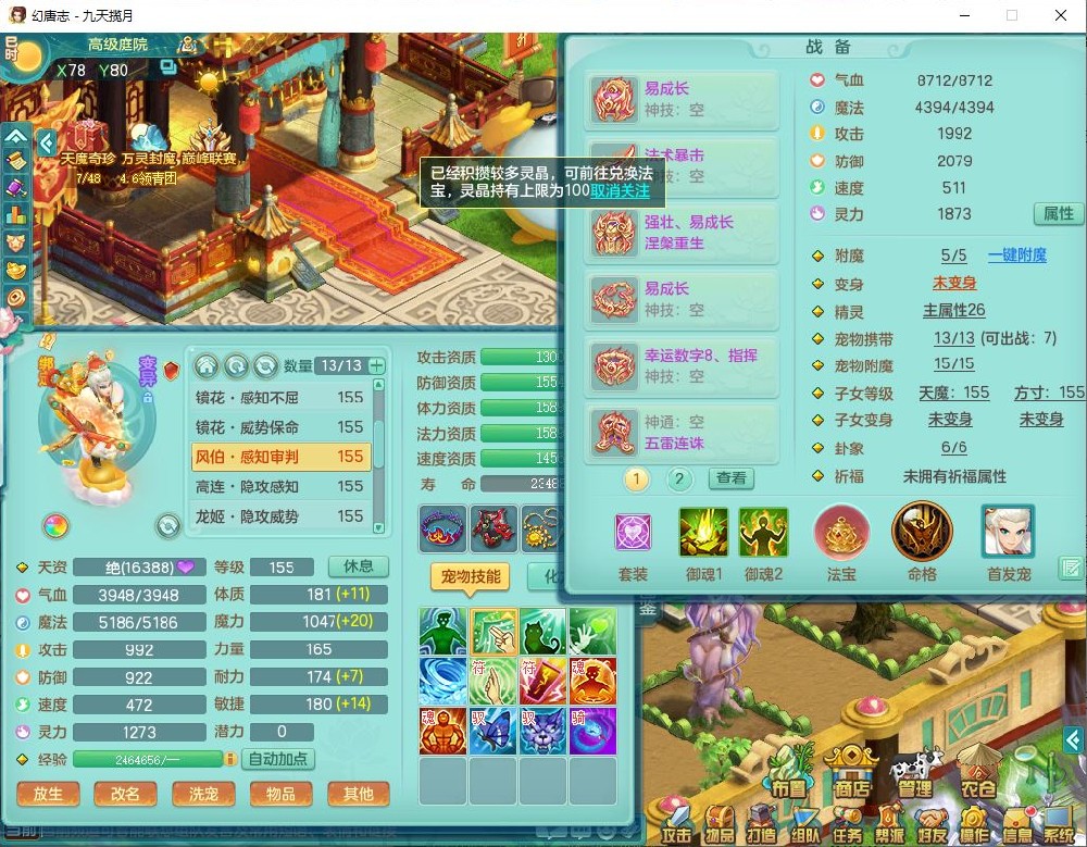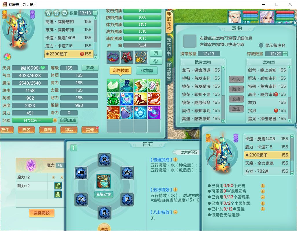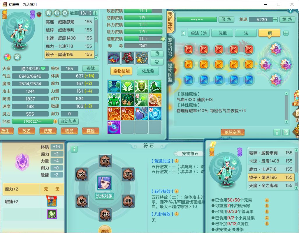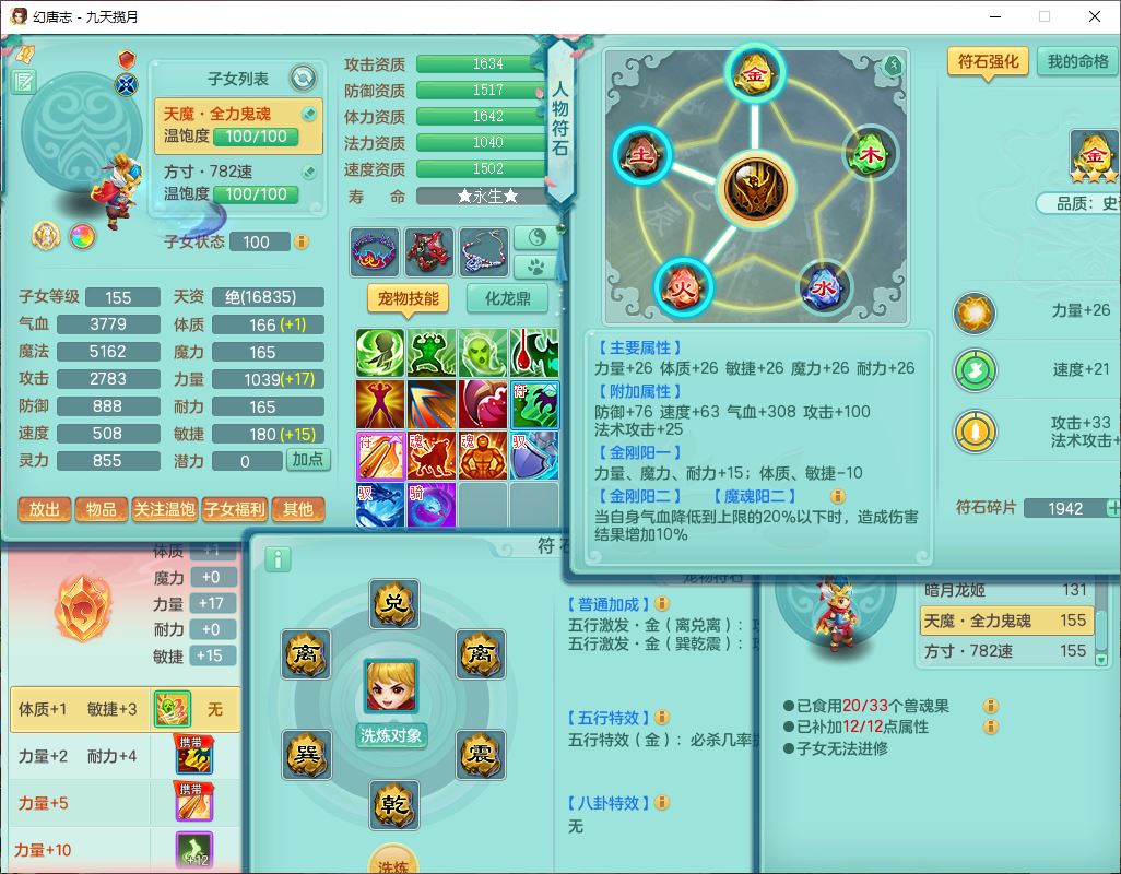 jt10162九天揽月159男魔王【潜龙号+火焰之力】精灵舞,1内丹龙马1望归3镜花1龙姬1特殊(荒古),11觉醒4宠皮8六字3五字8四字综合13只满果子,9红装备,法爆武器,强壮Y慈航衣服,幸运指挥腰带,五雷鞋子,有物理装,坚毅项链,崩山鞋子,鼎6.0+70+280,35天月卡,庭院150,永久头饰、精灵皮肤,24个仙兽灵,15个内丹碎片,1双人飞行坐骑