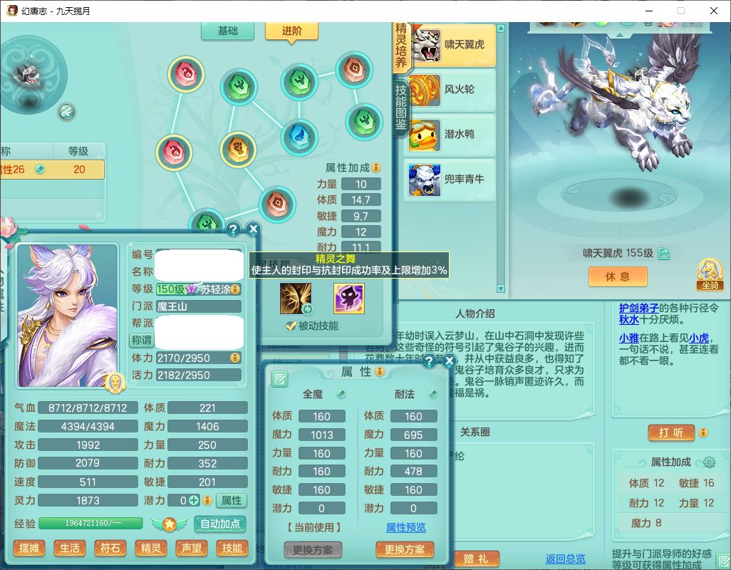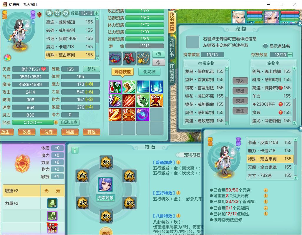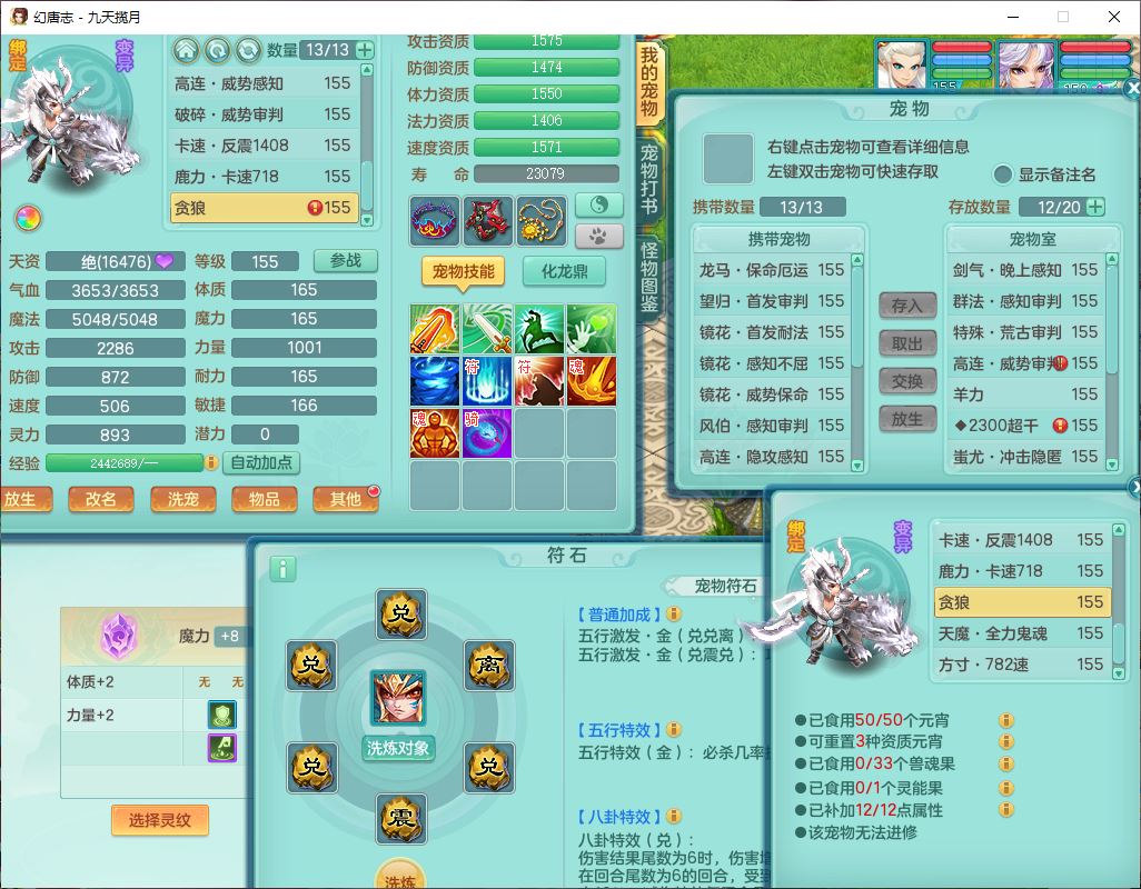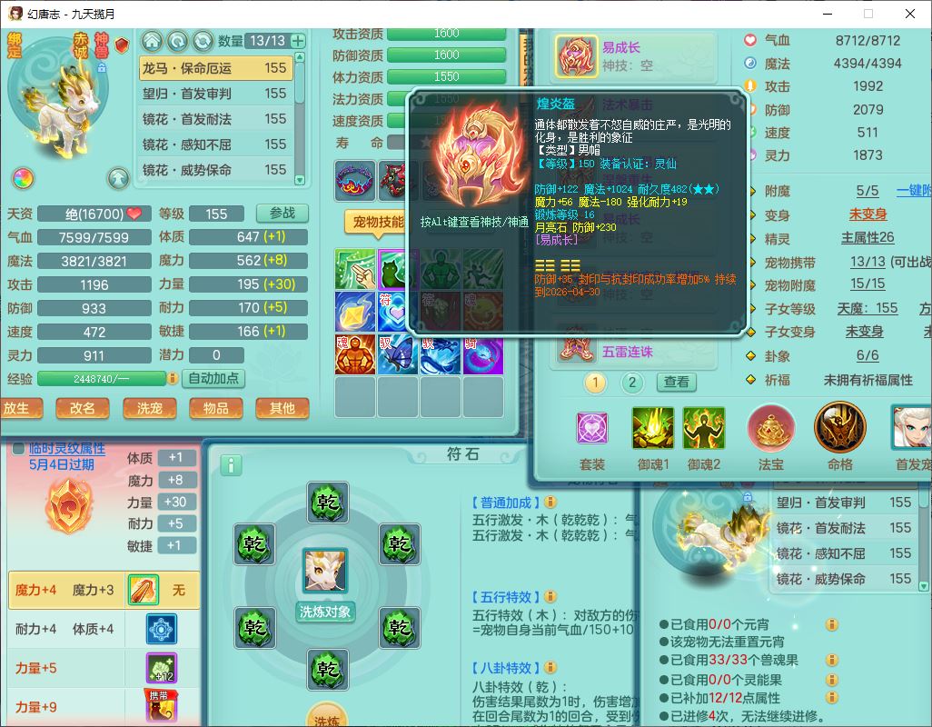 jt10162九天揽月159男魔王【潜龙号+火焰之力】精灵舞,1内丹龙马1望归3镜花1龙姬1特殊(荒古),11觉醒4宠皮8六字3五字8四字综合13只满果子,9红装备,法爆武器,强壮Y慈航衣服,幸运指挥腰带,五雷鞋子,有物理装,坚毅项链,崩山鞋子,鼎6.0+70+280,35天月卡,庭院150,永久头饰、精灵皮肤,24个仙兽灵,15个内丹碎片,1双人飞行坐骑