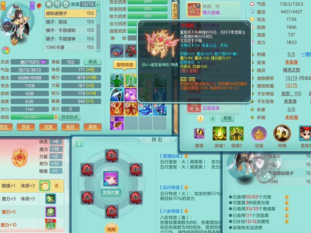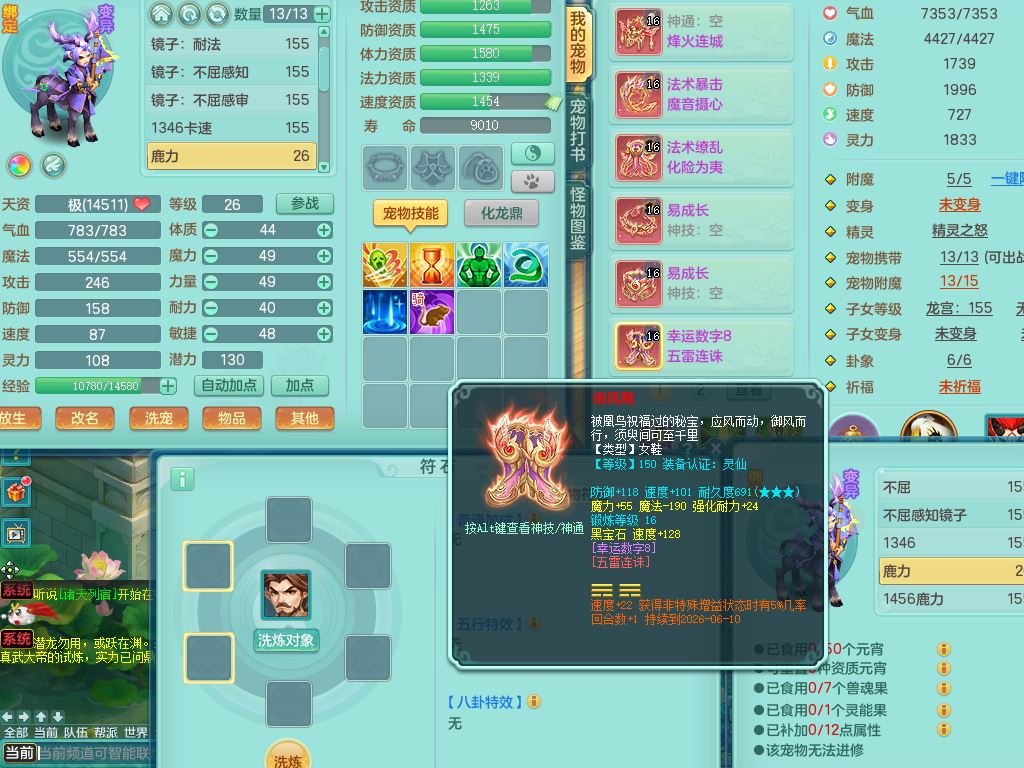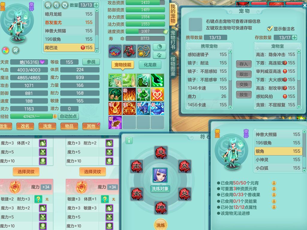 tx10159天下无双159女魔王精灵怒,4镜花灵1龙姬,综合11只满果子8觉醒2个纯6字,9红星辰之拥,法爆绝幻武器,法缭双红衣服,满灵单加Y项链,单加幸运五雷鞋,鼎5.5+70,庭院154房屋164,永久外观精灵皮肤,31仙兽灵34内丹碎片,2坐骑(1只双人)