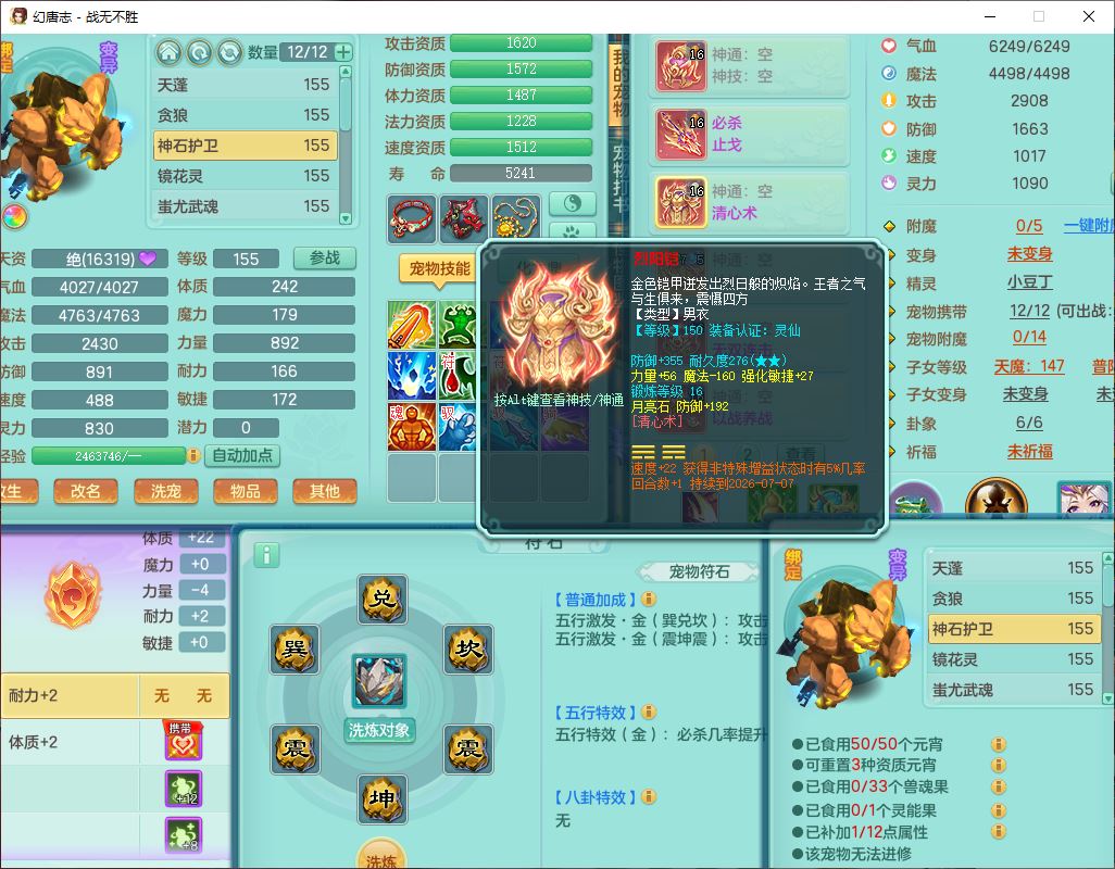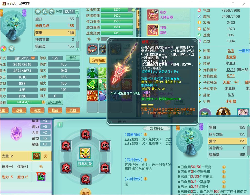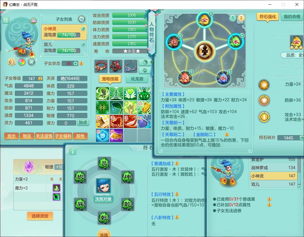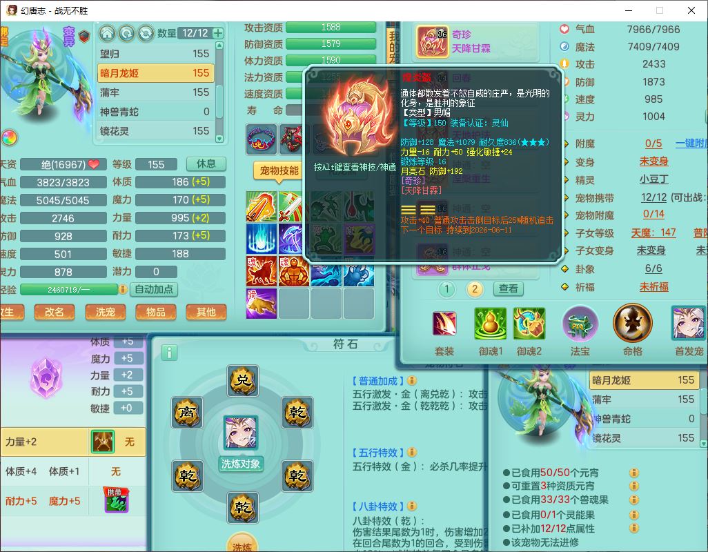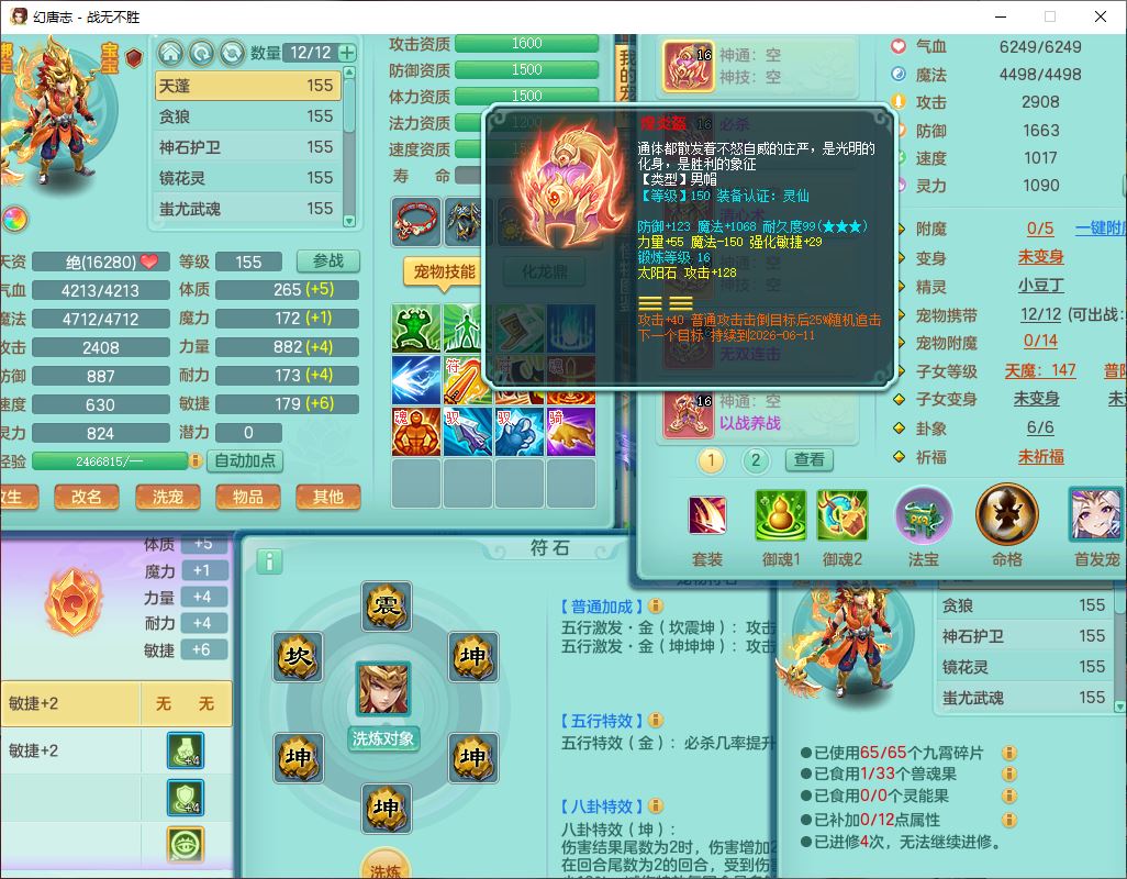 zw10184战无不胜159男五庄20J小精灵,1青蛇(无内)1望归3镜花1神石1龙姬1金炉,1五字7四字,装备齐全,必杀止戈武器,以战鞋子,一套8红辅助装,回春激励武器,鼎4.5,2套符石,1双人坐骑