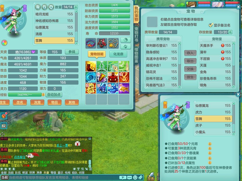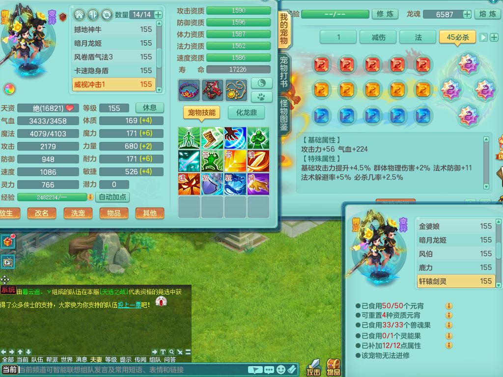 lt10171龙腾九州159男万兽精灵歌,1龙(无内)1内丹青蛇(破境)2特殊(登云/虎虎兽决)3镜花灵1龙姬,11只满果子3觉醒,全身单加,917必杀武器,坚毅四海项链,破甲鞋,鼎5.5,永久外观,12坐骑(1双人)