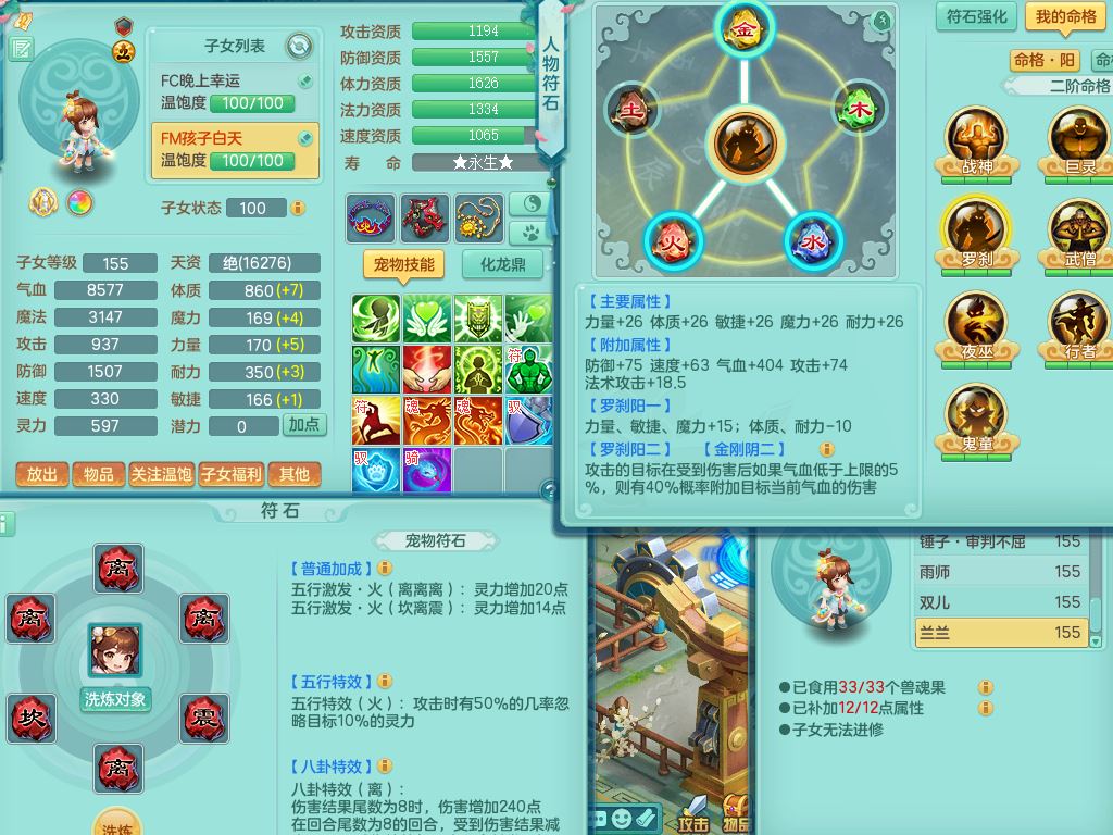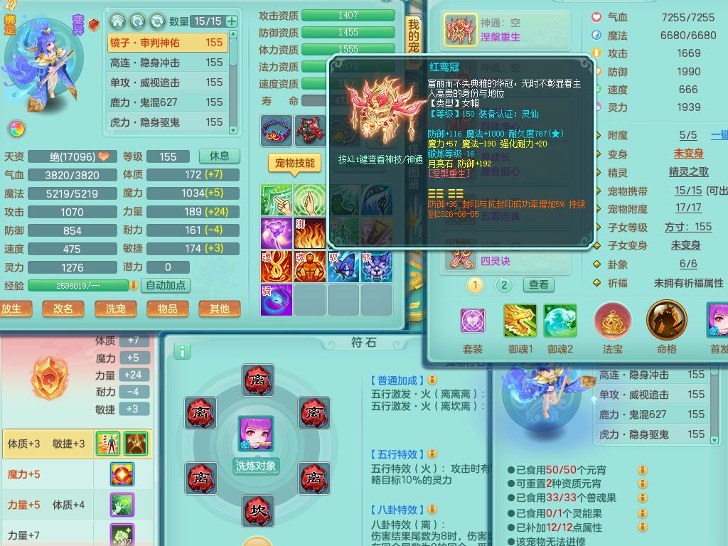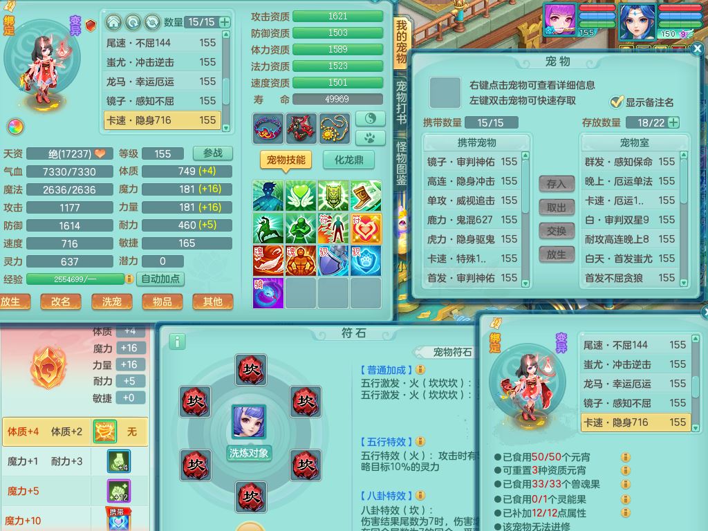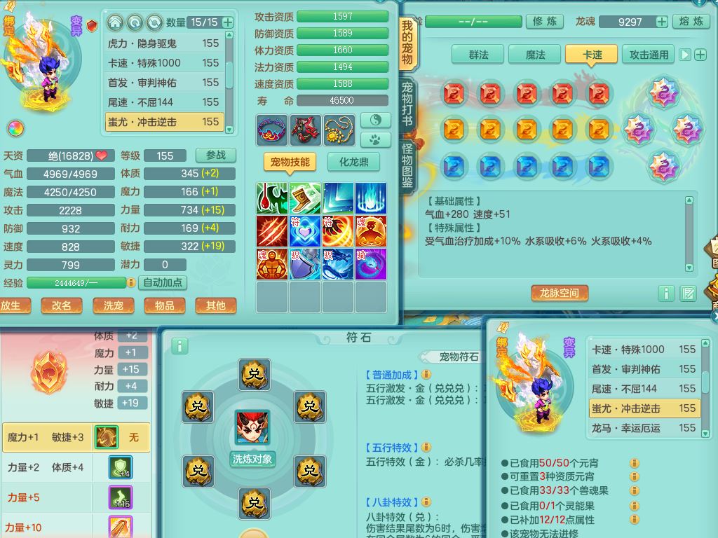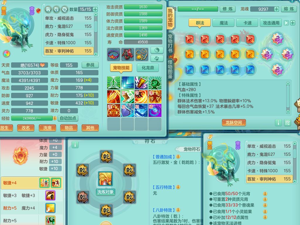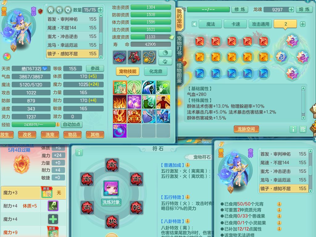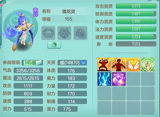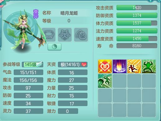 lt10179龙腾九州159女龙宫【潜龙号】精灵歌,2龙(1龙无内)1内丹龙马6特殊(墨守/琴音/双星/月光/怒破/夺命)4镜花灵2龙姬,17只满果子10觉醒7个纯6字,全身单加,Y晶清衣服,262Y绝幻项链,五雷腰带,四灵鞋,鼎5.5+70+280,30天月卡,庭院177房屋188,精灵皮肤,26内丹碎片,宠排在榜,幽狐坐骑