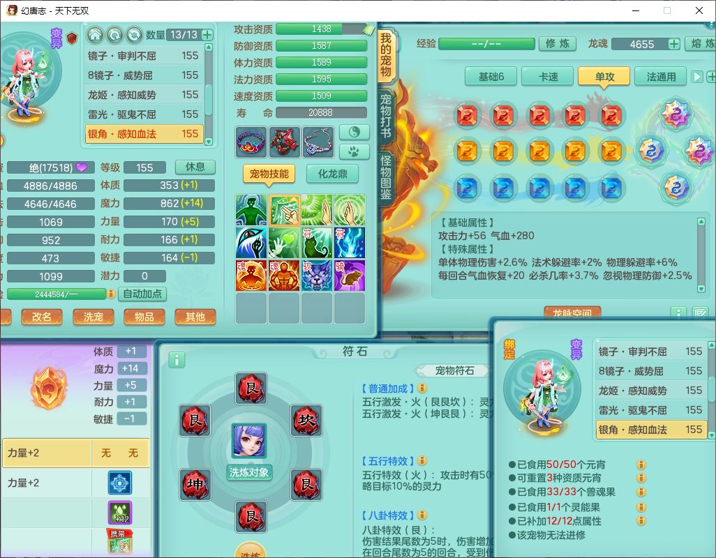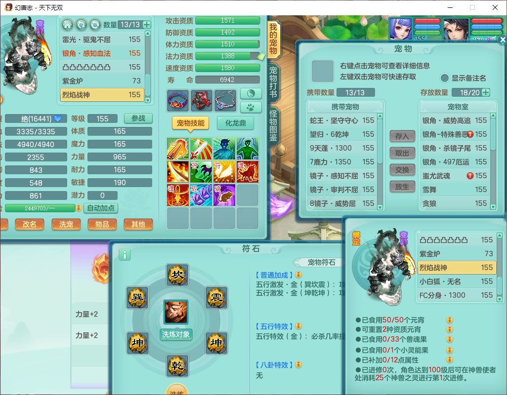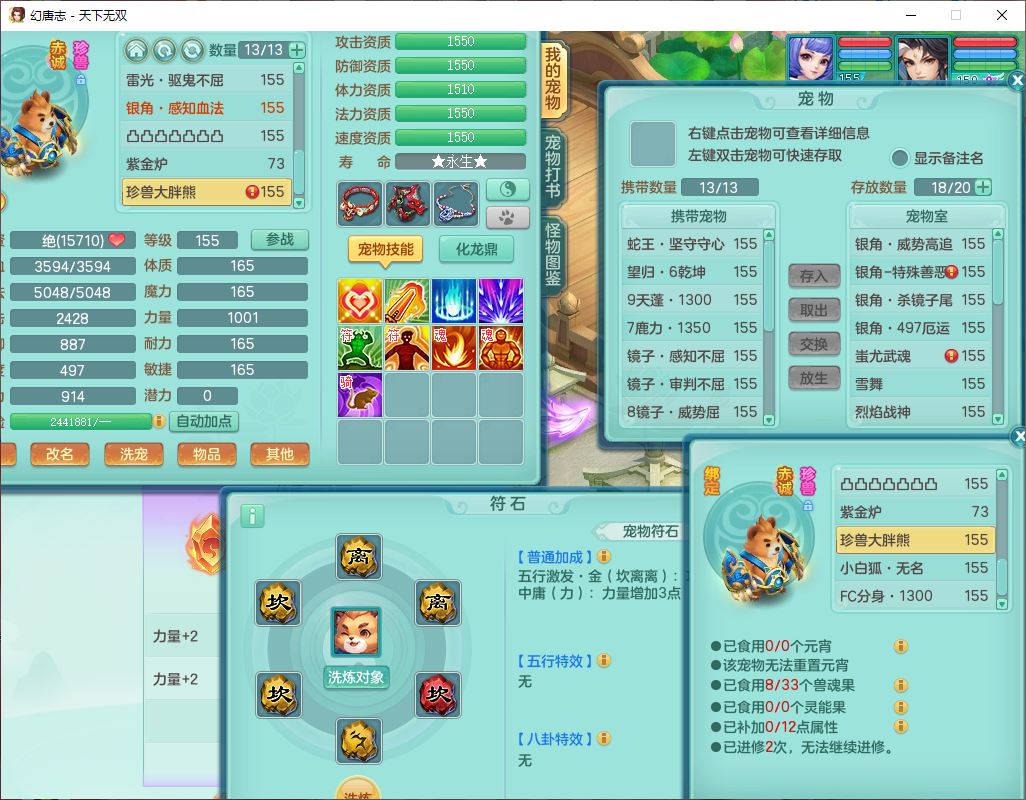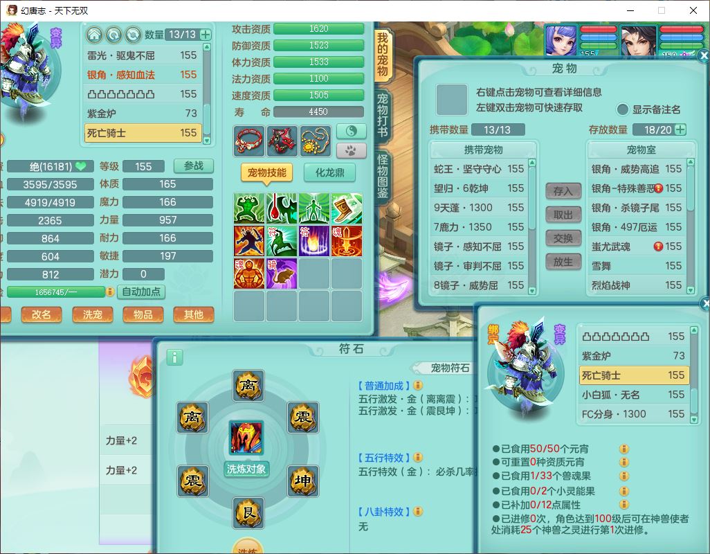 tx10199天下无双159男天宫精灵歌,4位靓号,1内丹青蛇1神兽(无内)1望归3镜花1龙姬1金炉1特殊(善恶),4觉醒1六字2五字7四字综合10只满果子,装备齐全,崩山帽子,930单加Y武器,格挡衣服,神佑项链,仓库法缭衣服,幸运慈航鞋子,鼎6.0+70+280,化龙鼎满足潜龙要求,56天月卡,31个仙兽灵,1双人飞行坐骑