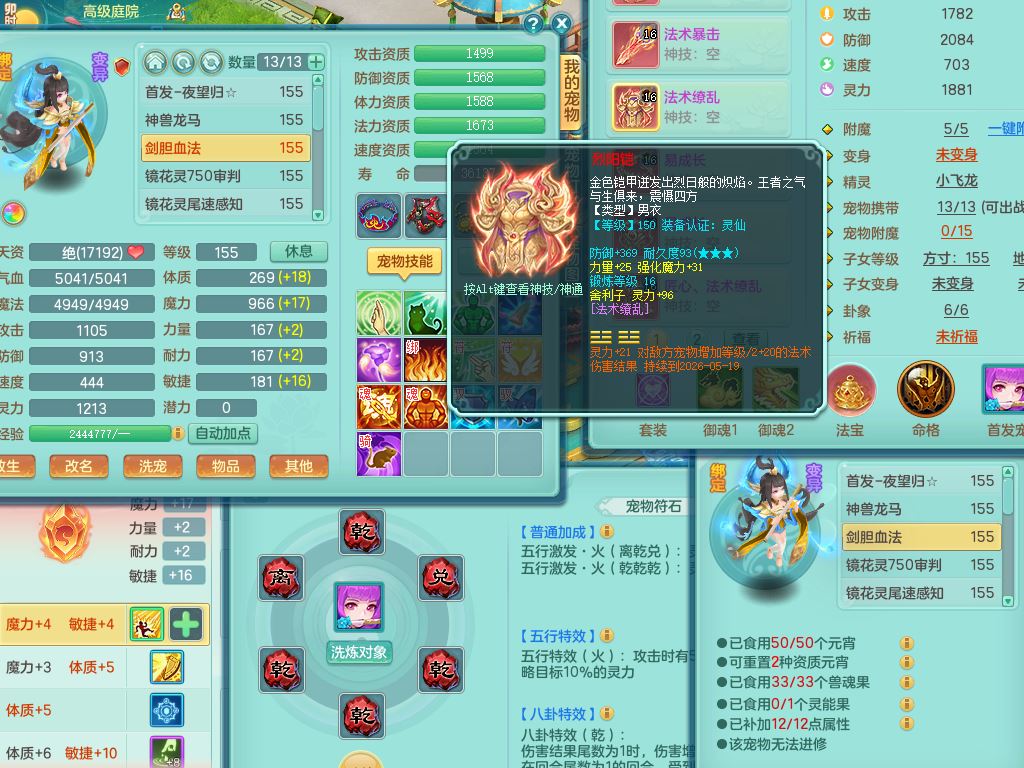 ss10219三生万物159男龙宫【神驹马上发财+火焰之力】精灵舞,5字靓号,1内丹青蛇1龙马无内1特殊(剑胆)5镜花灵(1胚子)1龙姬,综合12只满果子6觉醒,7红双法缭,单加五雷头,单加法爆武器,法缭衣服,271单加Y项链,单加匠心法缭鞋,鼎5.5,辅助震怒5特,回春止戈武器,194天月卡,庭院151,永久外观精灵皮肤,40内丹碎片,3坐骑(2只双人)