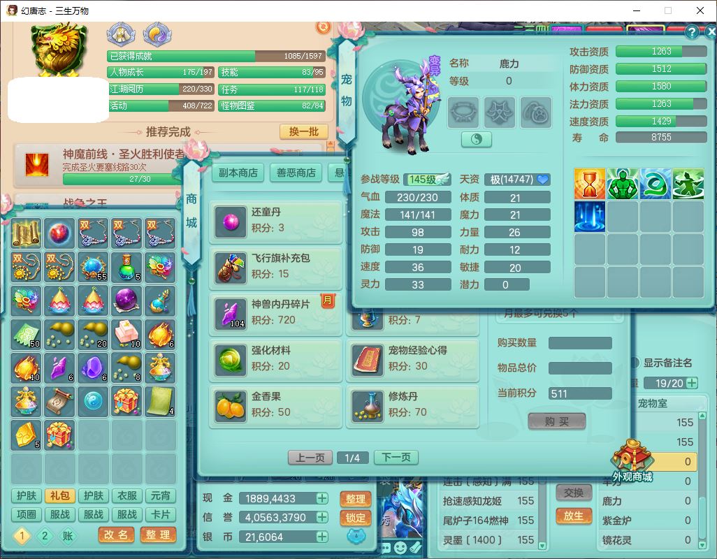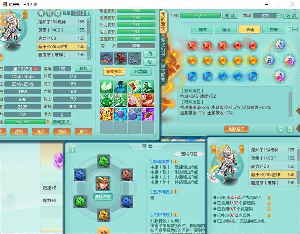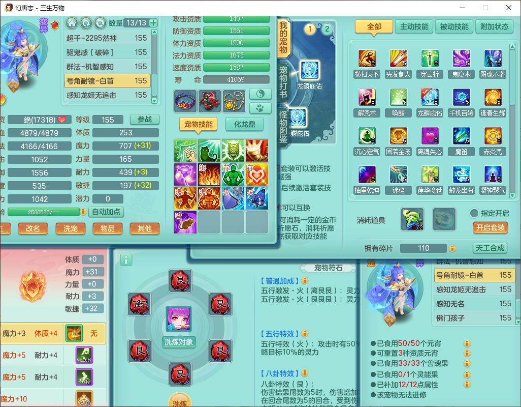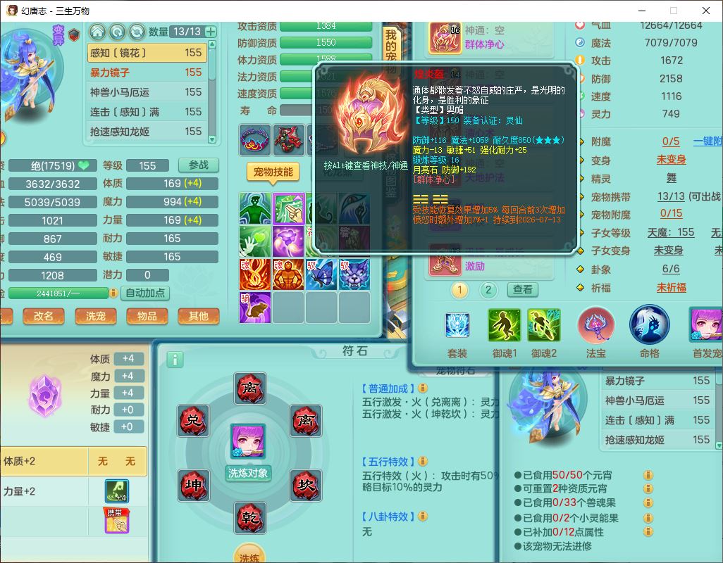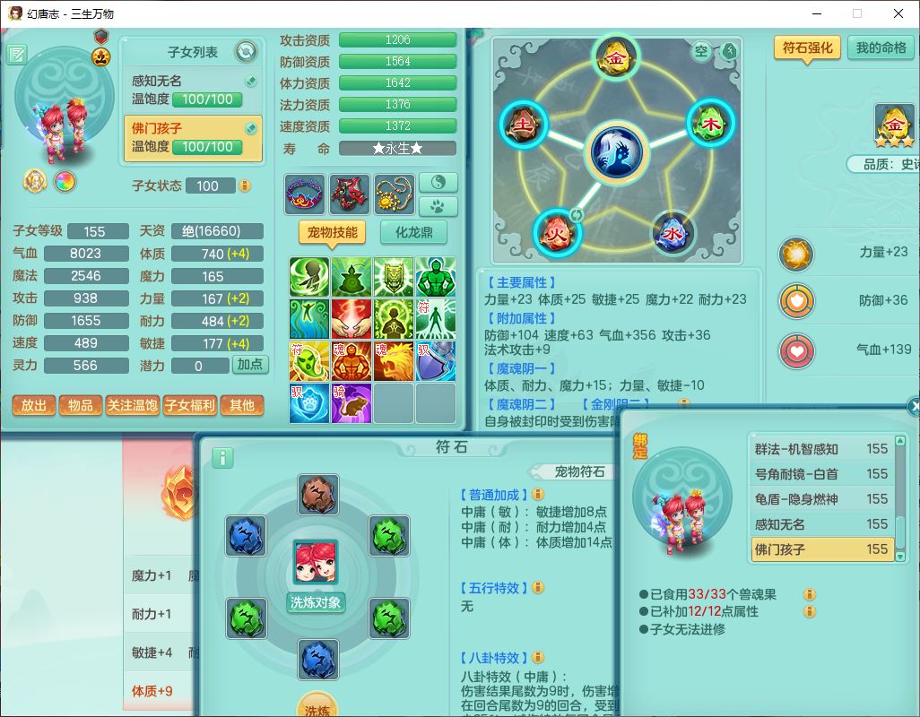 ss10224三生万物159男地府【马到成功+火焰之力】精灵舞,1内丹龙马1望归4镜花2龙姬1金炉2特殊(战争,兽决雷利),4觉醒1五字9四字综合9只满果子,9红星辰之拥装备,格挡水清衣服,迅捷Y激励鞋子,仓库多装备,可搭星辰之拥物理装,破甲破魔帽子,狂暴Y武器,鼎5.0+70,183天月卡,庭院148房屋150,永久外观、精灵皮肤,55个仙兽灵,1双人飞行坐骑