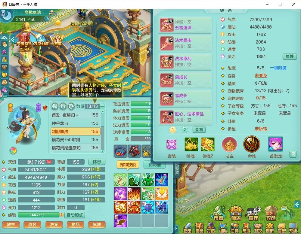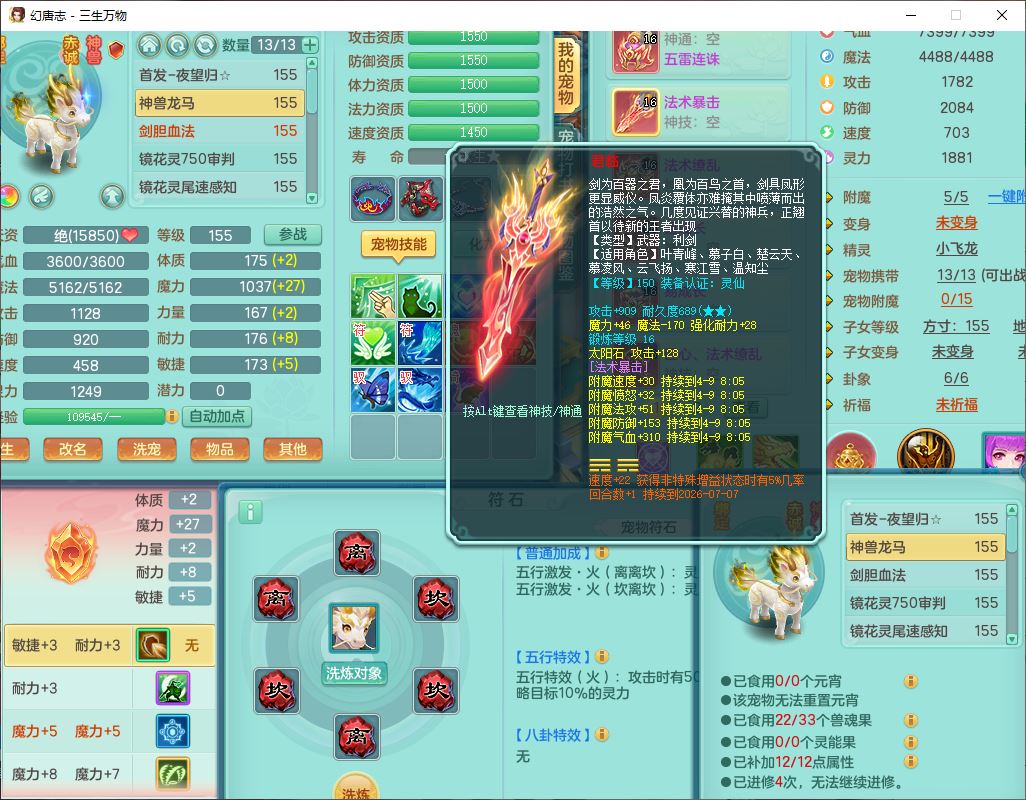 ss10225三生万物159男龙宫【马上发财+火焰之力】精灵舞,5位靓号,1内丹青蛇1龙马(无内)1望归1特殊(剑胆)5镜花1龙姬1金炉,6觉醒1五字6四字综合12只满果子,7红双法缭装备,五雷帽子,法爆武器,法缭衣服,匠心法缭鞋子,271单加Y项链,一套7红辅助装,回春止戈武器,鼎5.5,194天月卡,庭院151房屋148,永久外观、精灵皮肤,40个内丹碎片,2双人坐骑(1飞行)