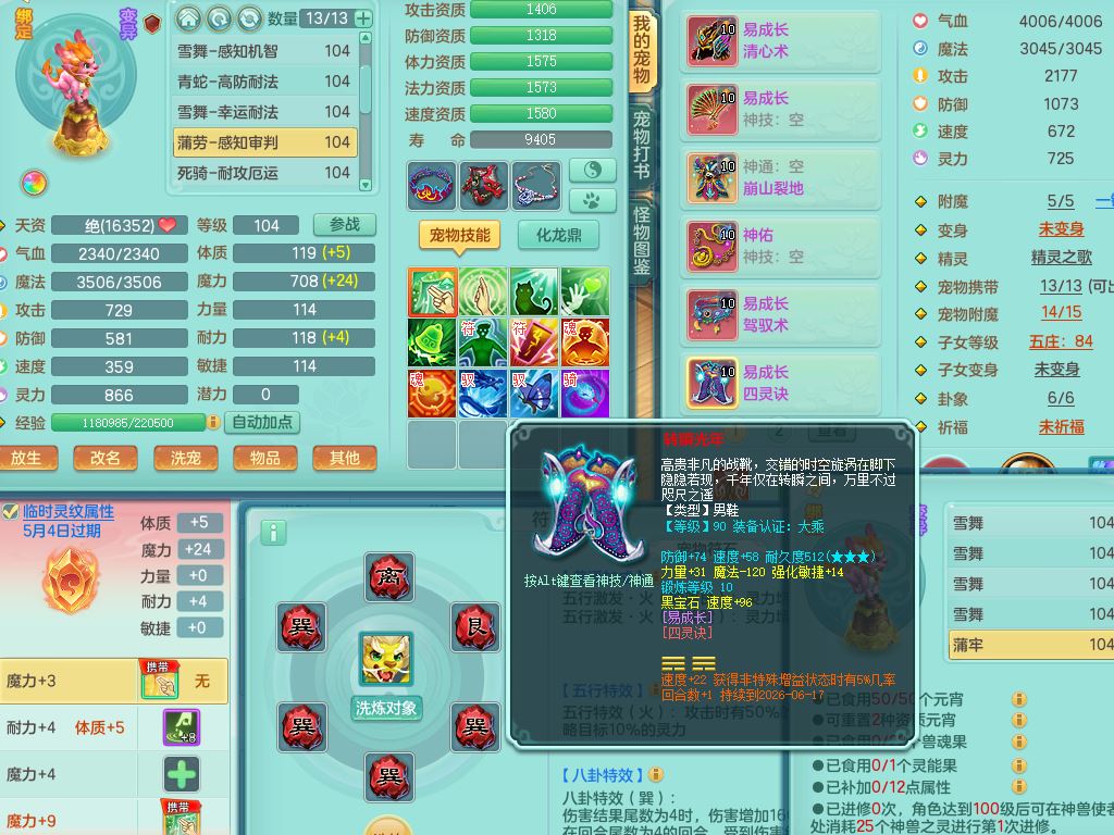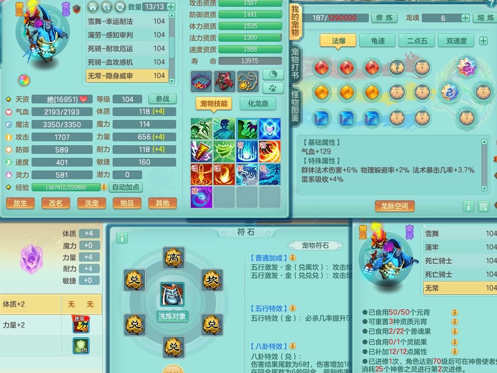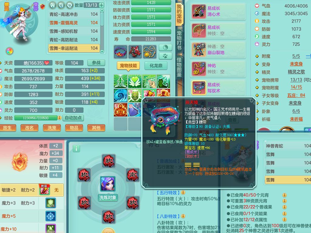 tx10230天下无双99男万兽全力精灵,满级共鸣,1内丹青蛇,9只满果子6觉醒2个纯6字,549单加Y武器,Y水清头,崩山衣服,神佑项链,单加Y双红腰带,单加Y双红鞋,仓库幸运五雷衣服,法缭水清鞋,愤怒双红腰带,鼎2.5,52内丹碎片