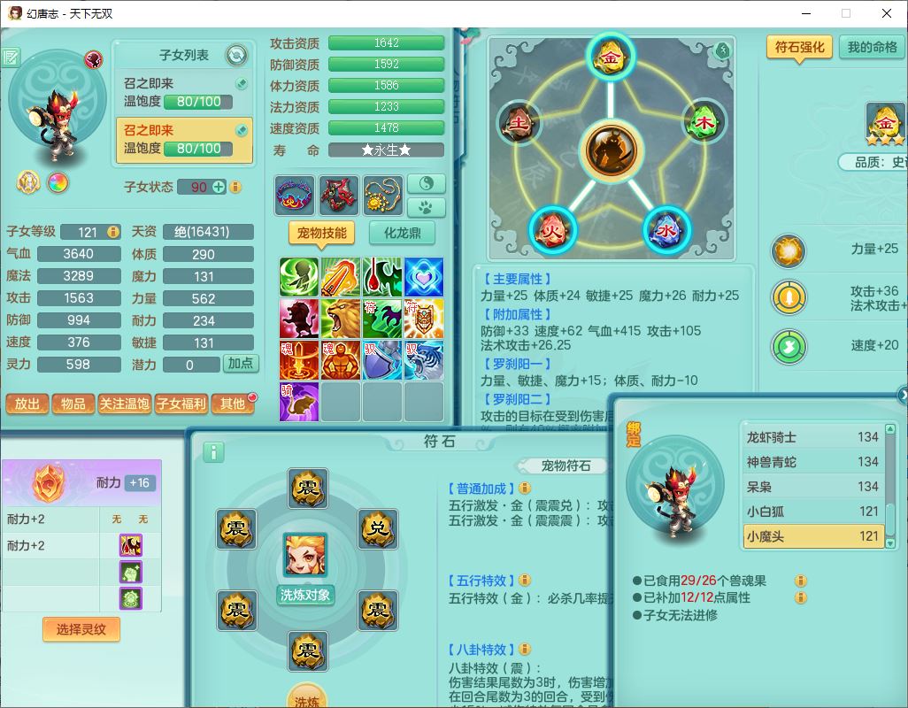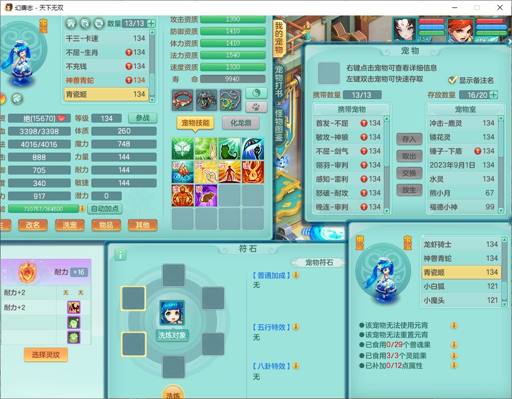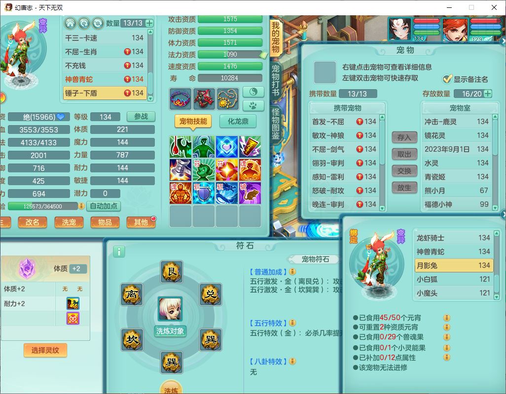 tx10236天下无双129男天策精灵歌,1青蛇(无内)2贪狼1羽袭,3觉醒1六字1五字4四字,宝宝种类齐全,10红装备,Y水清帽子,Y狂暴破血武器,崩山衣服,愤怒Y腰带,鼎4.0,33个内丹碎片,7个仙兽灵,1双人飞行坐骑