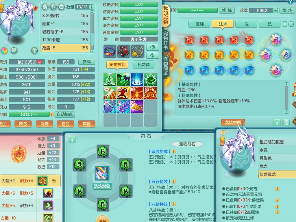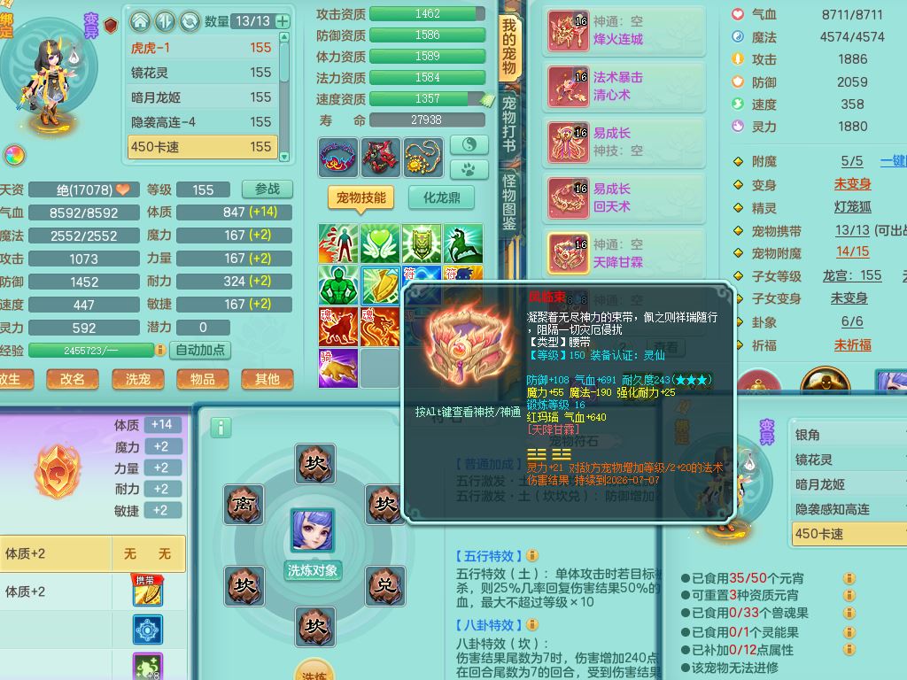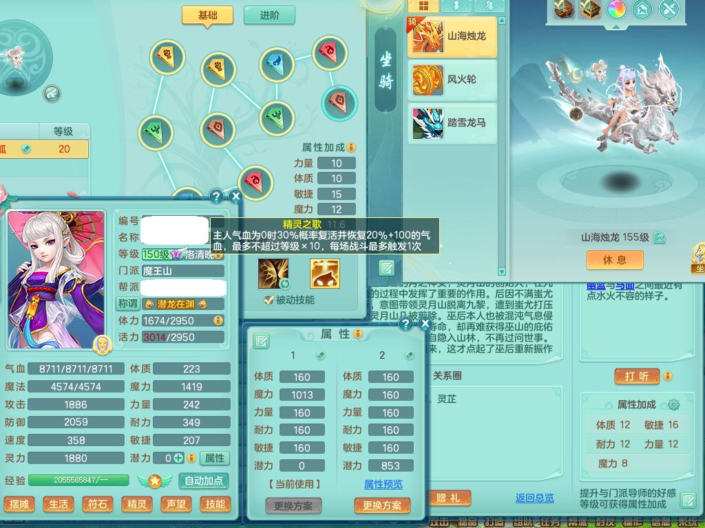jt10250九天揽月159女魔王【潜龙号】精灵歌,1龙(无内)4特殊(虎虎/影袭/兽决焚心/荒古)2镜花灵1龙姬,13只满果子8觉醒7个纯6字,全身单加,法爆水清武器,256Y双红项链,鼎5.0+70+280,17天月卡,永久头饰精灵皮肤,34内丹碎片,飞行烛龙坐骑,带3个150奶粉