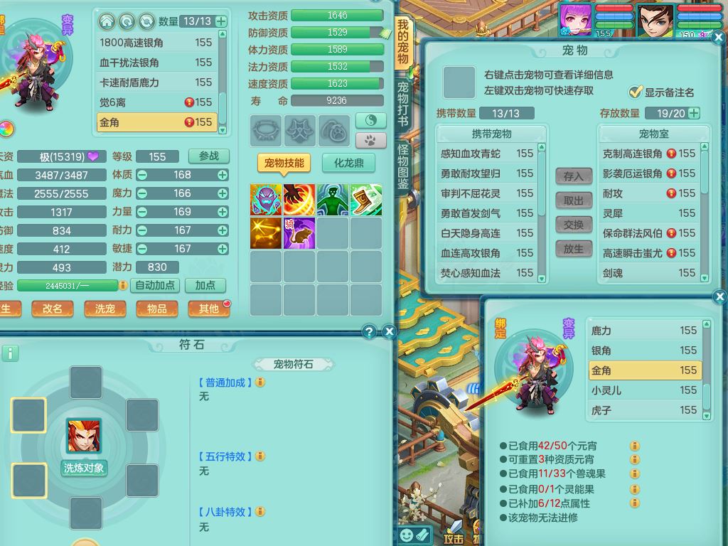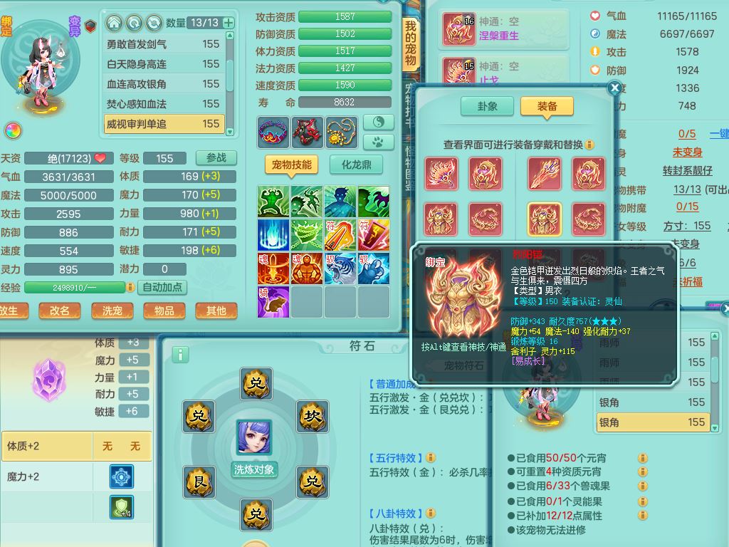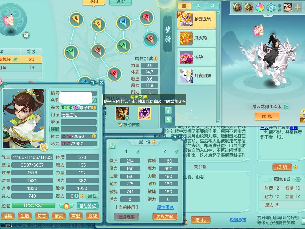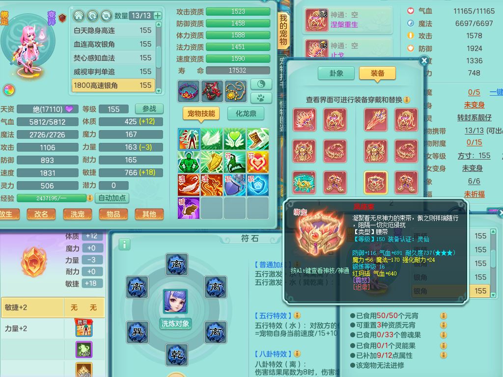 rj10262任剑逍遥159男方寸精灵舞,1内丹青蛇3特殊(焚心/影袭/藕断兽决)11只满果子5觉醒2个纯6字,愤怒5特,单加愤怒Y腰带,法系单加法爆武器,单加Y衣服,253单加Y项链,鼎5.5,2套符石,永久头饰,双人坐骑