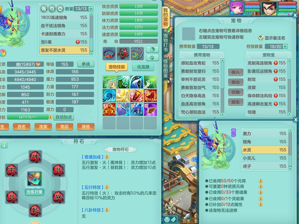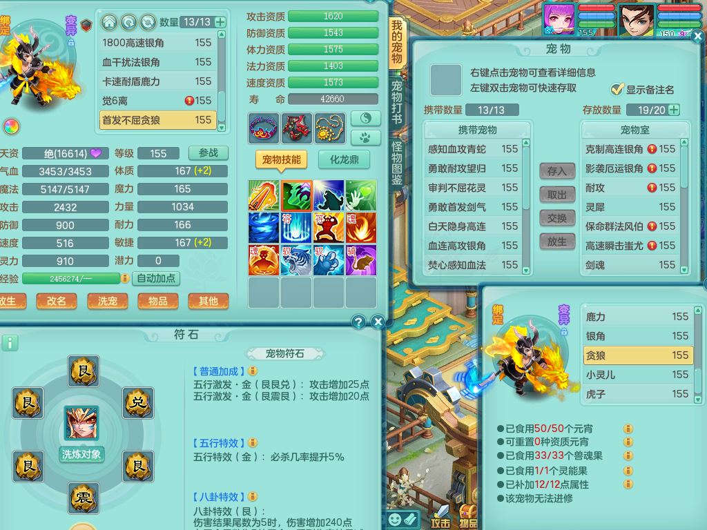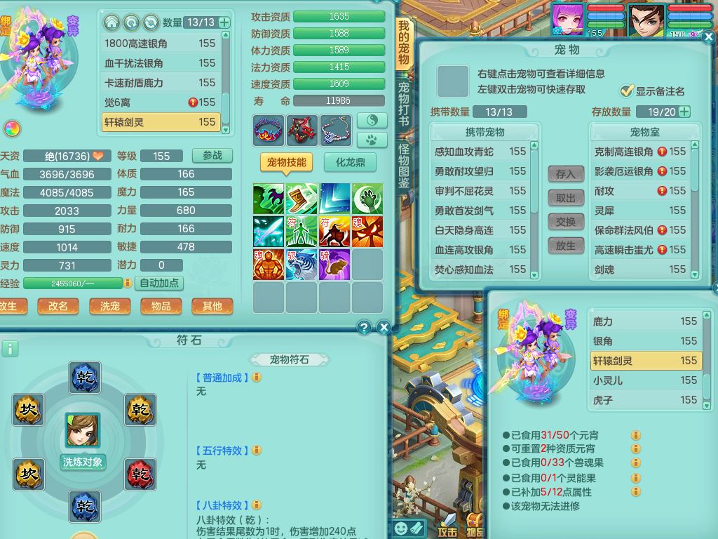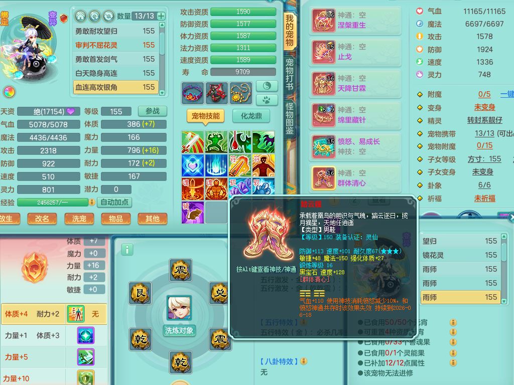 rj10262任剑逍遥159男方寸精灵舞,1内丹青蛇3特殊(焚心/影袭/藕断兽决)11只满果子5觉醒2个纯6字,愤怒5特,单加愤怒Y腰带,法系单加法爆武器,单加Y衣服,253单加Y项链,鼎5.5,2套符石,永久头饰,双人坐骑