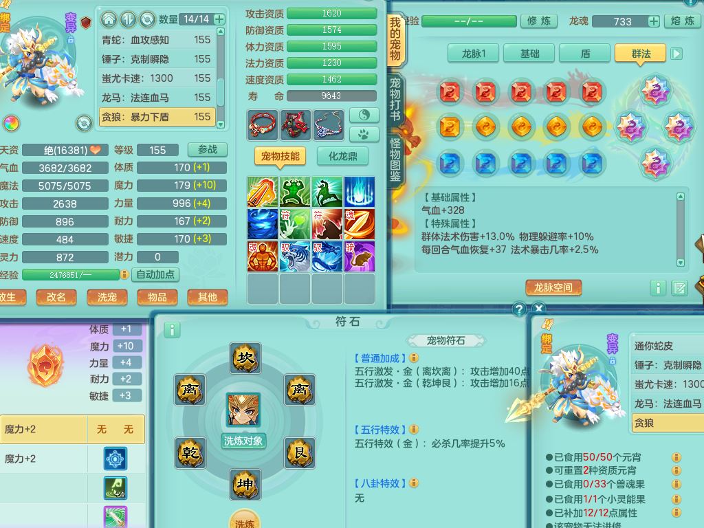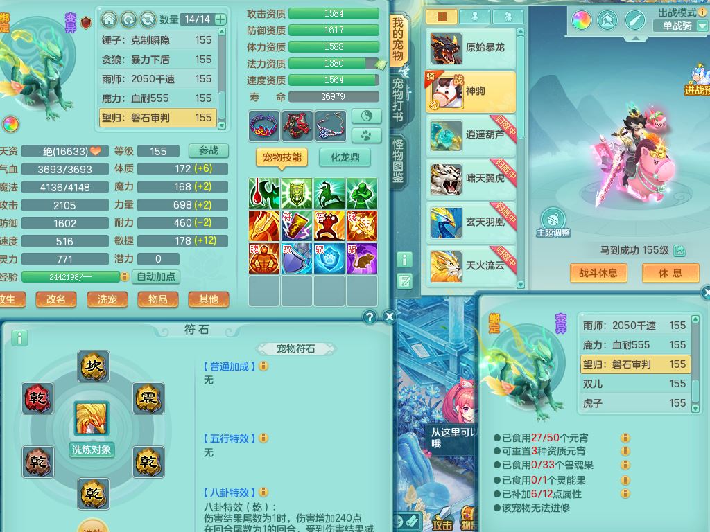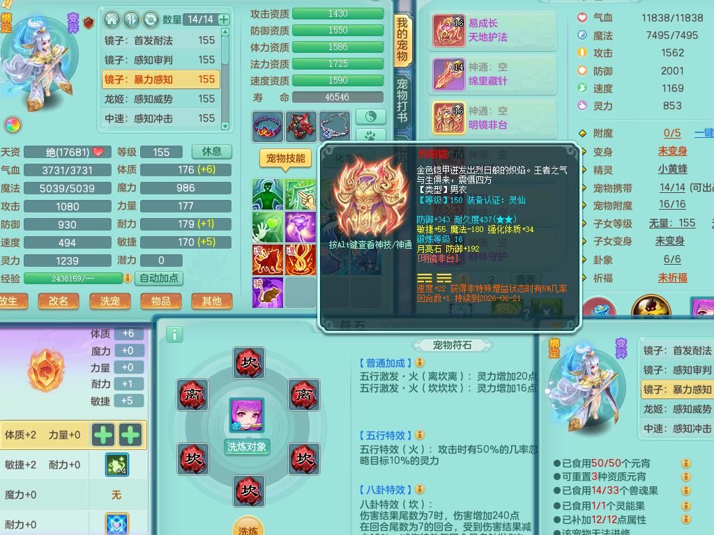 fh10285风华绝代159男普陀【神驹马到成功+暴龙逍客+火焰之力、西瓜冰】精灵舞,2套星穹,3内丹龙2内丹神(1龙马)9皮(1幻灵果)4镜花灵2龙姬,11只满果子6觉醒1个纯6字,愤怒5特,Y罗汉头,单加法爆烽火武器,法爆五雷武器,256单加Y项链,封印止戈头,鼎4.5,94天月卡,冰晶庭院227房屋203,永久外观精灵皮肤,19内丹碎片,14只坐骑(7只双人)