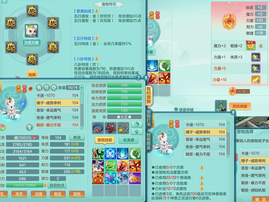 S22189锦绣河山99男万兽,1龙没内,2内胆神,6只觉醒,547易成长单加33武器,崩山衣服,神佑笑里单加项链,易成长破血单加鞋子,有550狂暴蓄力一击单加34武器,三红指挥易成长真元单加34腰带,2.5基础鼎,1个纯六字,2个五字,17只满果子,宠排在榜,双人坐骑,仓库29神兽内胆碎片。