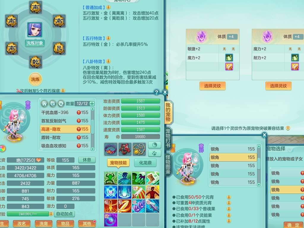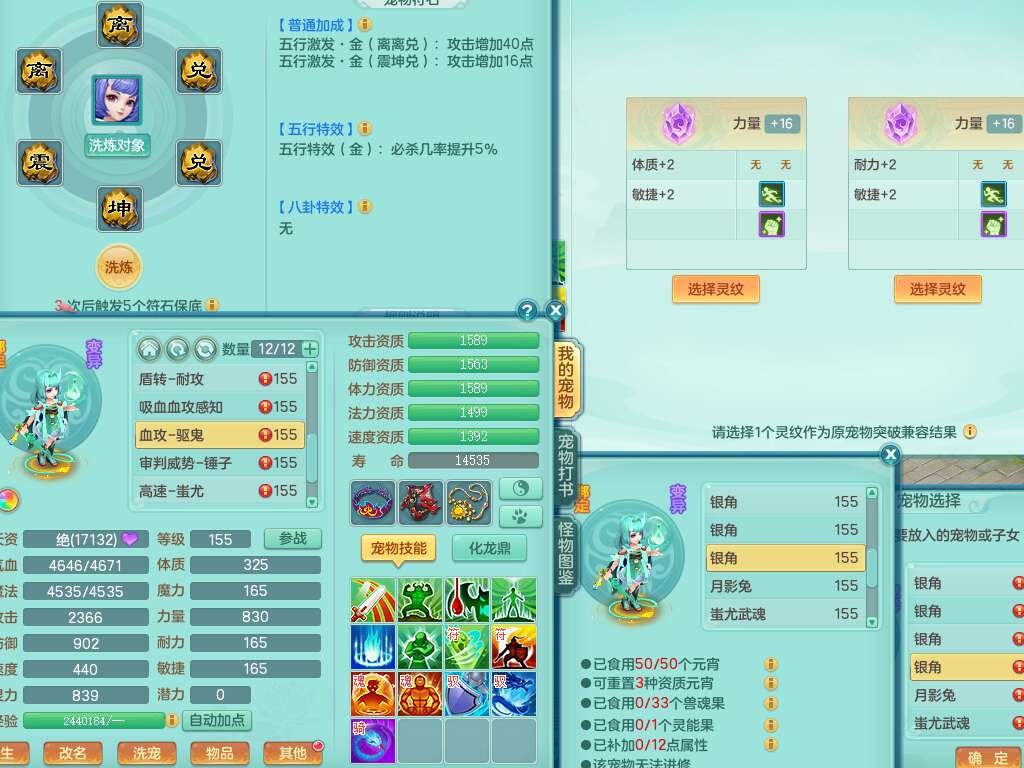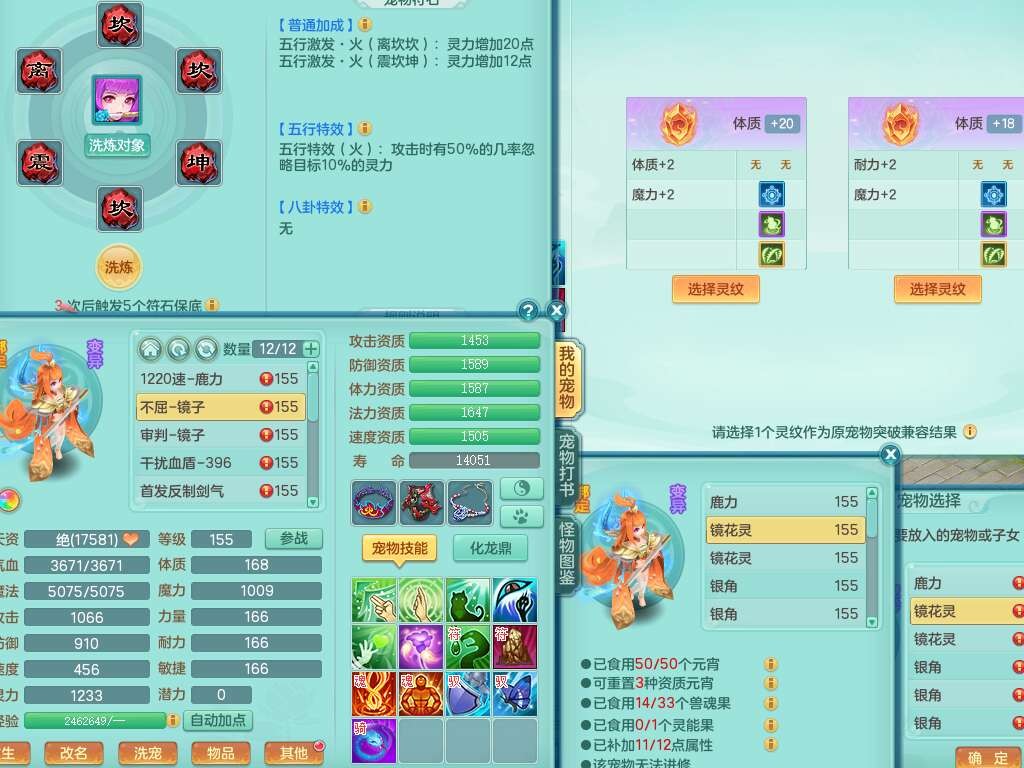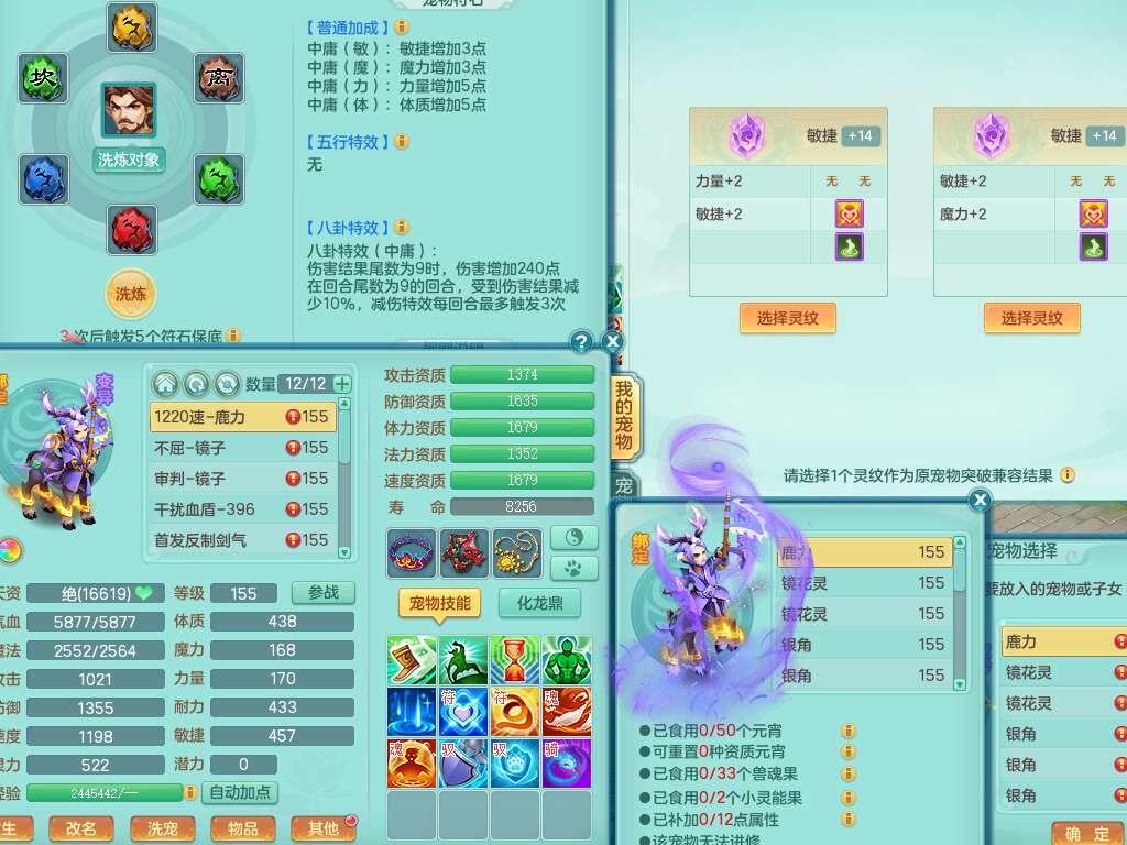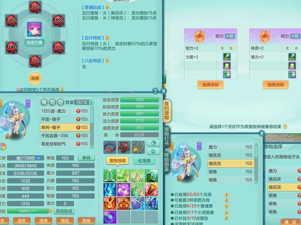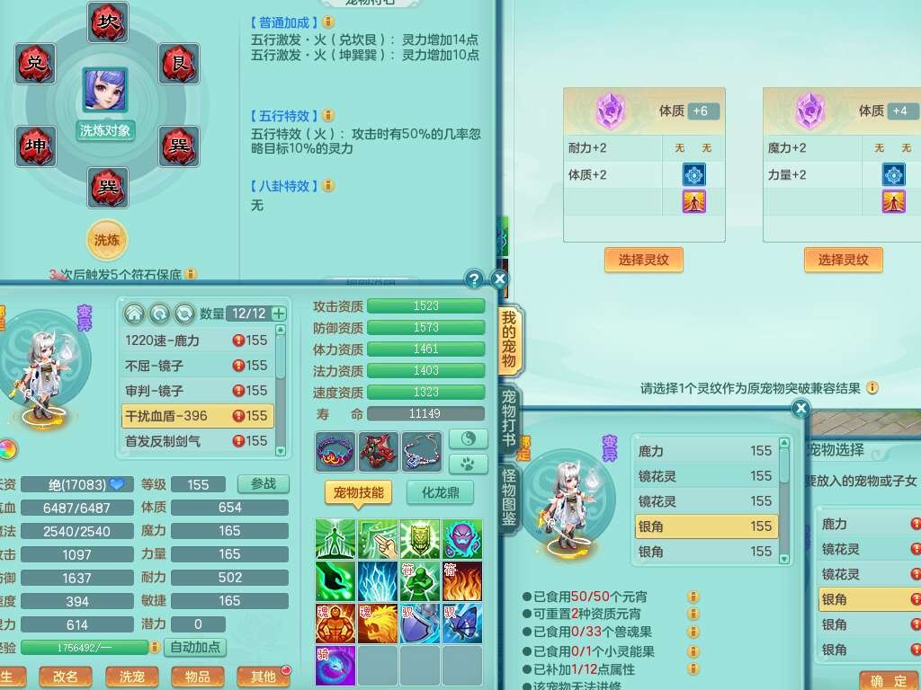K22178龙腾九州三开号,159女盘丝,精灵舞,2只六技能镜花灵,愤怒单加56腰带,易成长群体卸甲单加57鞋子,五特,有套物理装备,崩山单加53头,923狂暴单加武器,破血单加50衣服,5.0基础鼎,1只满果子,双人坐骑。➕159女普陀,精灵歌,1神兽+19个神兽内丹碎片,2只觉醒,2只六技能镜花灵,3特殊(祈雨,焚心,飞花),回春武器,仓库有封锁武器,6.0基础鼎+70攻,月夜幽狐坐骑,有39个仙兽蛋。➕159男方寸,精灵舞,1只六技能镜花灵,愤怒5特,4.5基础鼎。