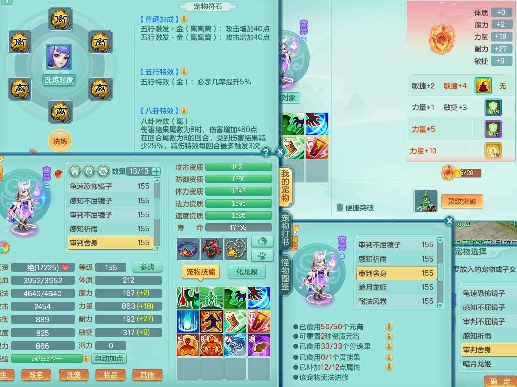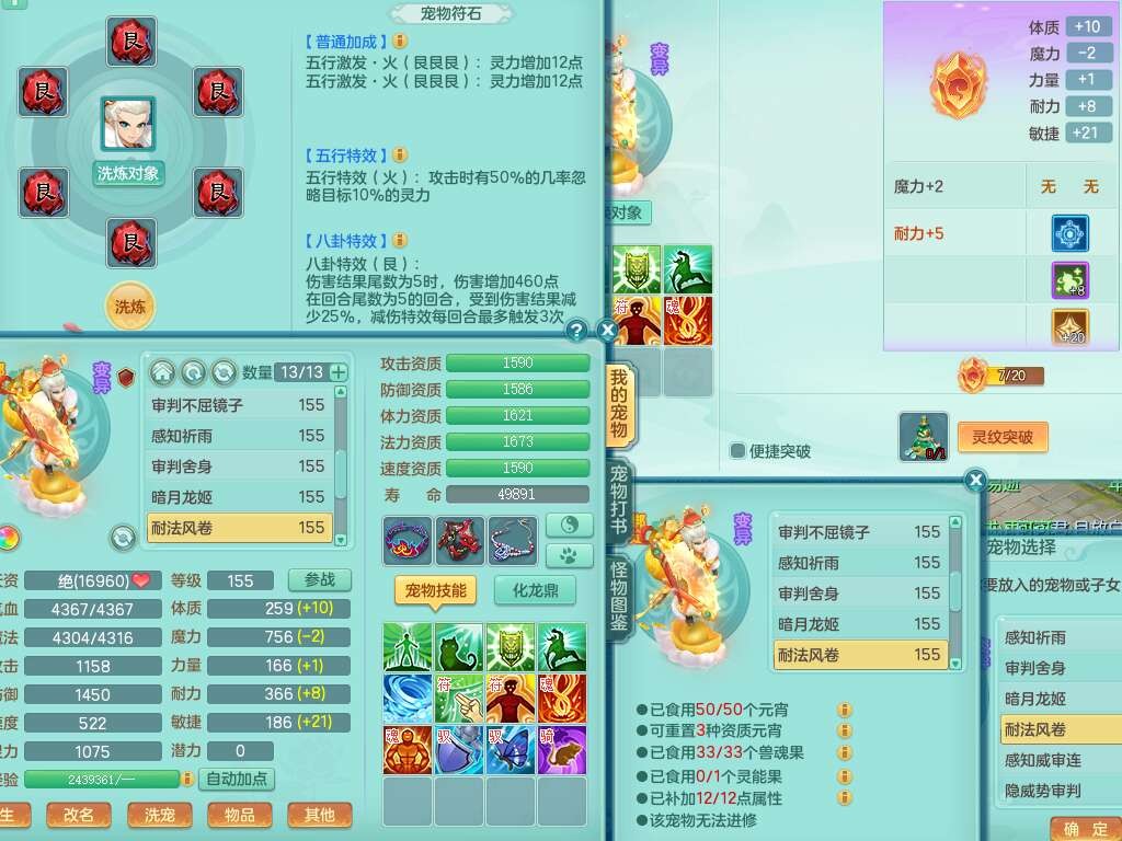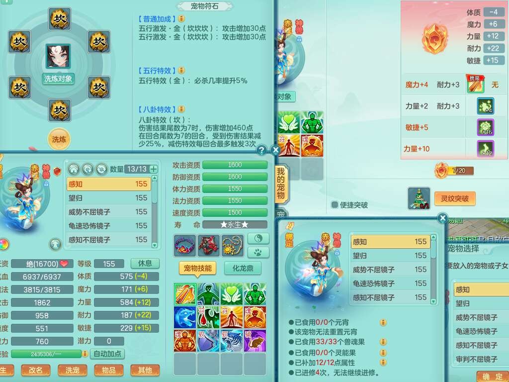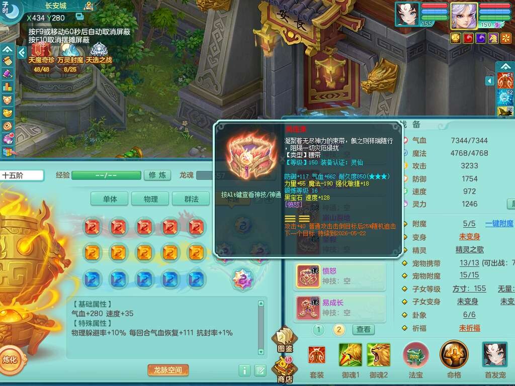 a22175七窍玲珑159男万兽,精灵歌,1内胆神,【9只觉醒,已潜龙】,3宠皮,4特殊(禁锢,夺命,祈雨,舍身),4只6技能镜花灵,2只6技能龙姬,三红狂暴易成长四海武器,易成长单加56头,崩山单加51衣服,坚毅链子,愤怒单加55腰带,易成长单加57鞋子,5.5基础鼎+70攻,280血,物理躲避10%,13个纯六字,18只满果子,宠排在榜,修炼在榜,3只坐骑,神驹马上发财+火焰之力,仓库23神兽内丹碎片,28仙兽蛋,月卡还有133天。