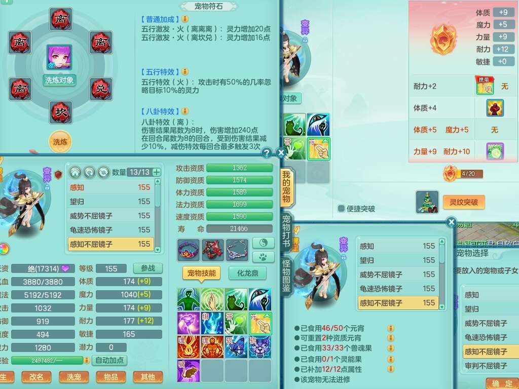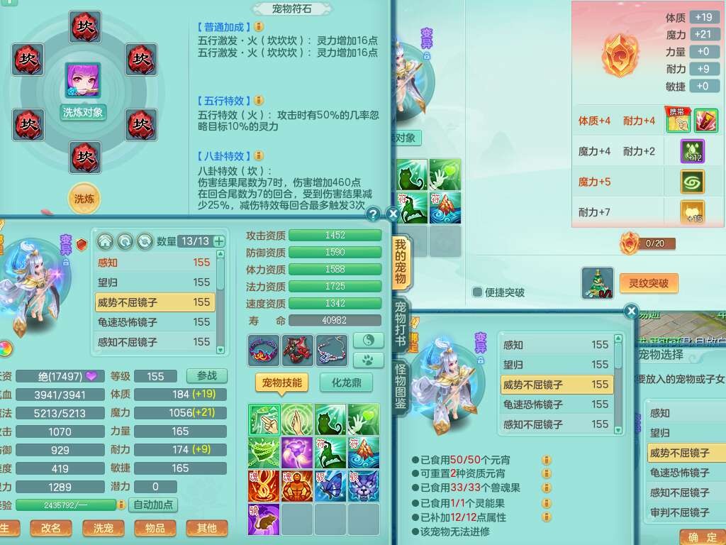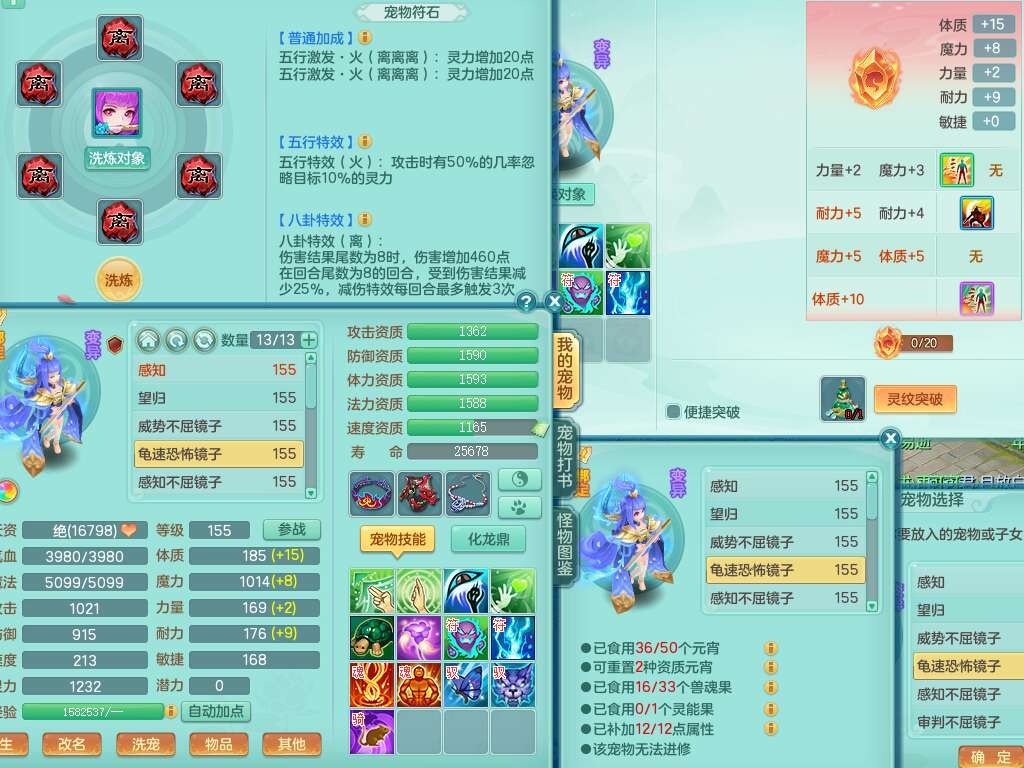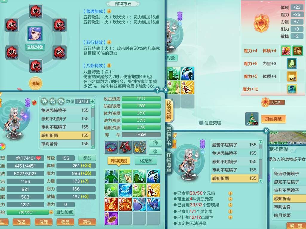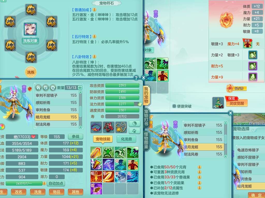 a22175七窍玲珑159男万兽,精灵歌,1内胆神,【9只觉醒,已潜龙】,3宠皮,4特殊(禁锢,夺命,祈雨,舍身),4只6技能镜花灵,2只6技能龙姬,三红狂暴易成长四海武器,易成长单加56头,崩山单加51衣服,坚毅链子,愤怒单加55腰带,易成长单加57鞋子,5.5基础鼎+70攻,280血,物理躲避10%,13个纯六字,18只满果子,宠排在榜,修炼在榜,3只坐骑,神驹马上发财+火焰之力,仓库23神兽内丹碎片,28仙兽蛋,月卡还有133天。