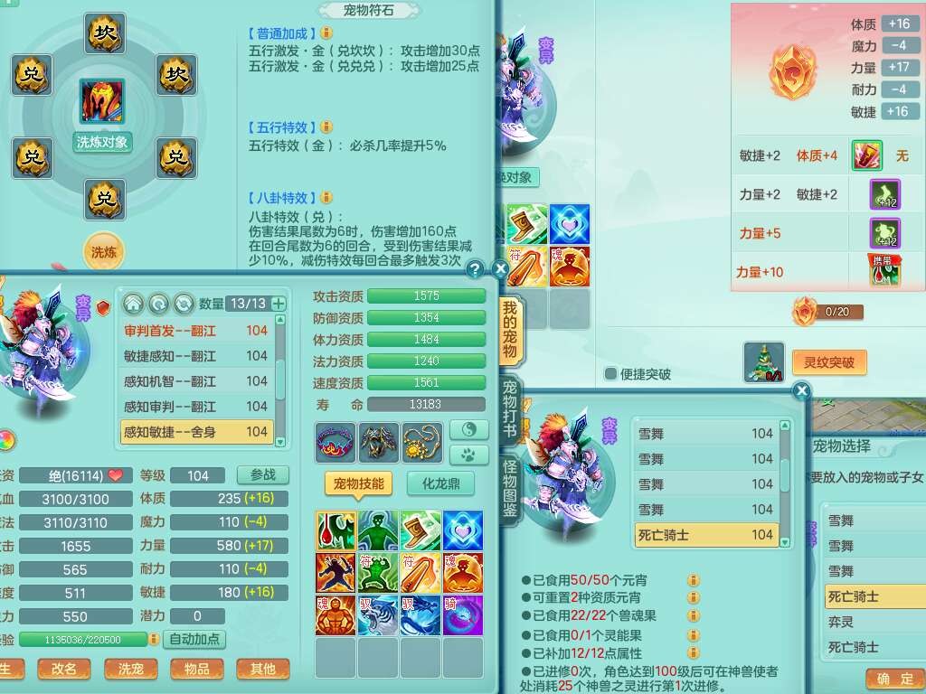 p22170普天同庆99男无名谷,准龙号(背包71仙兽蛋,2内胆神,【11只觉醒,已潜龙】,1宠皮,满攻必杀单加32武器,三红匠心易罗汉头,崩山单加35衣服,神佑慈航链子,愤怒易腰带,破甲破血鞋子,五雷单加31衣服,8个纯六字,18只满果子,背包53神兽内丹碎片,宠排在榜,双人坐骑。➕99男万兽,1内胆神,1只觉醒,背包65仙兽蛋,541必杀易成长武器,迅捷慈航单加鞋子,仓库有161易成长单加链子,回春慈航武器,愤怒群体激励腰带,535击退五雷单加武器,530法暴蓄力一击单加31武器,法缭烽火鞋子,易成长五雷单加头,全门派可玩,2.5基础鼎,综合11只满果子,双人白马。➕129女普陀精灵歌,愤怒笑里单加40腰带,六特,4.0基础鼎,4只满果子,带557W银币。