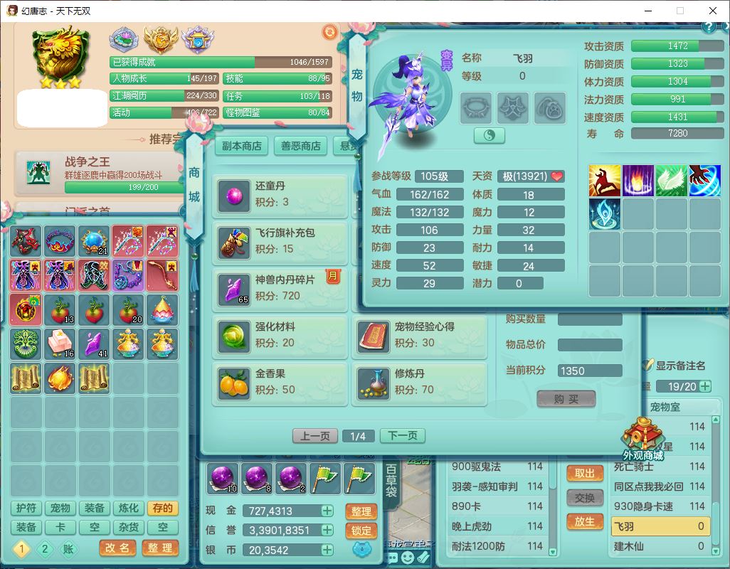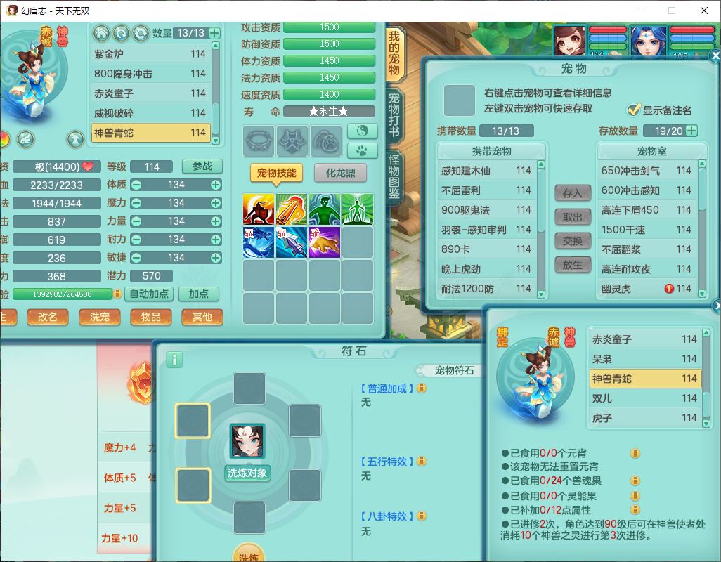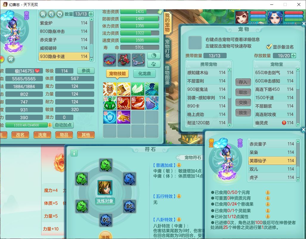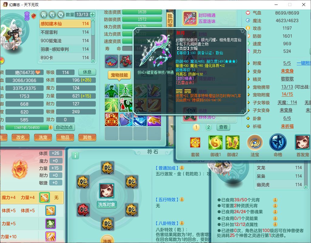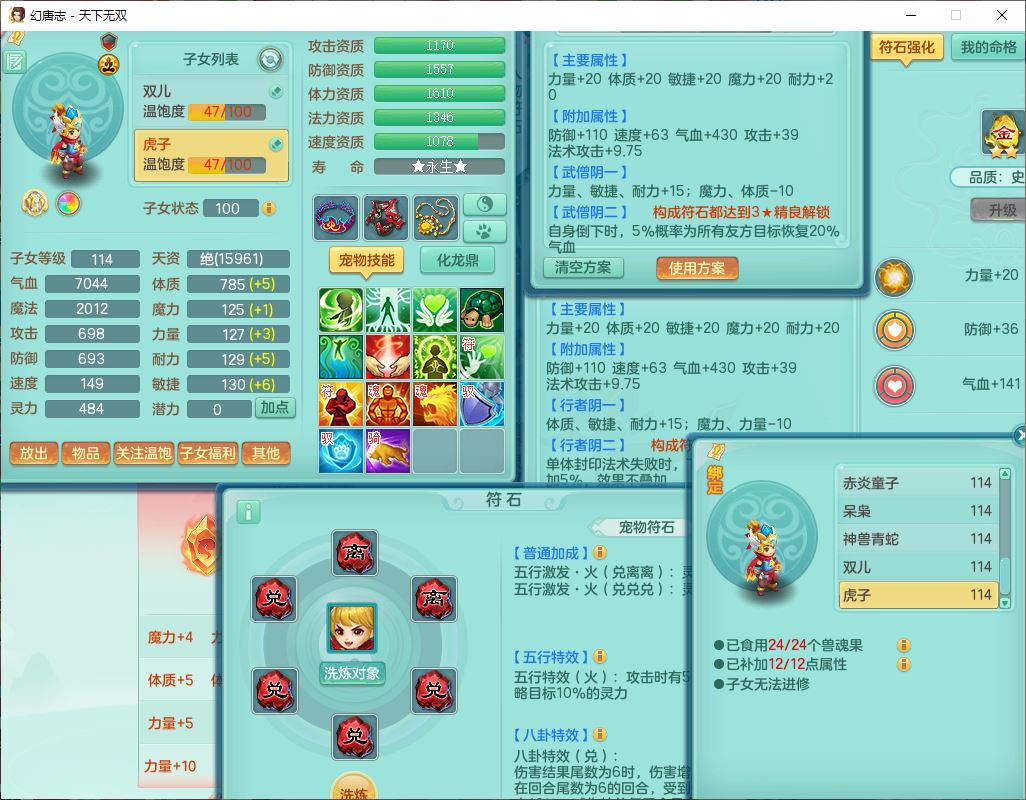 tx10307天下无双109女五庄【潜龙号】精灵舞,1内(破境)1青蛇(无内)1建木2羽袭1金炉1童子,11觉醒12六字2五字6四字16只满果子,11红星辰之拥装备,封印精通五雷帽子,封锁守护武器,神佑笑里项链,愤怒四海腰带,迅捷玉清鞋子,鼎2.5+42+168,2套符石,庭院169房屋158,21个仙兽灵,41个内丹碎片,20个神兽内丹,2坐骑