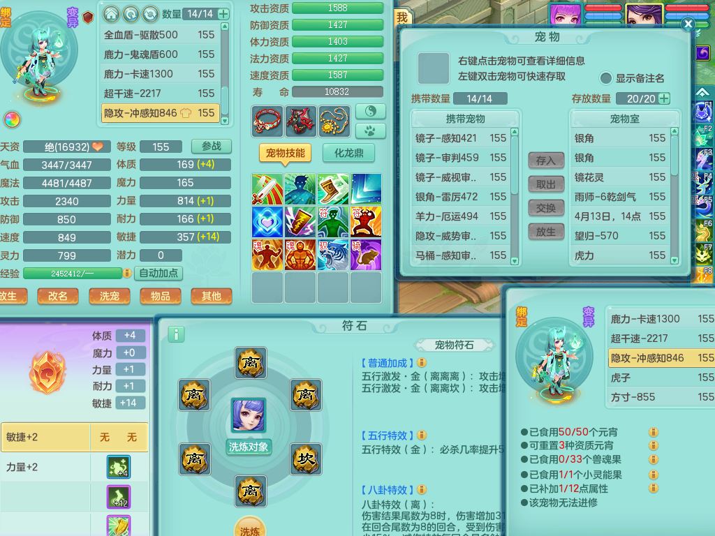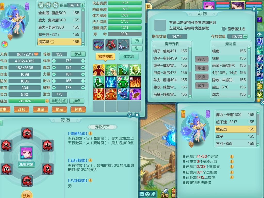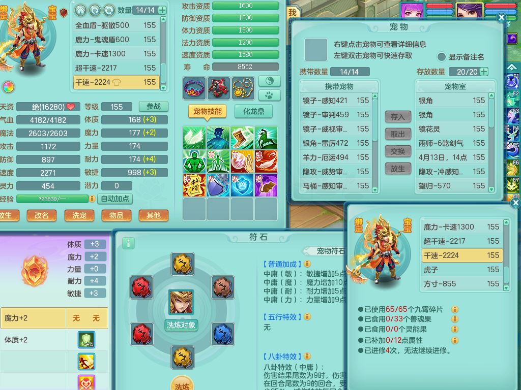 qq10298七窍玲珑159女灵月精灵慑,1内丹青蛇3特殊(雷厉/逆龙/冲锋)5镜花灵2龙姬,10只满果子11觉醒6个纯6字,10红愤怒6特,Y笑里头,幸运四海衣服,愤怒晶清腰带,迅捷流云鞋,仓库回春武器,封印头,鼎5.5+70,52仙兽灵24内丹碎片,双人坐骑