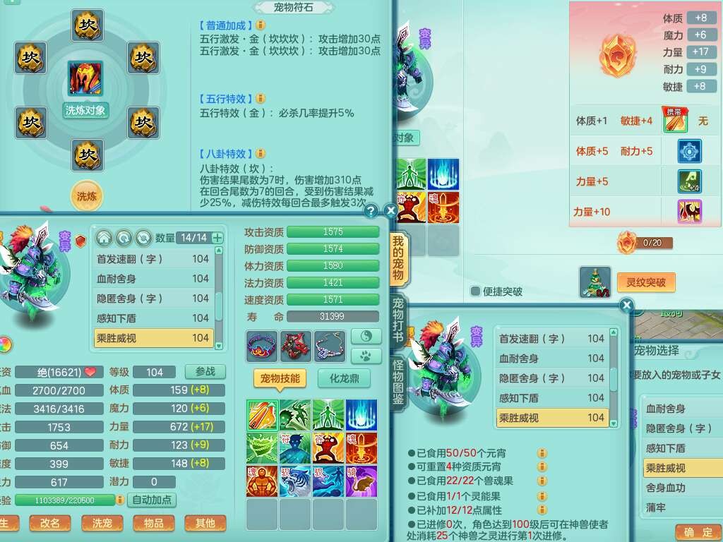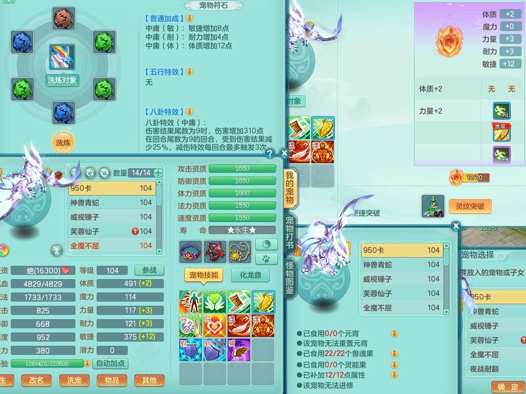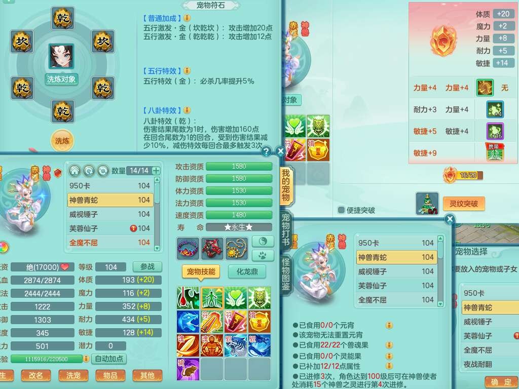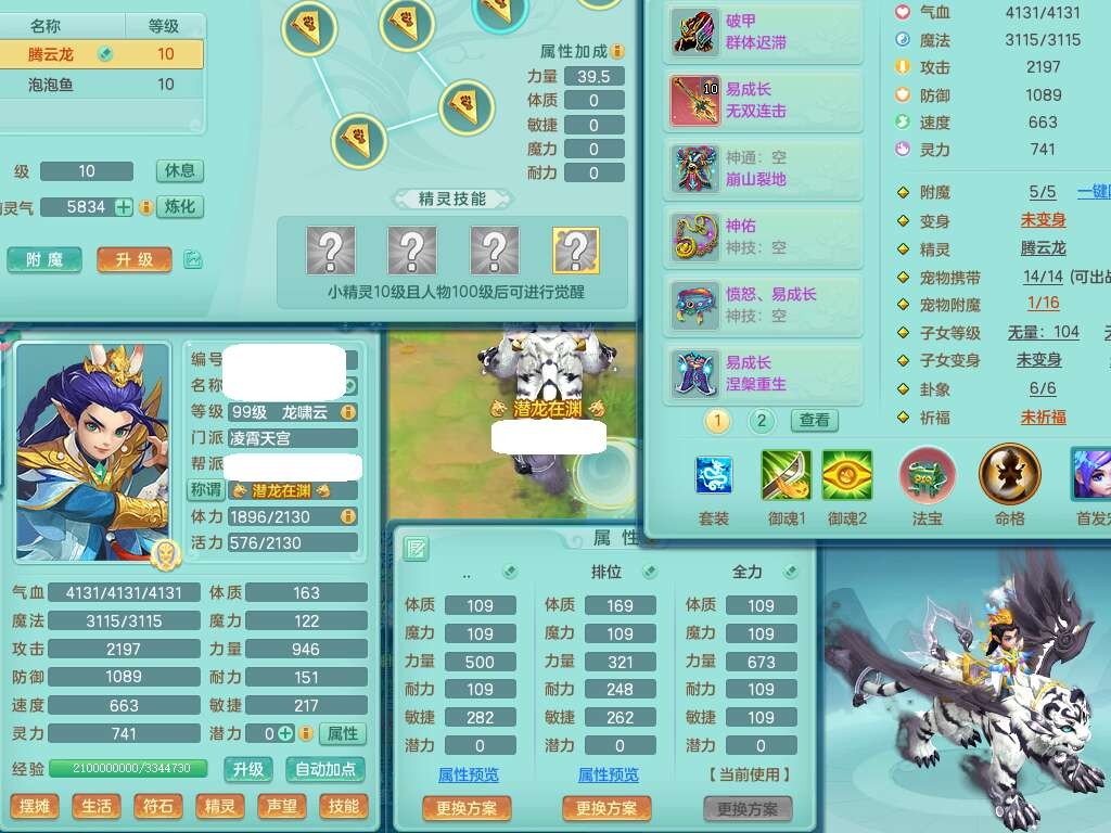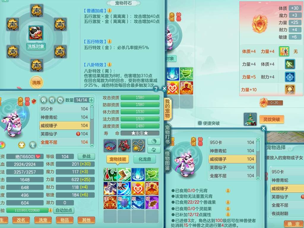 S22167今年勇99男力天宫,1龙无内,2内胆神,1破镜,【11只觉醒,已潜龙】,破甲群体迟滞头,556易成长破血单加33武器,崩山单加衣服,神佑单加35链子,愤怒易腰带,易成长慈航单加32鞋子,160易成长单加链子,崩山单加32鞋子,2.5基础鼎,7个纯六字,5个5字,20只满果子,背包49神兽内丹碎片,宠排在榜,双人坐骑,月卡还有85天。